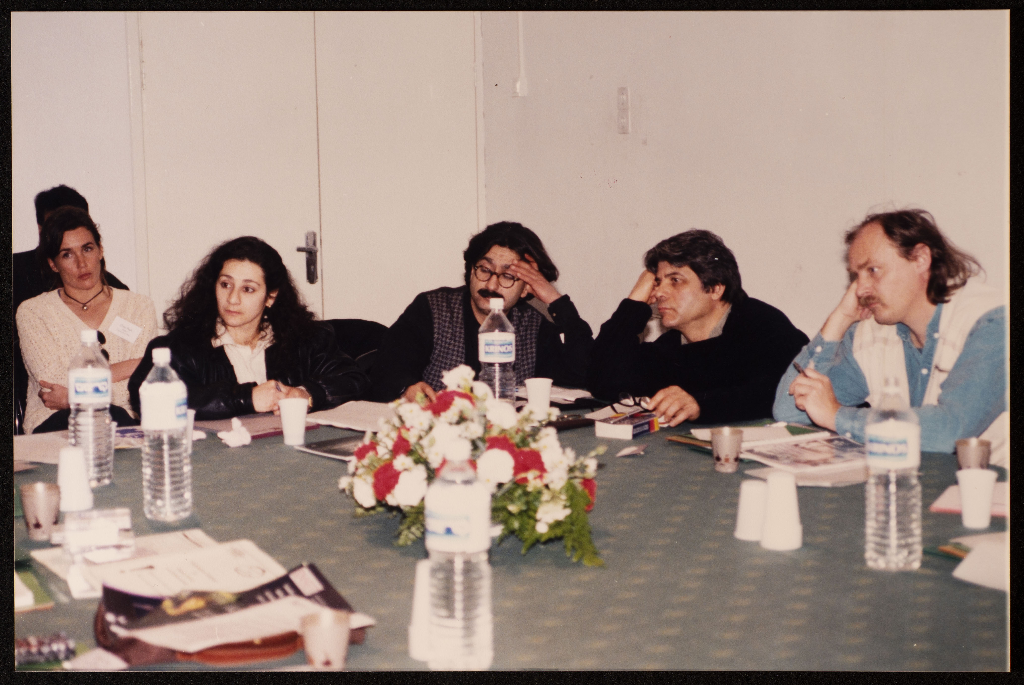 A colour photograph of Ashtar for Theatre Productions and Training conference on drama curriculum. Held at Ashtar premises in 1998, the conference aimed to establish an intermediate drama institute in cooperation with experts from Israeli-occupied Palestine, Jordan, Morroco, Russia, Switzerland, and the UK.