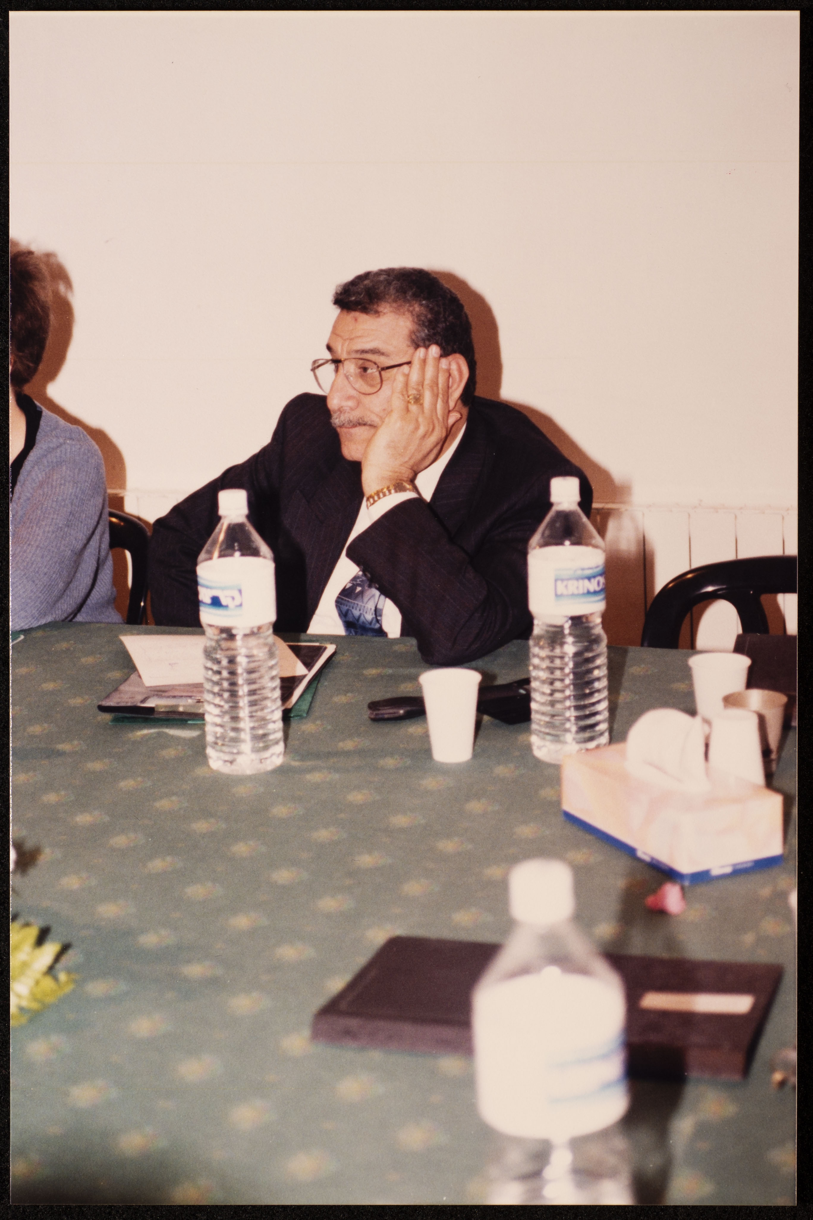 صورة ملونة ترصد جانبًا من مؤتمر لعشتار لتدريب وإنتاج المسرح بخصوص مناهج تعليم المسرح والدراما. عُقد المؤتمر في مقرات عشتار عام 1998 وهَدِف لإنشاء معهد متوسط للتمثيل بالتعاون مع خبراء من الأردن، والمغرب، وبريطنيا، وروسيا، وفلسطين المحتلة.