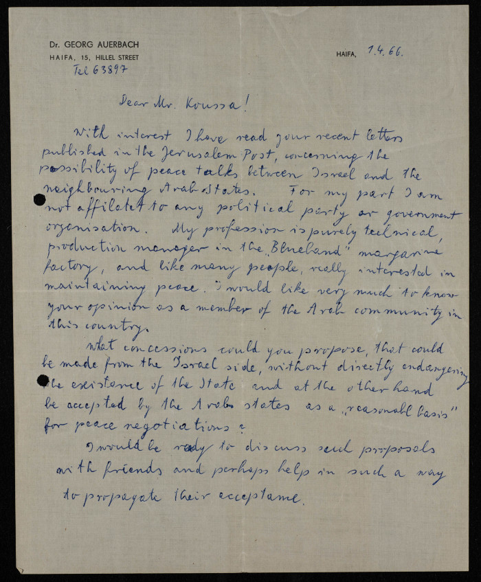 "Arab-Israel Peace", a Formal Letter to Ilyas Kusa, April 1966