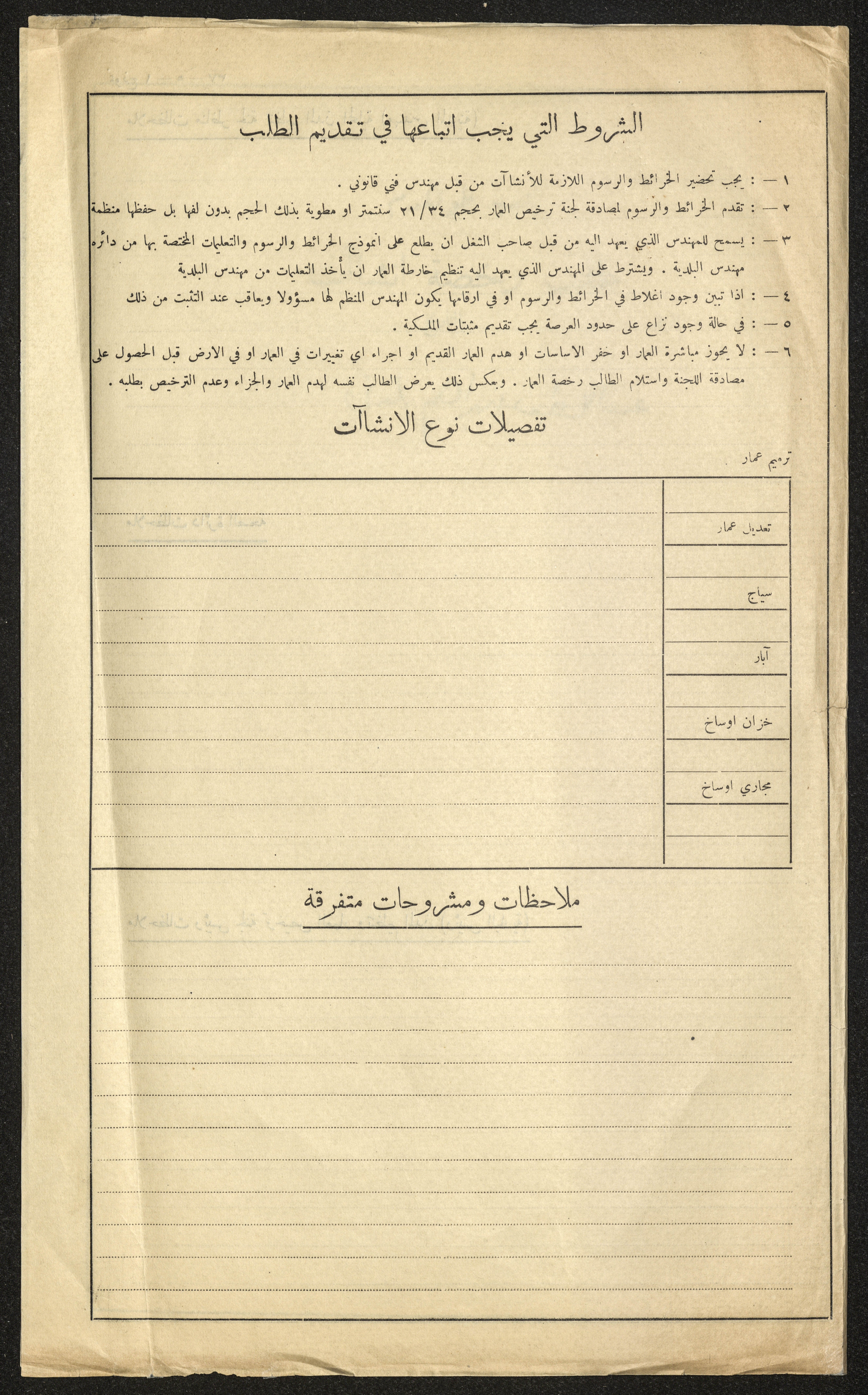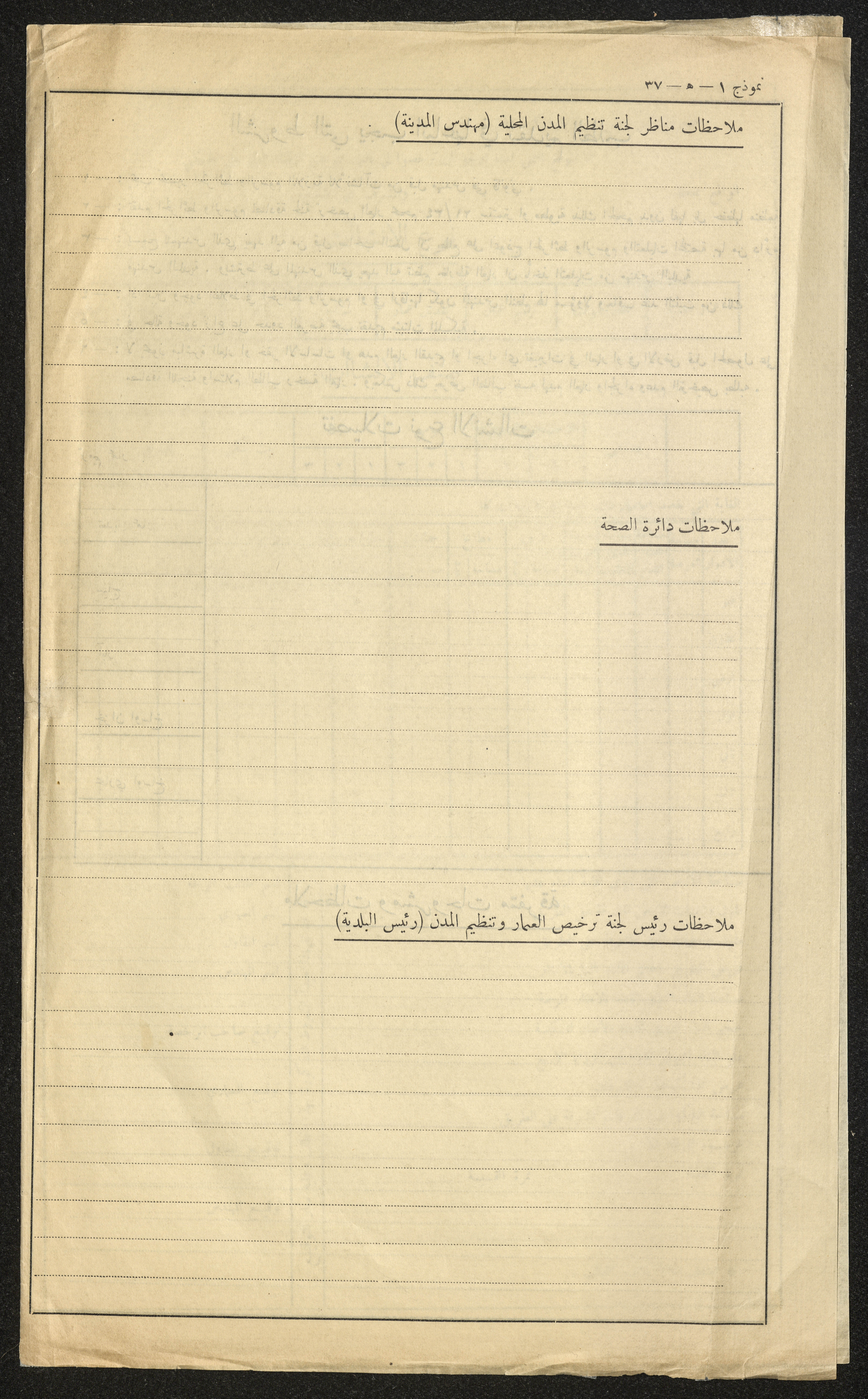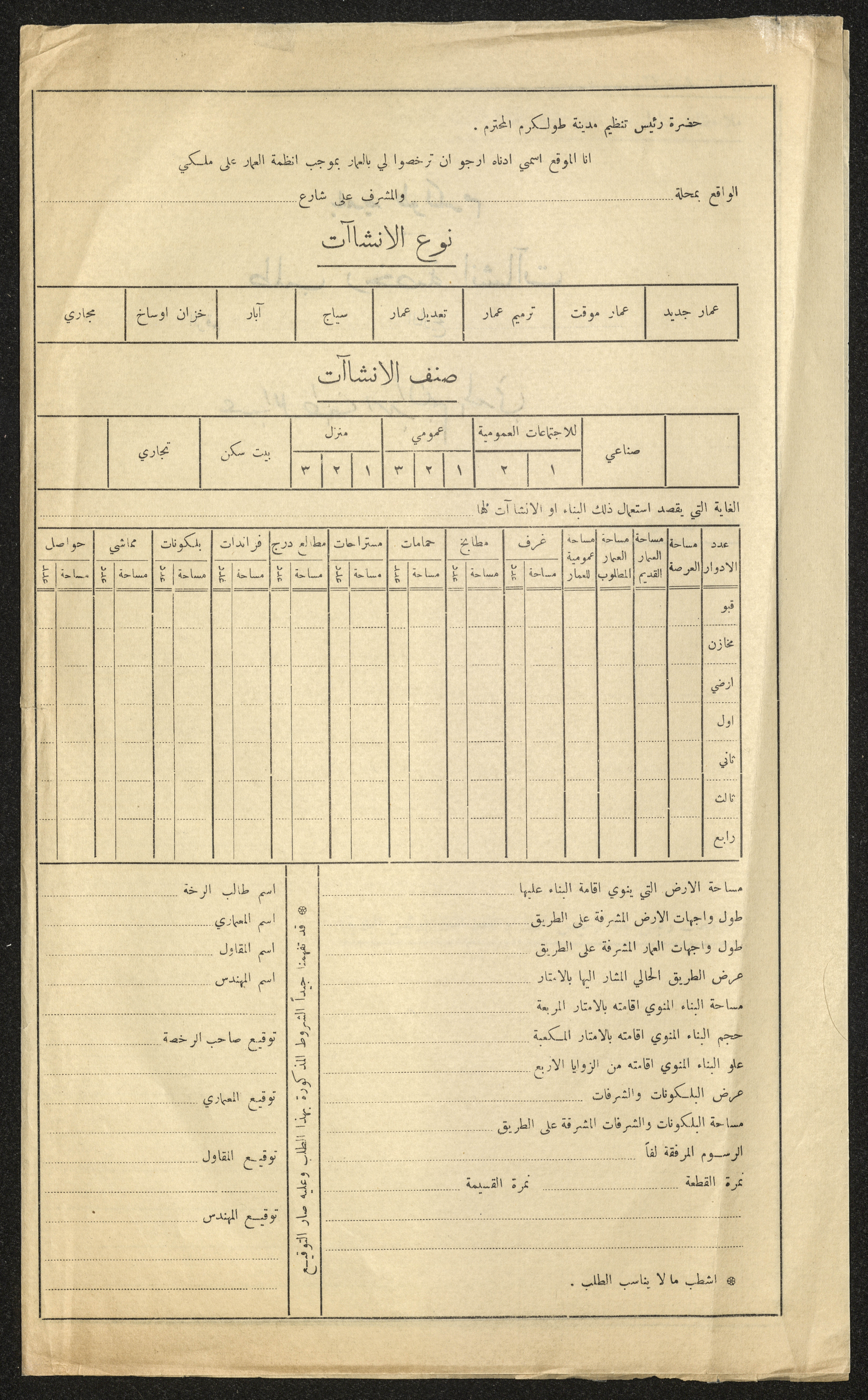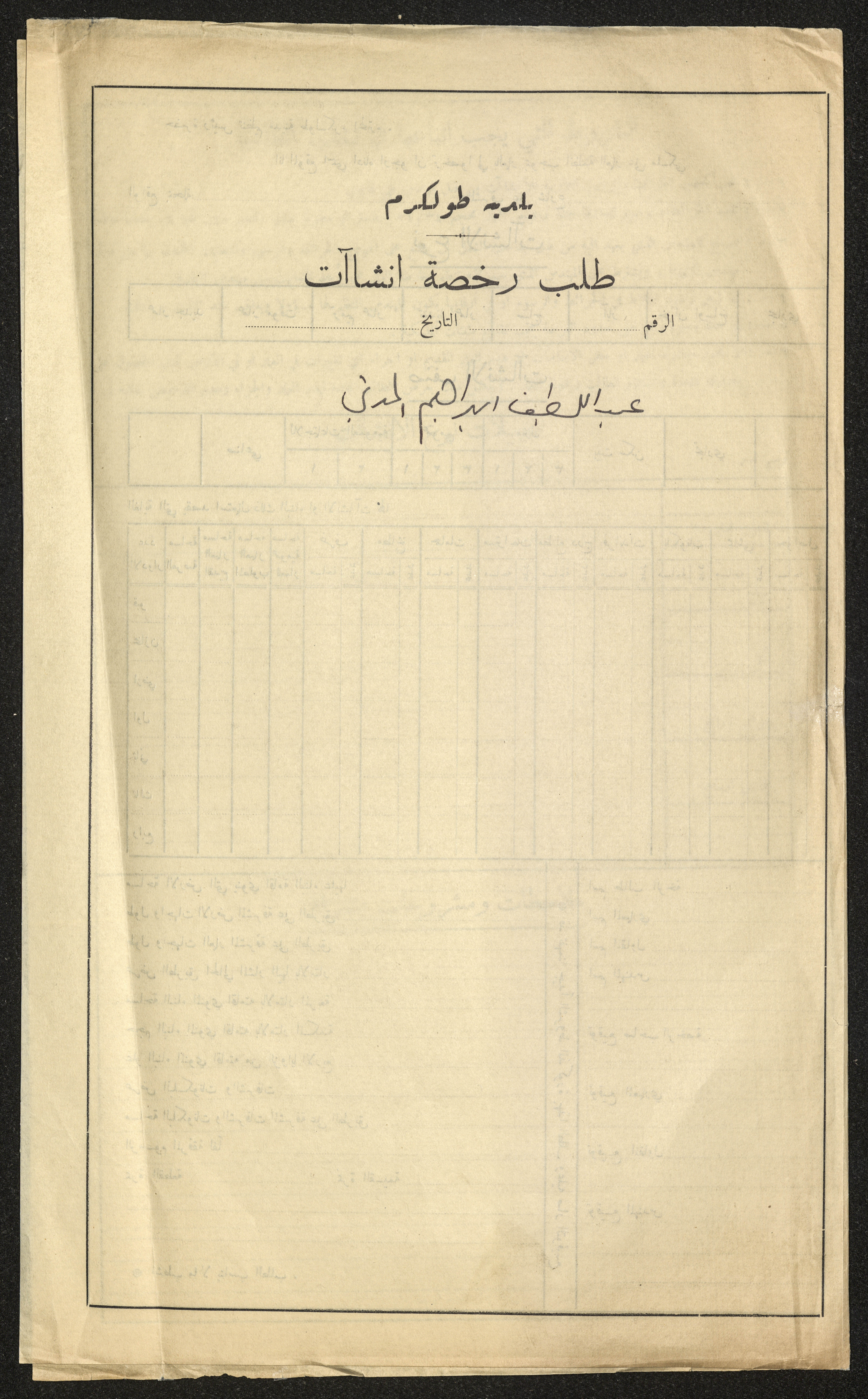 .وثيقة مكونة من عدة صفحات تتضمن مخطط بناء لعبد اللطيف ابراهيم المدني صادرعن بلدية طولكرم .