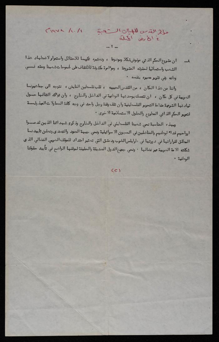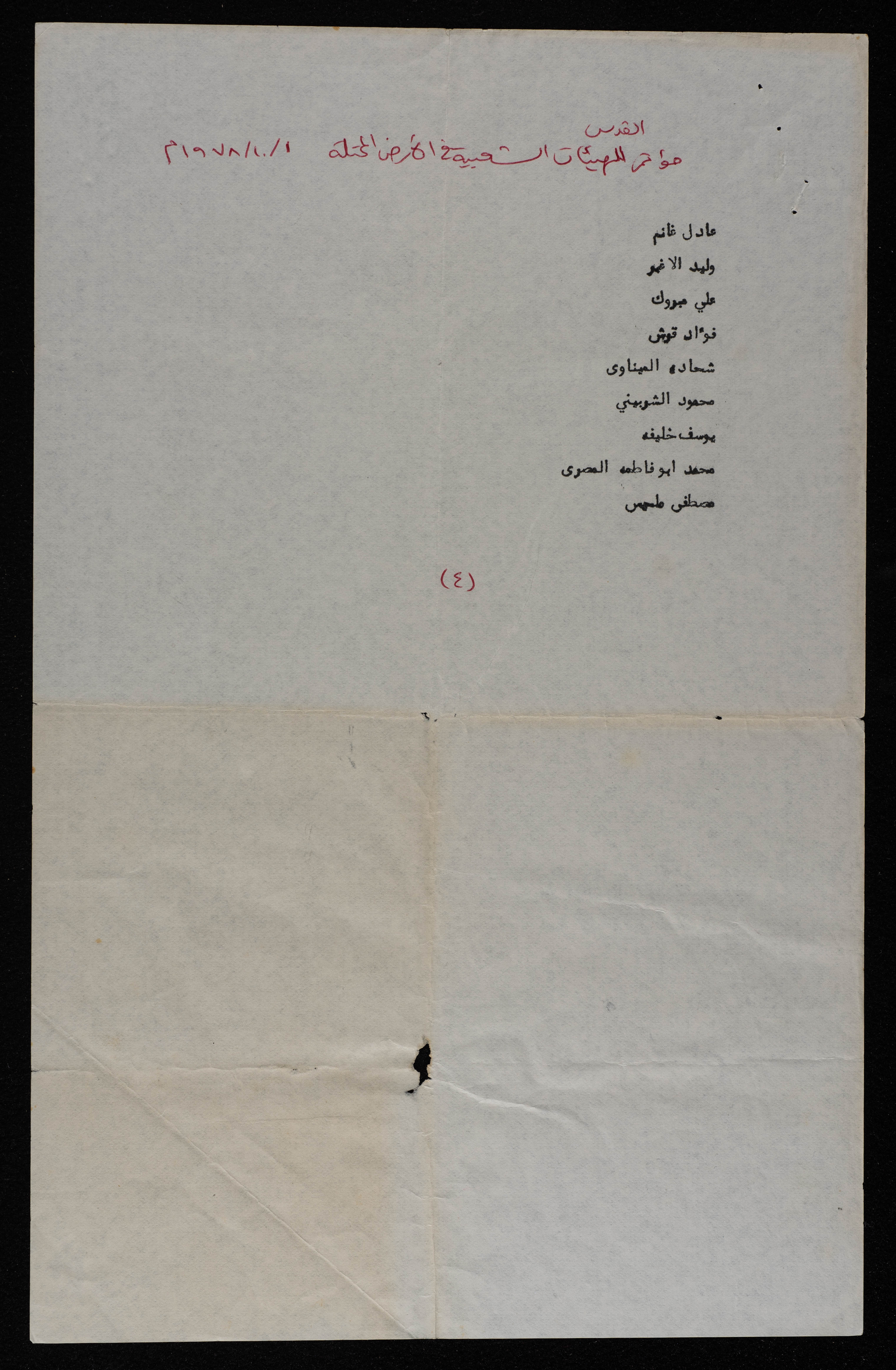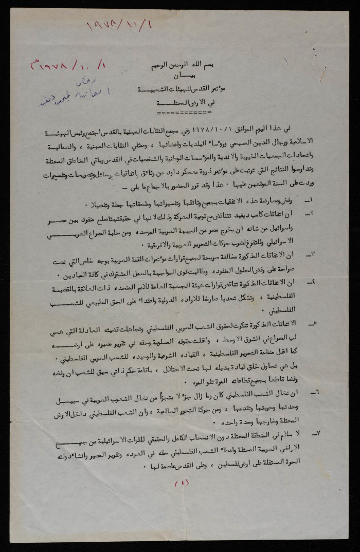 "بيان مؤتمر القدس للهيئات الشعبية في الأرض المحتلة"، 1 تشرين الأول 1978