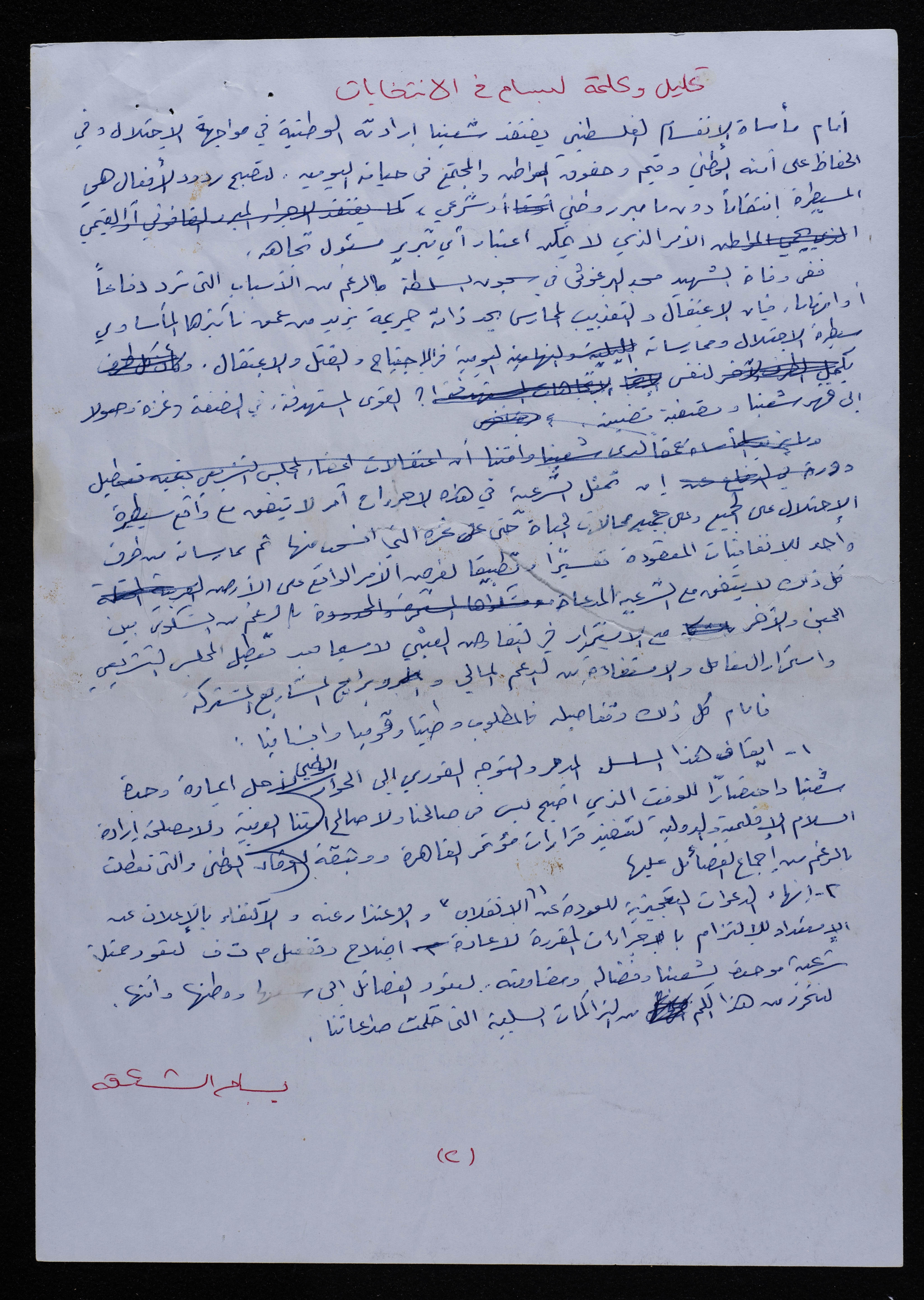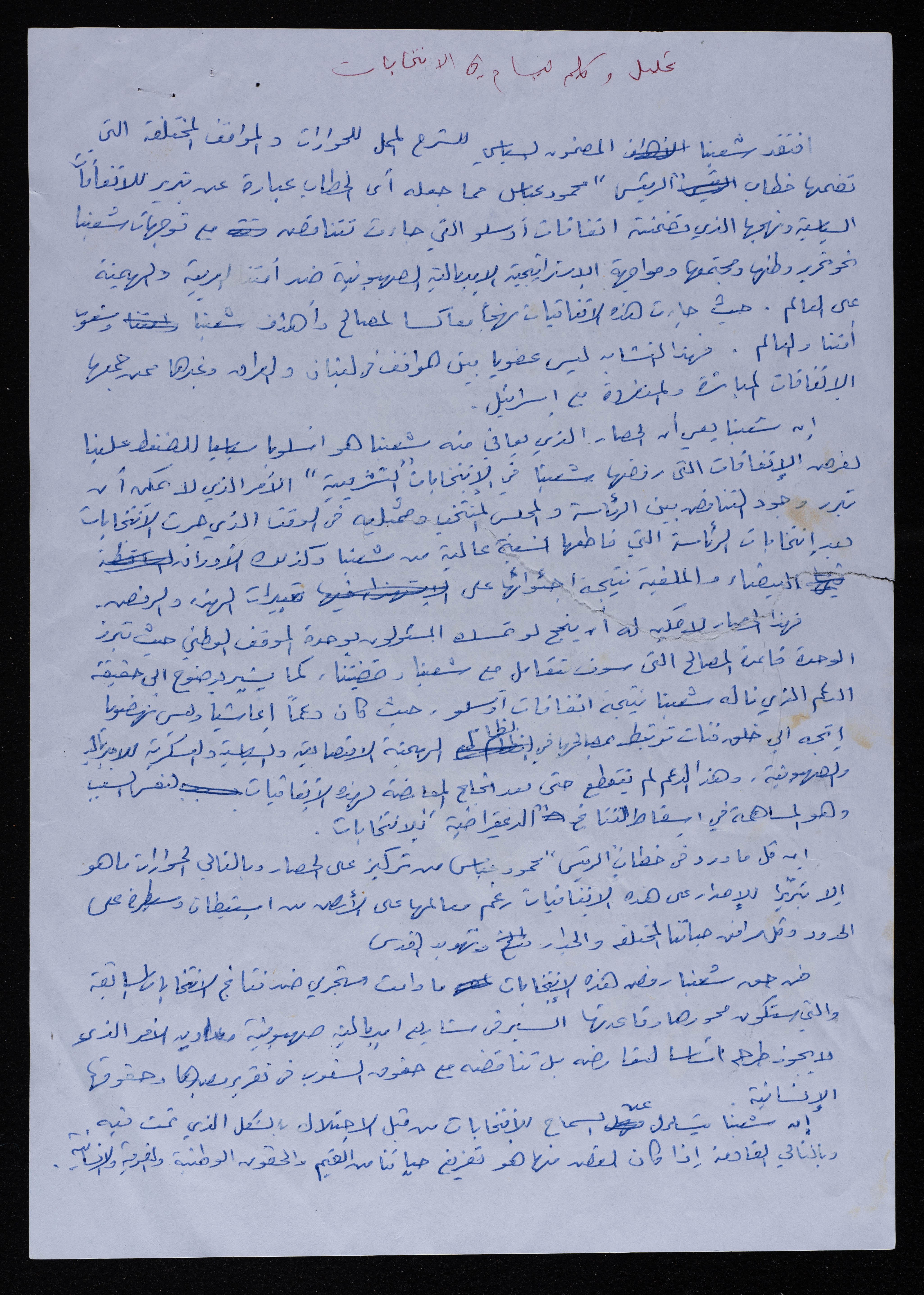 .وثيقة مكتوبة باللغة العربية، تتضمن تحليل وكلمة بسام الشكعة في الانتخابات