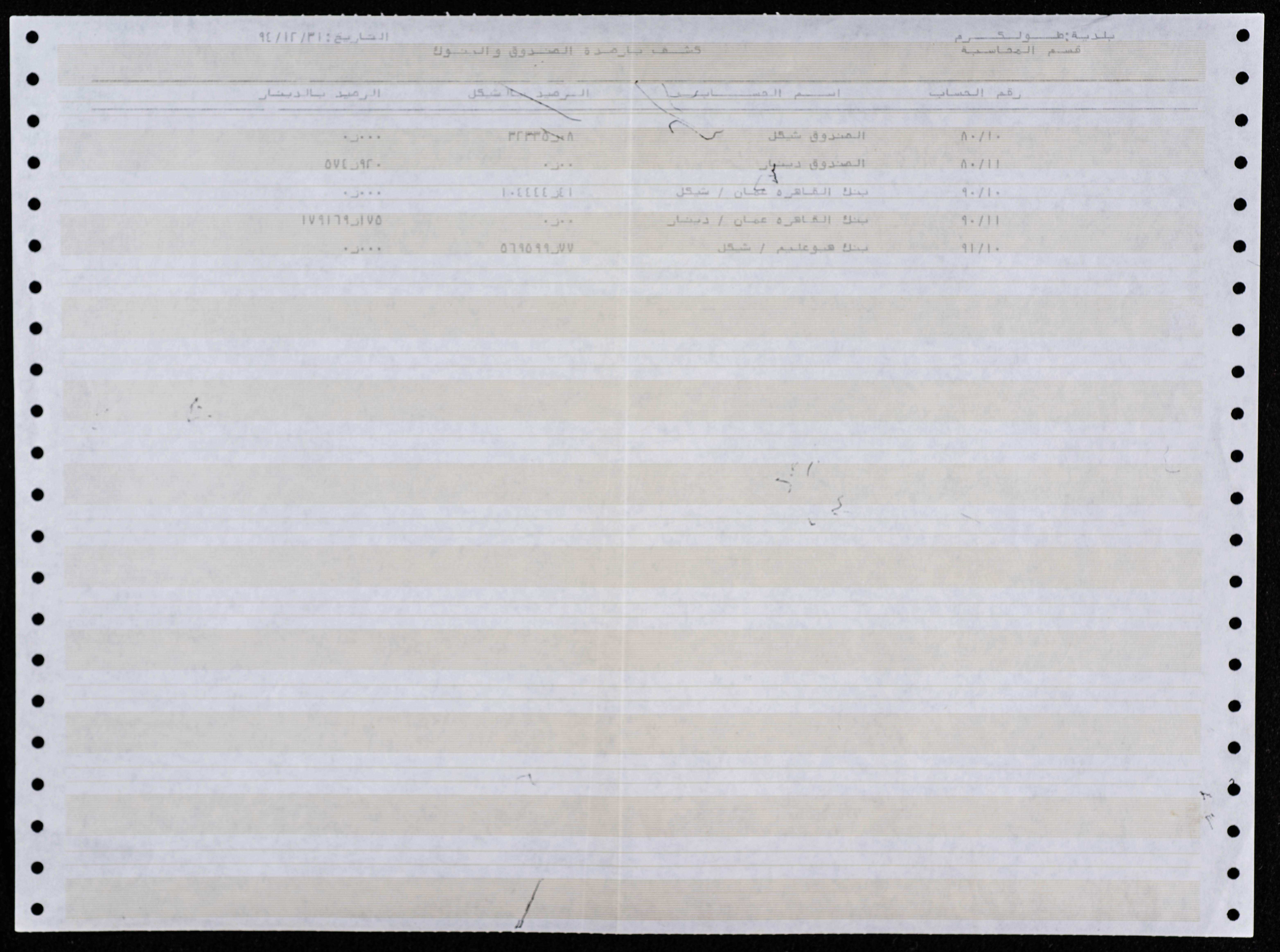 كشف بأرصدة بلدية طولكرم في بنك القاهرة عمان وبنك هبوعليم والصندوق