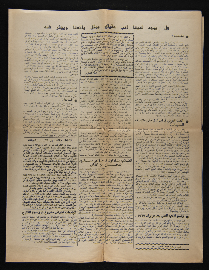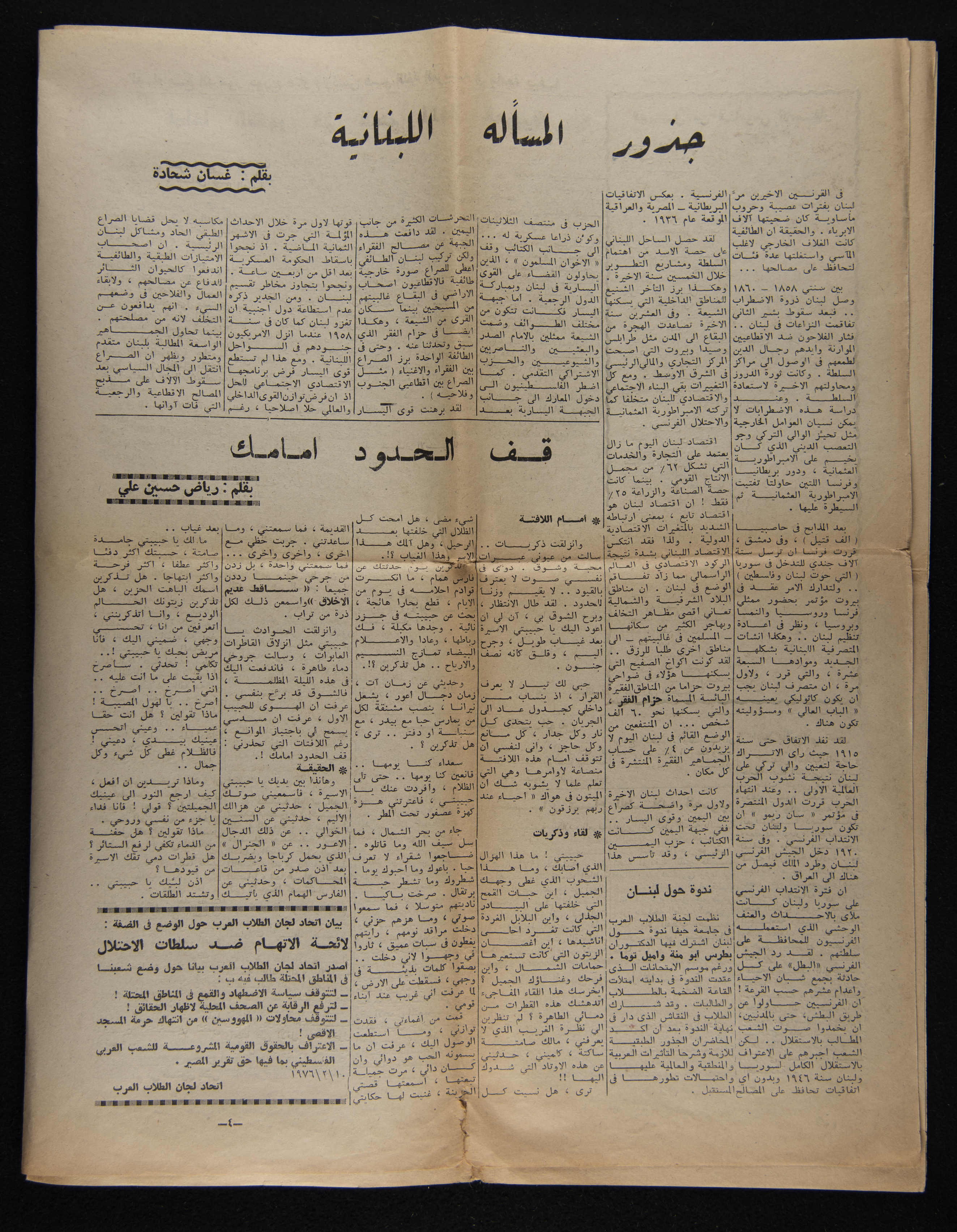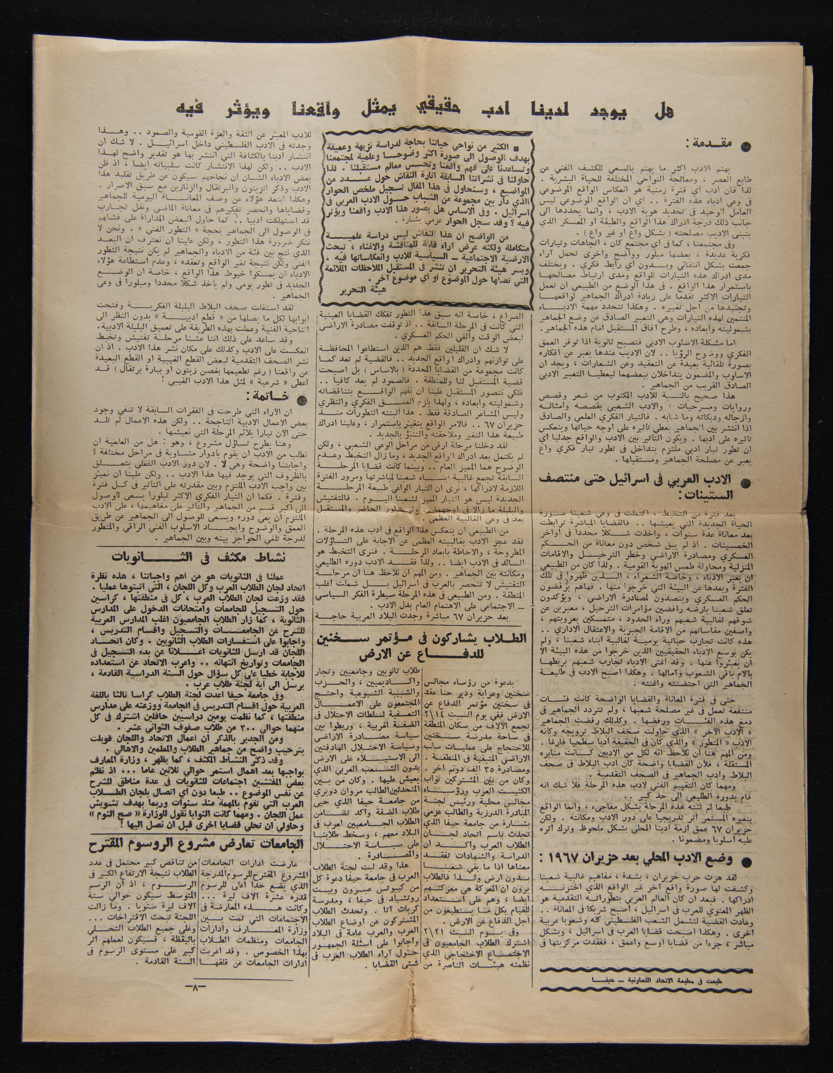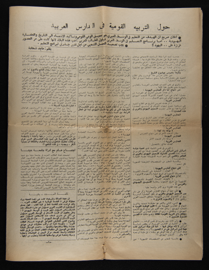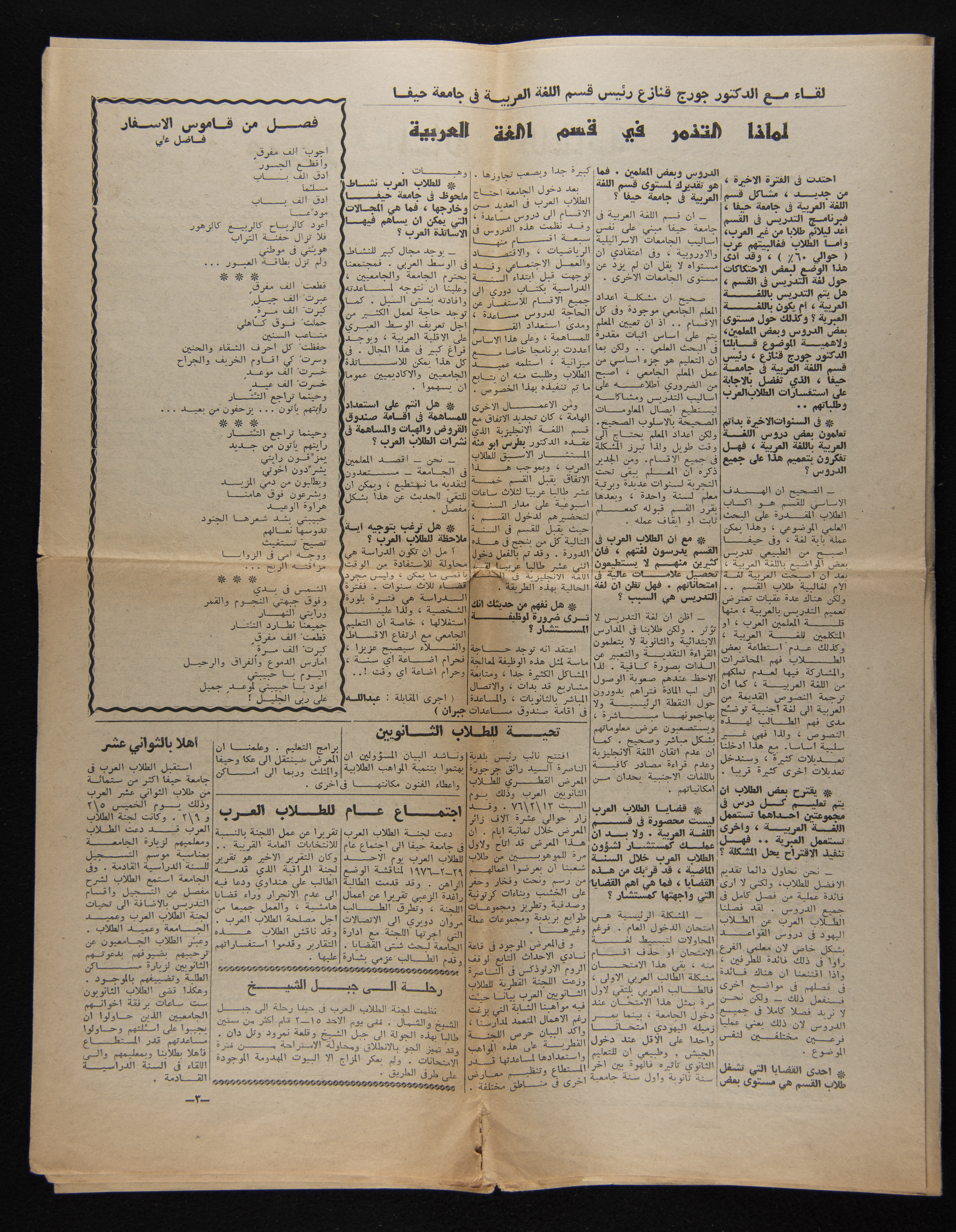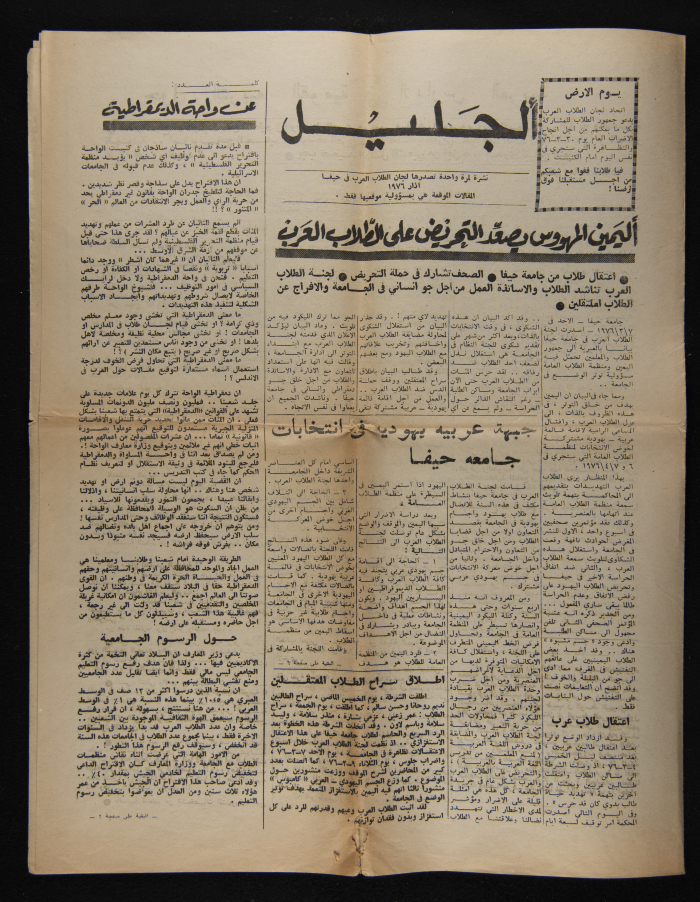 A copy of Galilee, a one-time student publication issued by the Committee of Arab Students at Haifa University in March 1976.