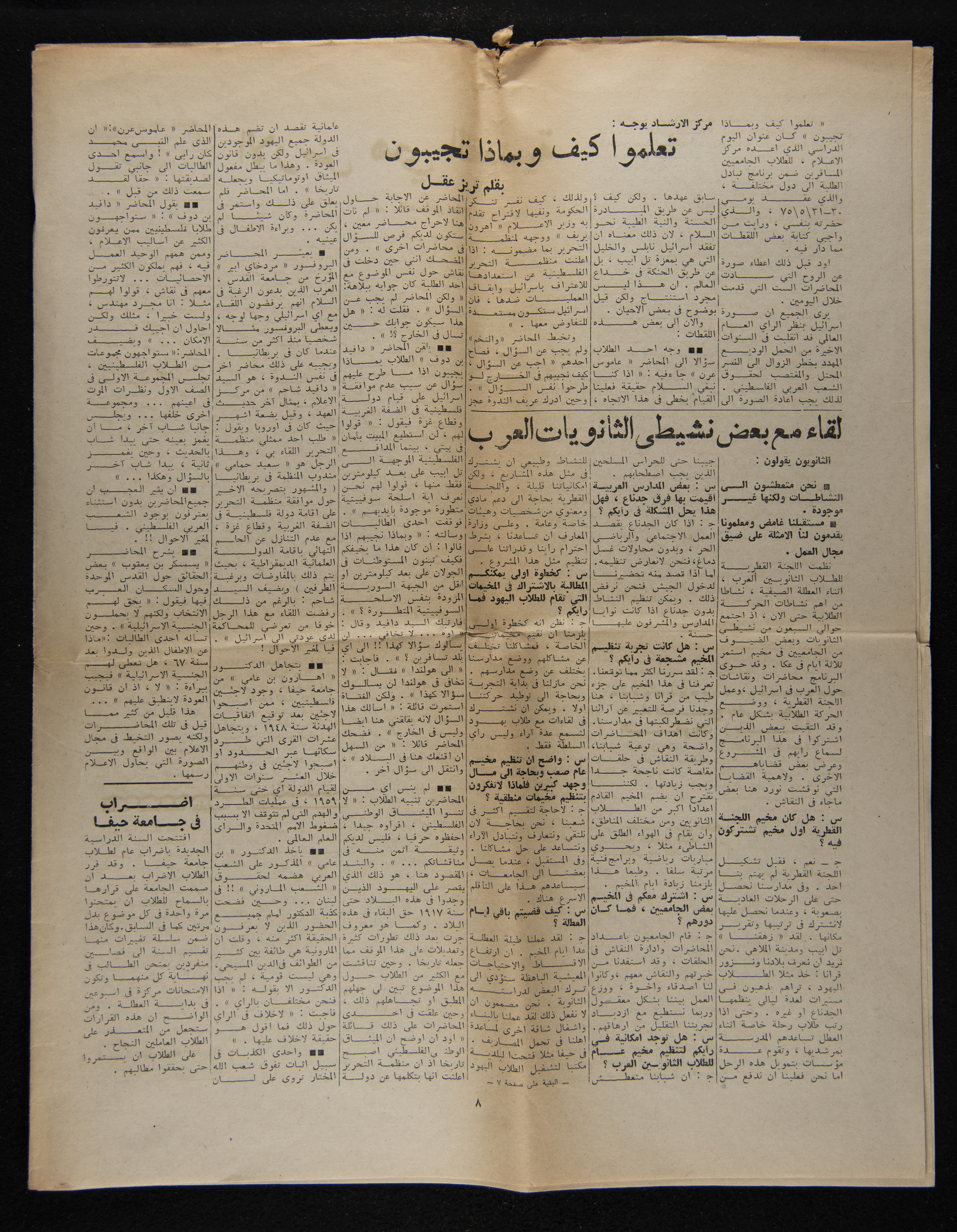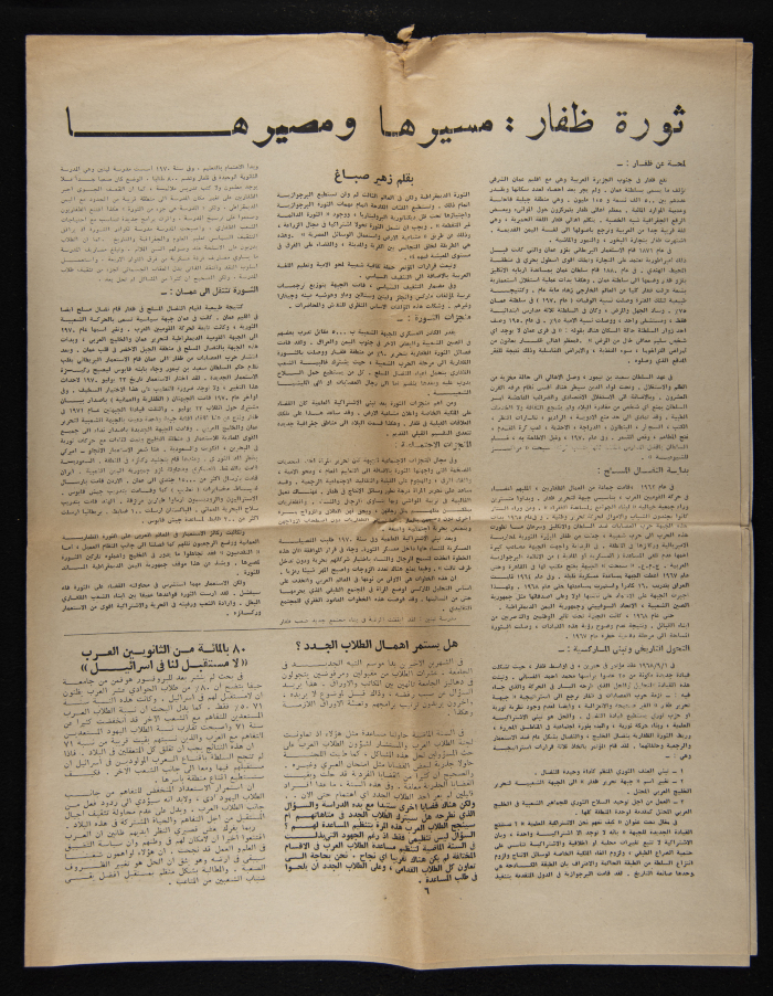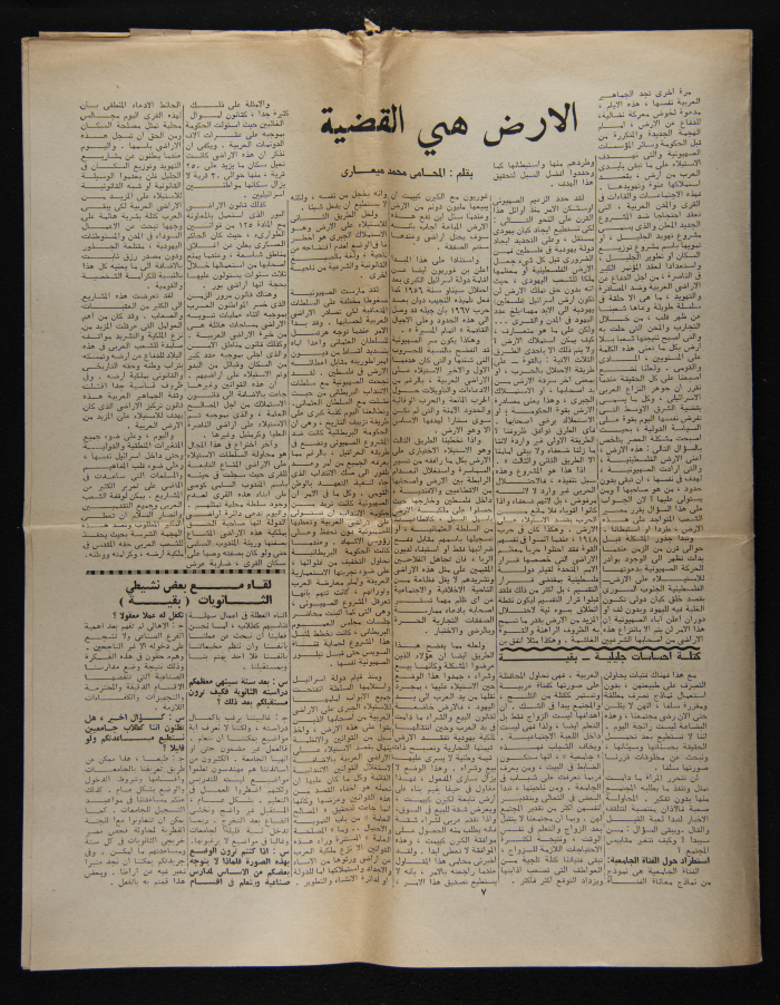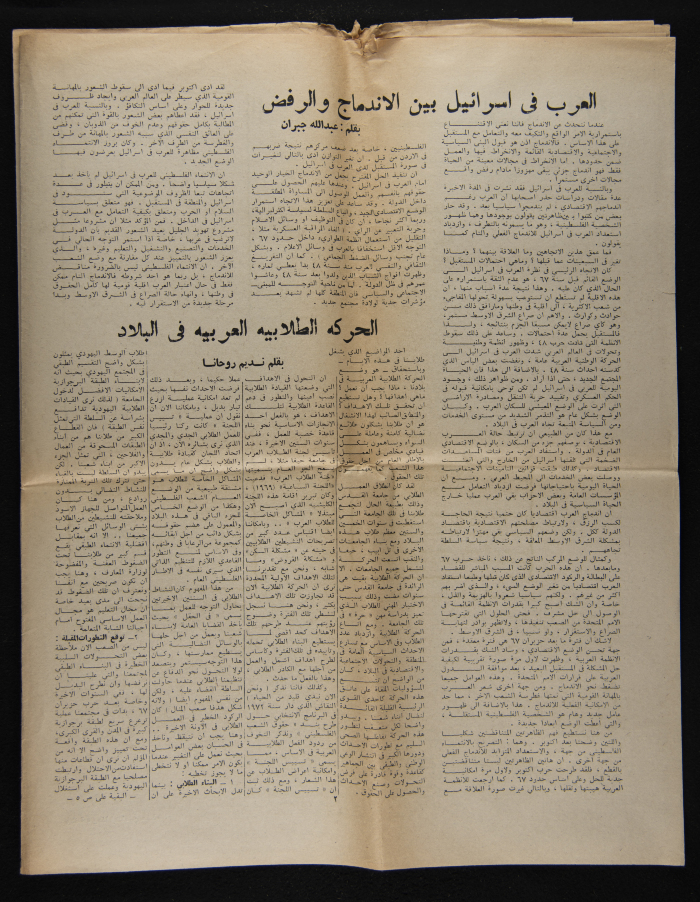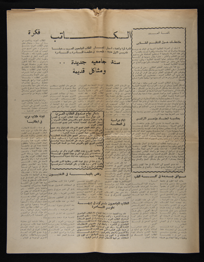 A copy of Al-Kateb, a one-time student publication issued by the Committee of Arab Students at Haifa University in October 1975.