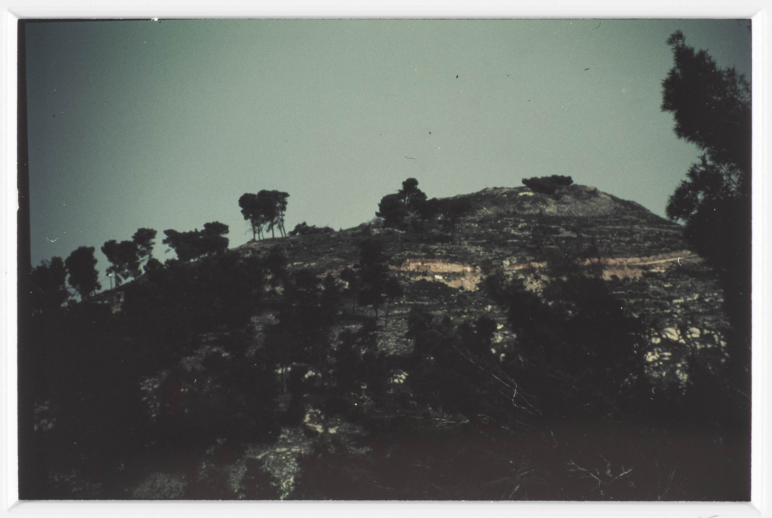 A colour photograph featuring Mount Gerizim located in the South of Nablus city, and it is considered to one of Nablus's most prominent mountains and it is also known as the Southern Mount, it is also known for its religious significance for the Samaritans; where the Samaritan Temple is located and the Church of the Virgin Mary was constructed during Byzantine Era.