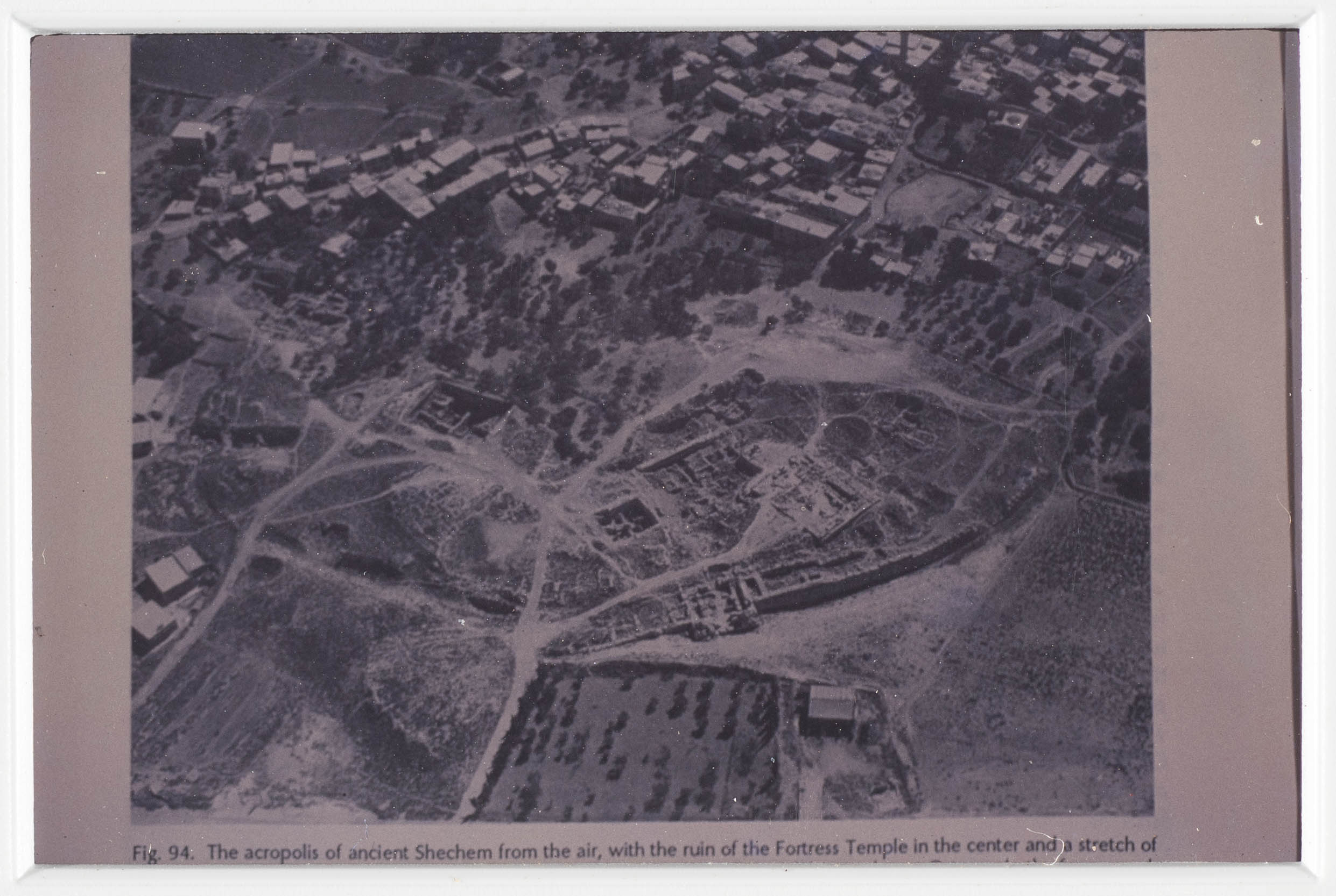 صورة ملونة ، التقطت عام 1994، ترصد جانبًا من موقع تل بلاطة الأثري في مدينة نابلس المحتلة،عُثر على هذه الصورة في مجموعة إبراهيم الفني. يضم هذا الموقع الأثري أنقاض مدينة شكيم (شكمو) الكنعانية التي تحوي آثارًا يعود أقدمها إلى 3000-3500 قبل الميلاد.