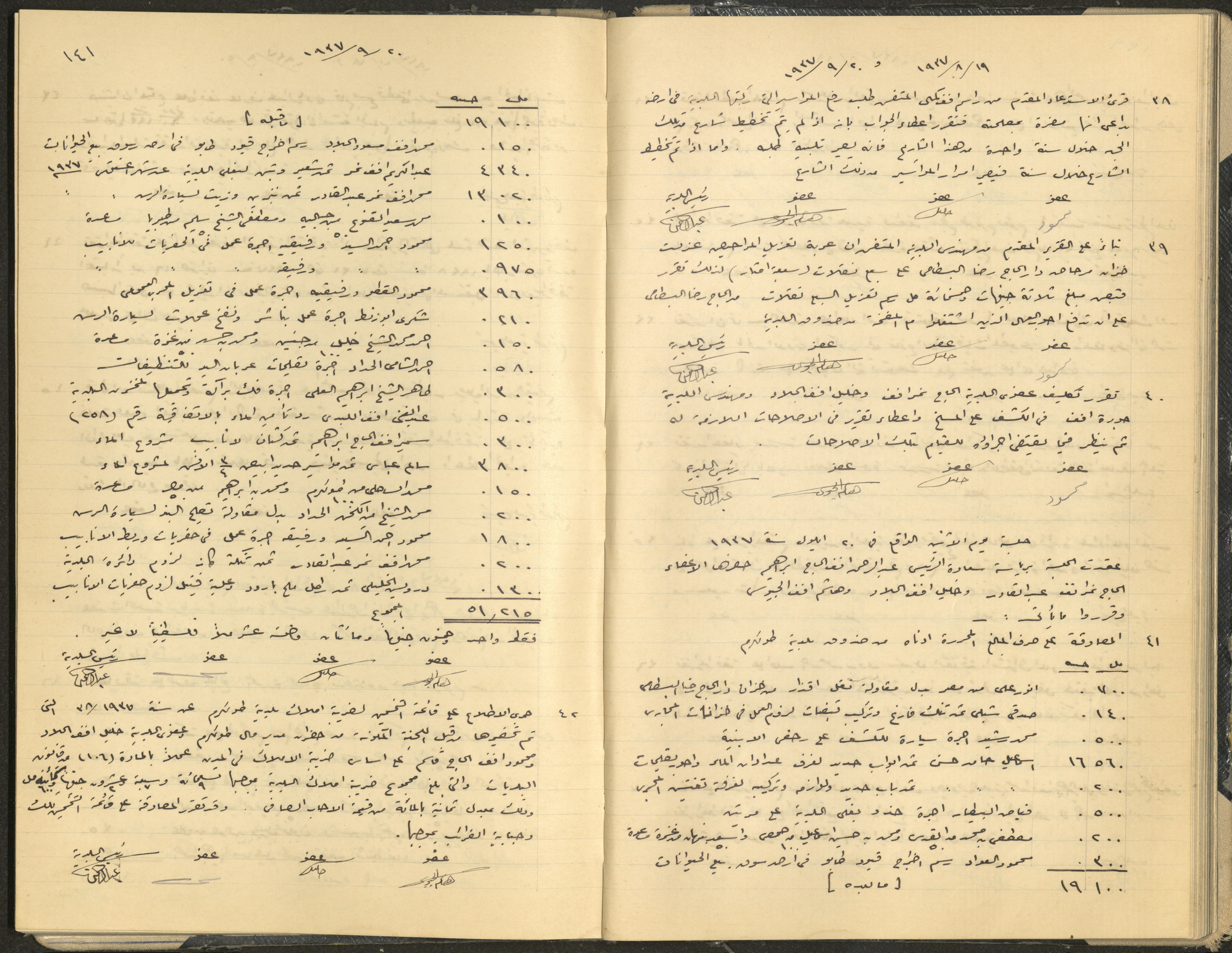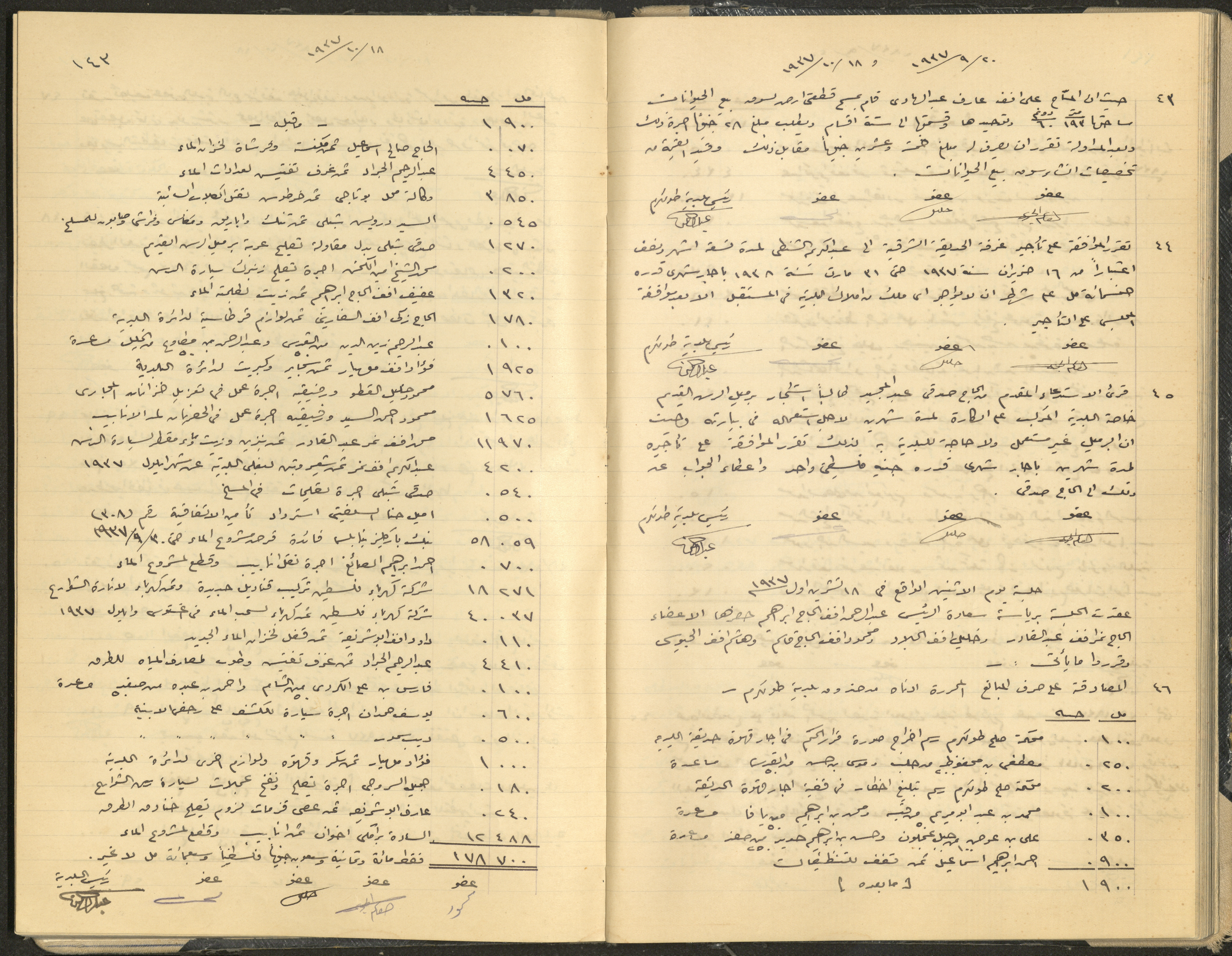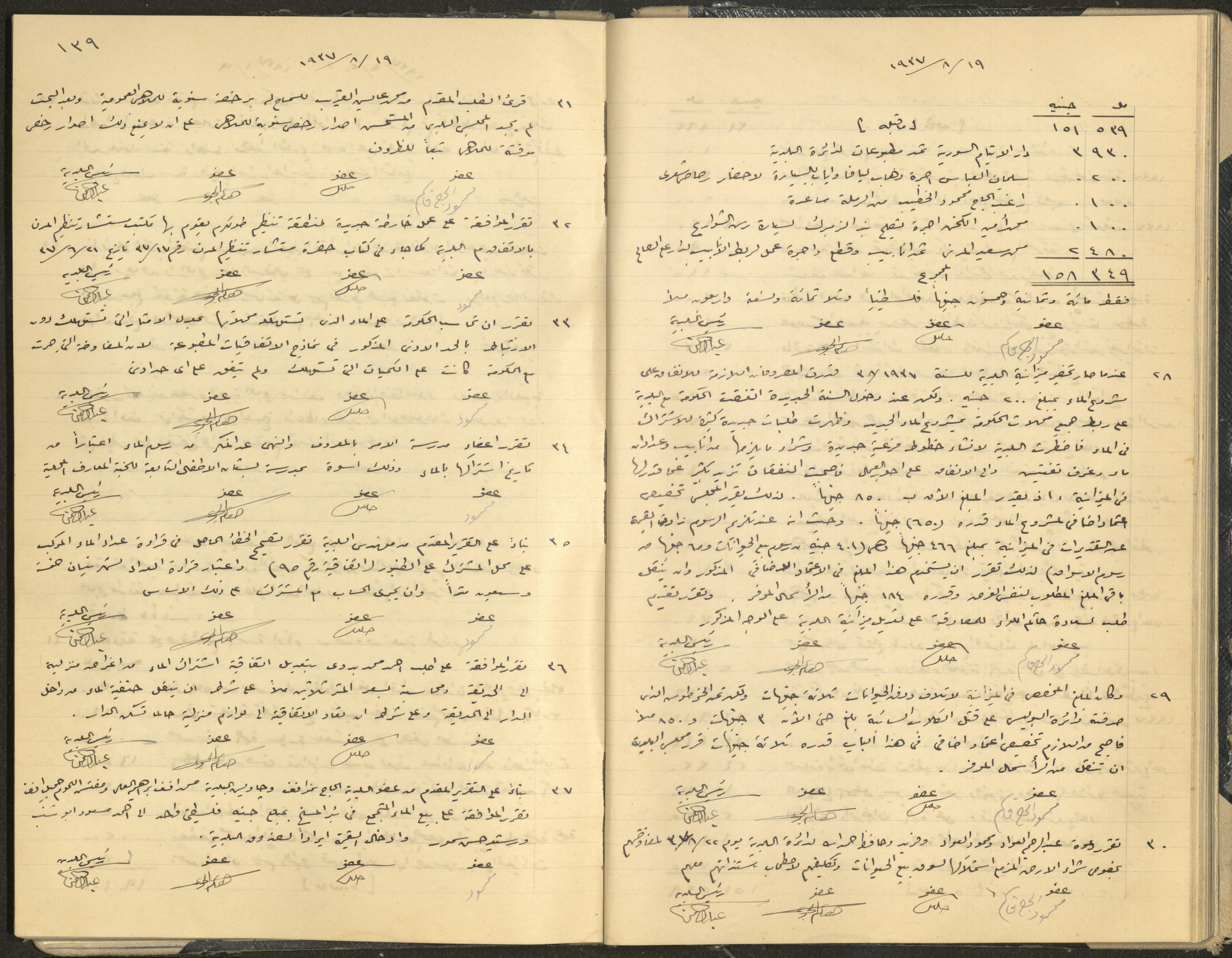 Hand-written minutes recording the proceedings of a meeting of the Tulkarem Municipal Council, including the decisions made thereby on the municipal services and population affairs.