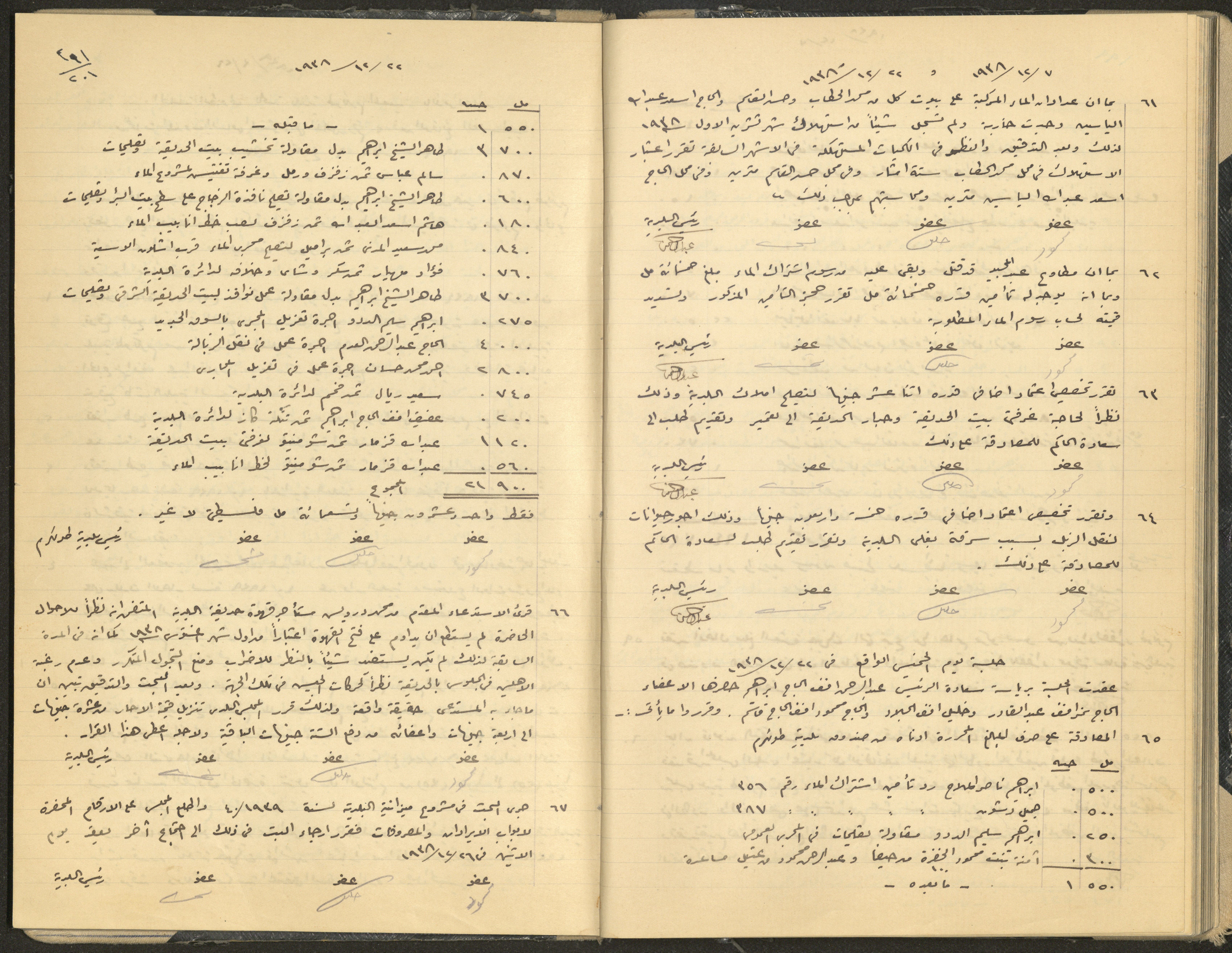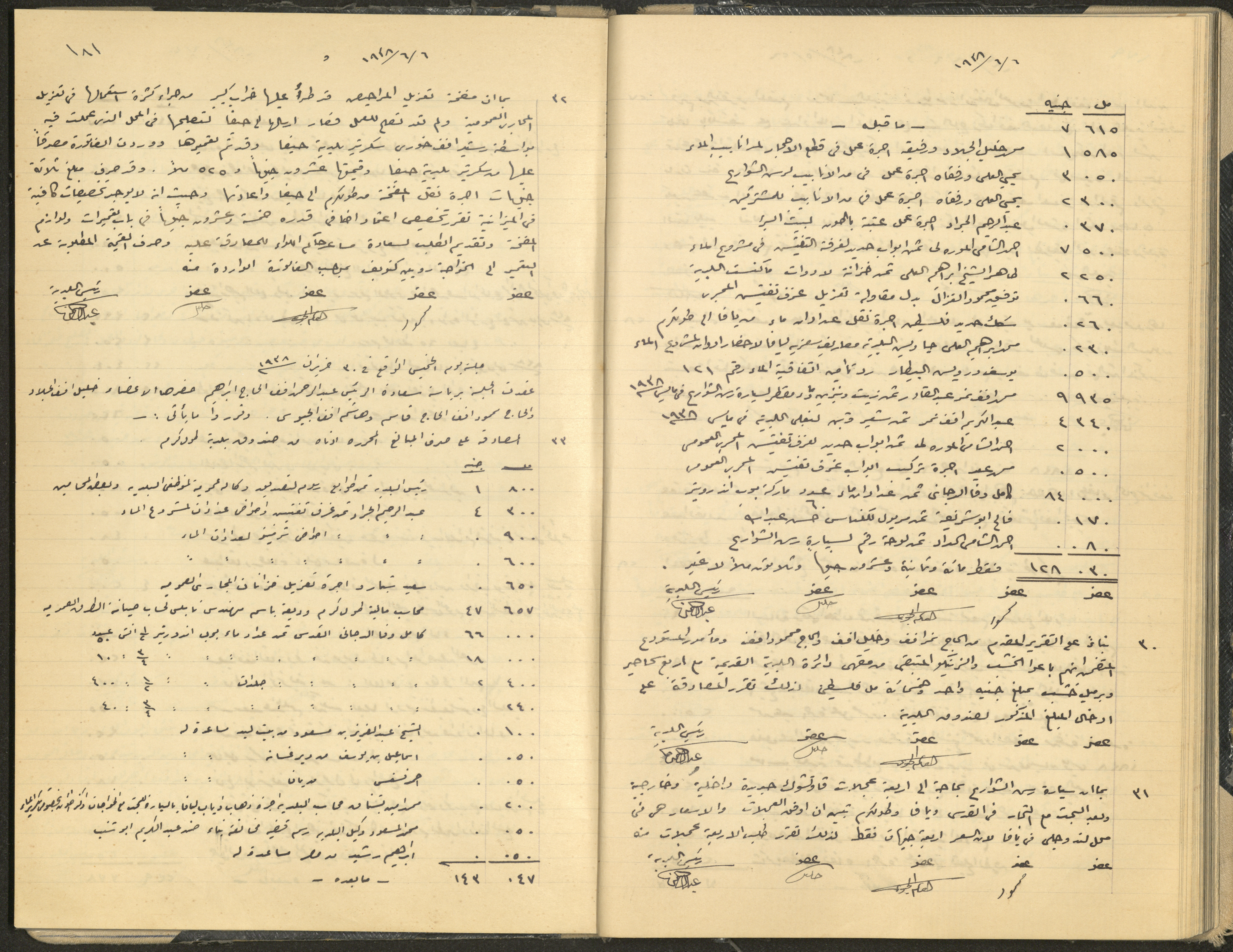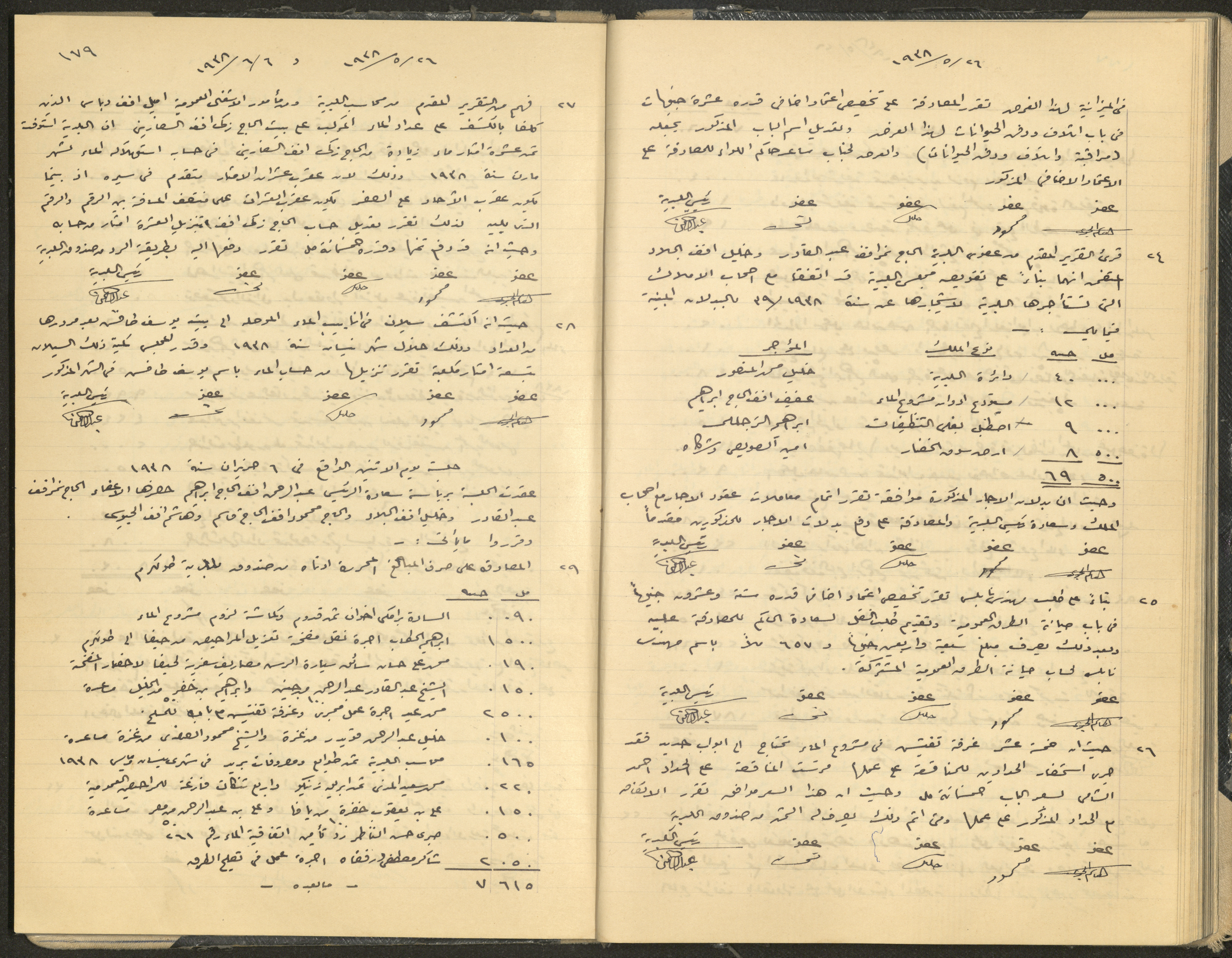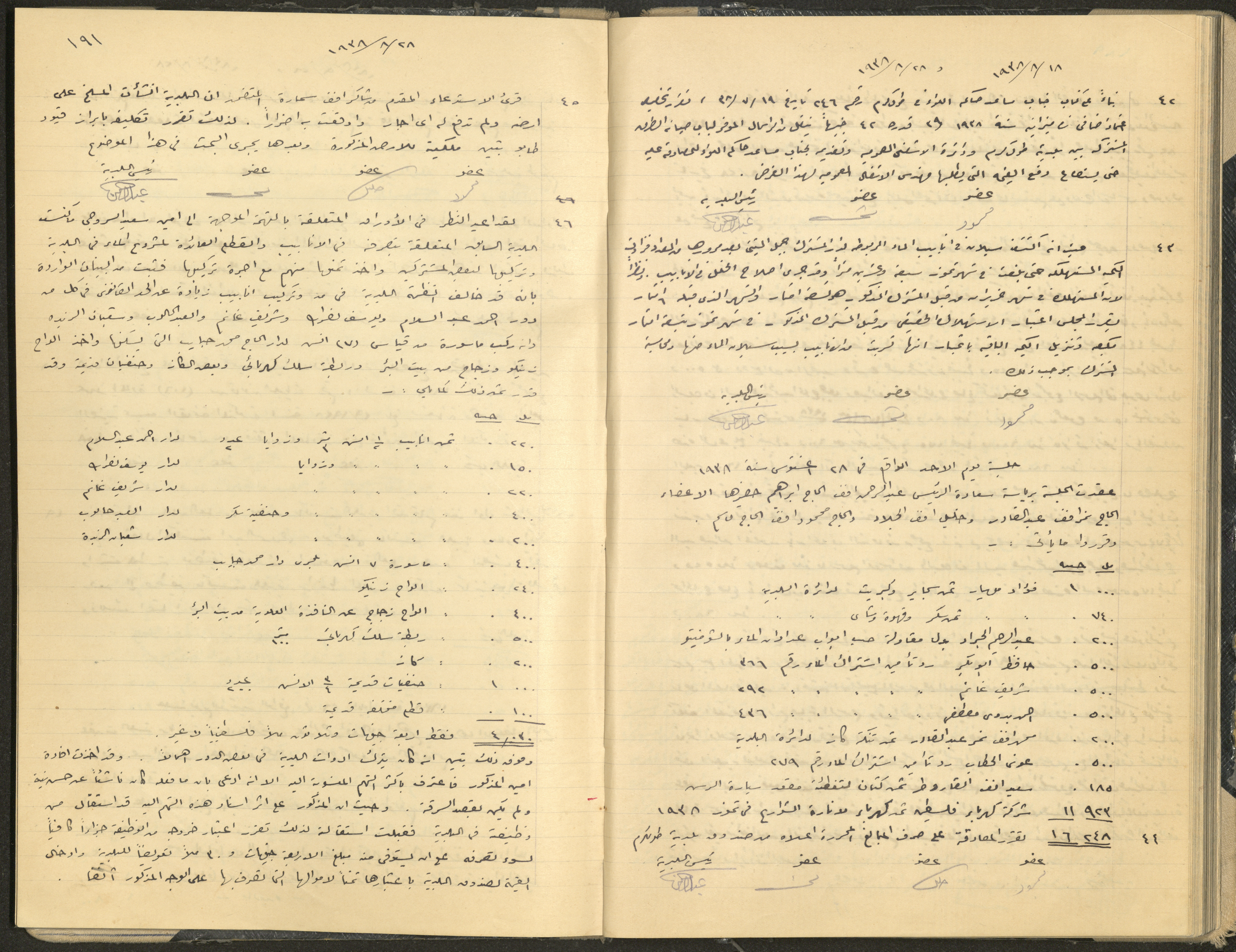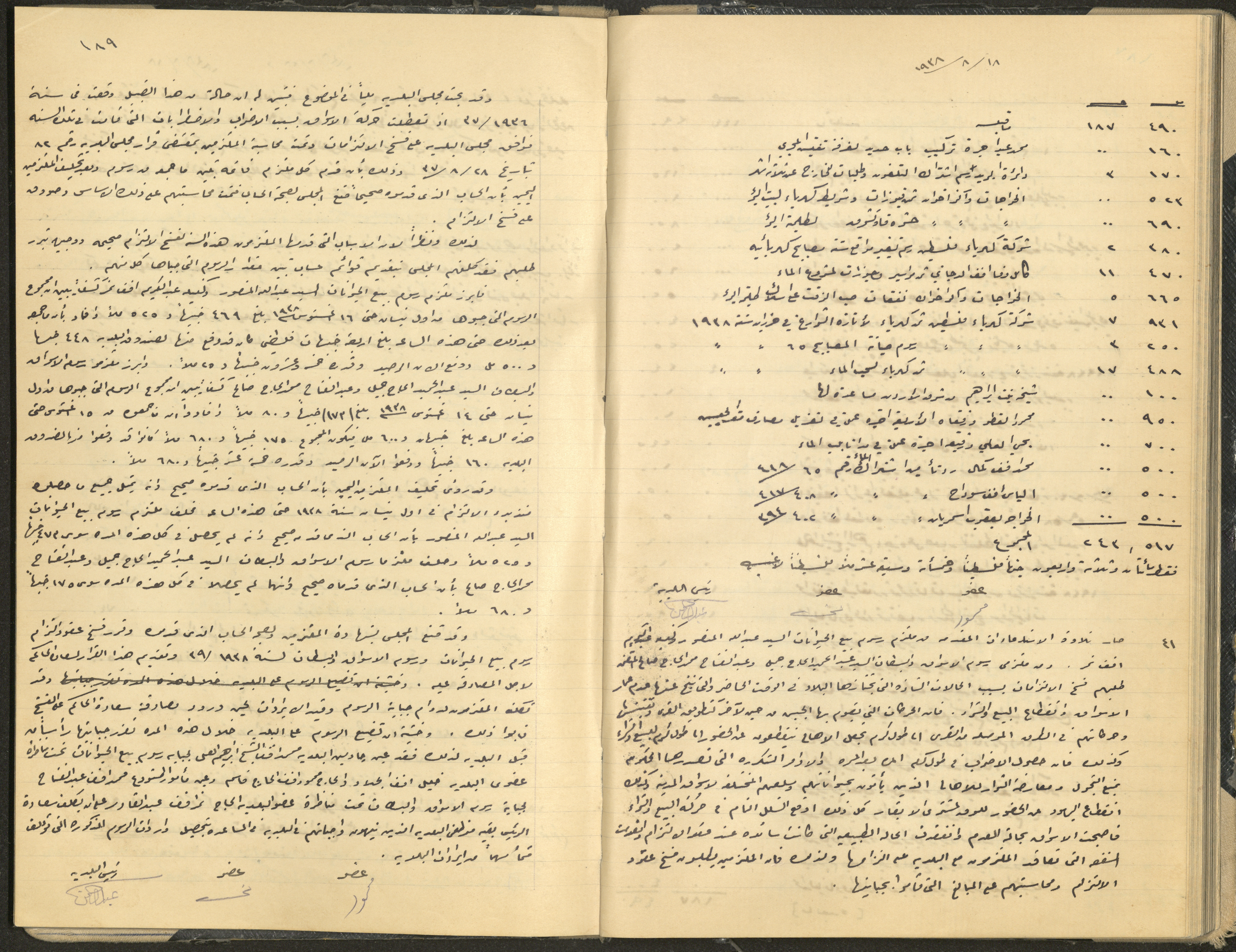 Hand-written minutes recording the proceedings of a meeting of the Tulkarem Municipal Council, including the decisions made thereby on the municipal services and population affairs.