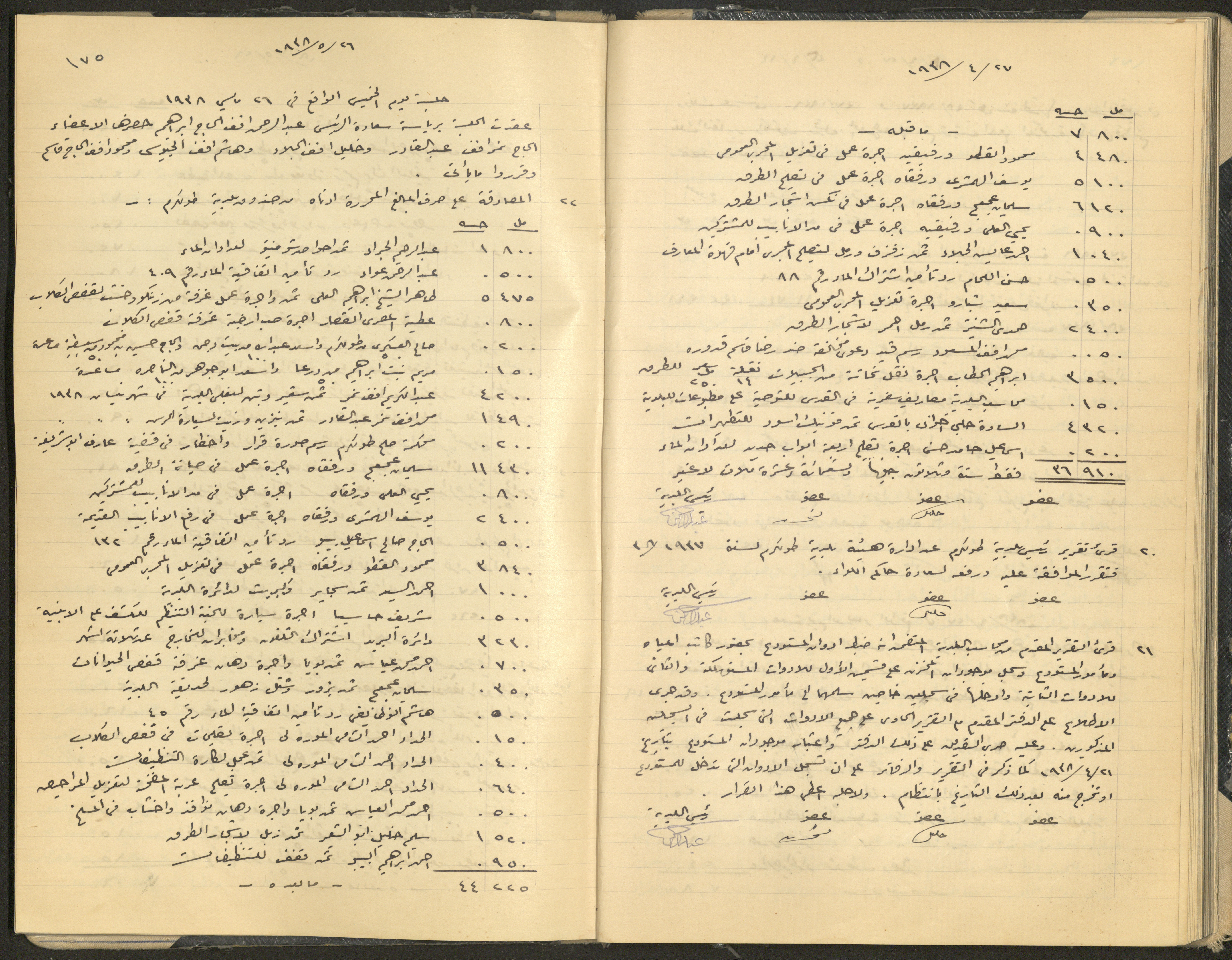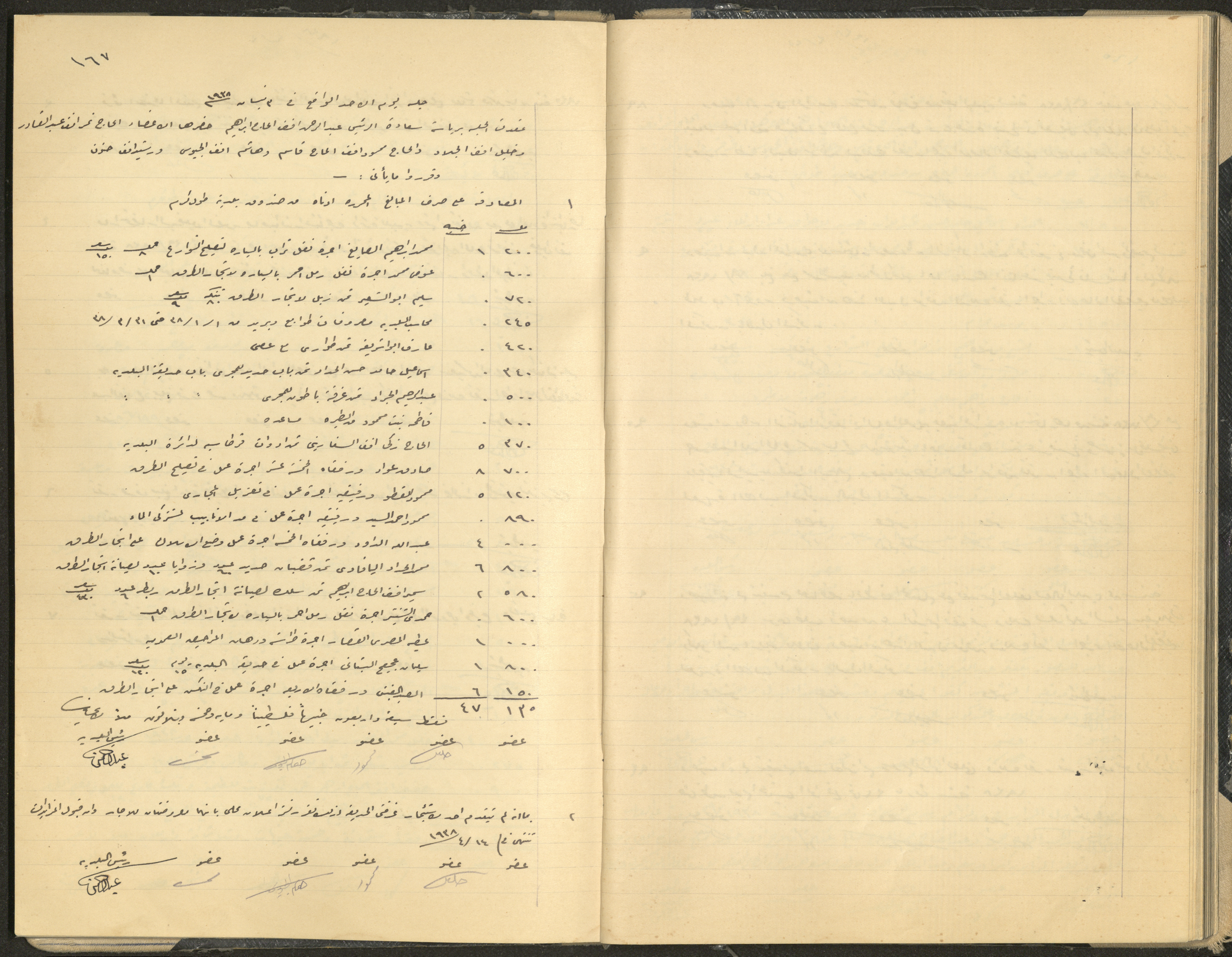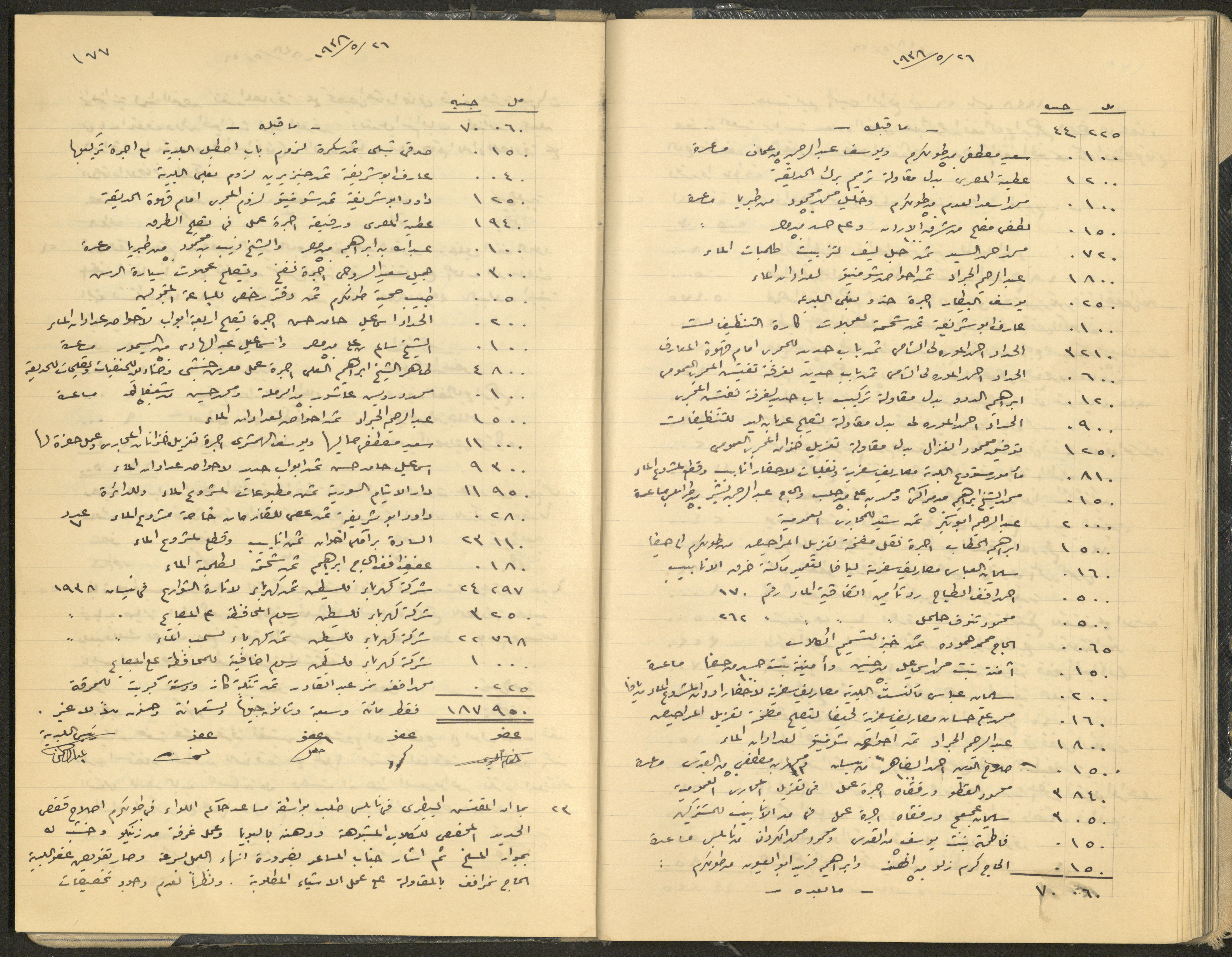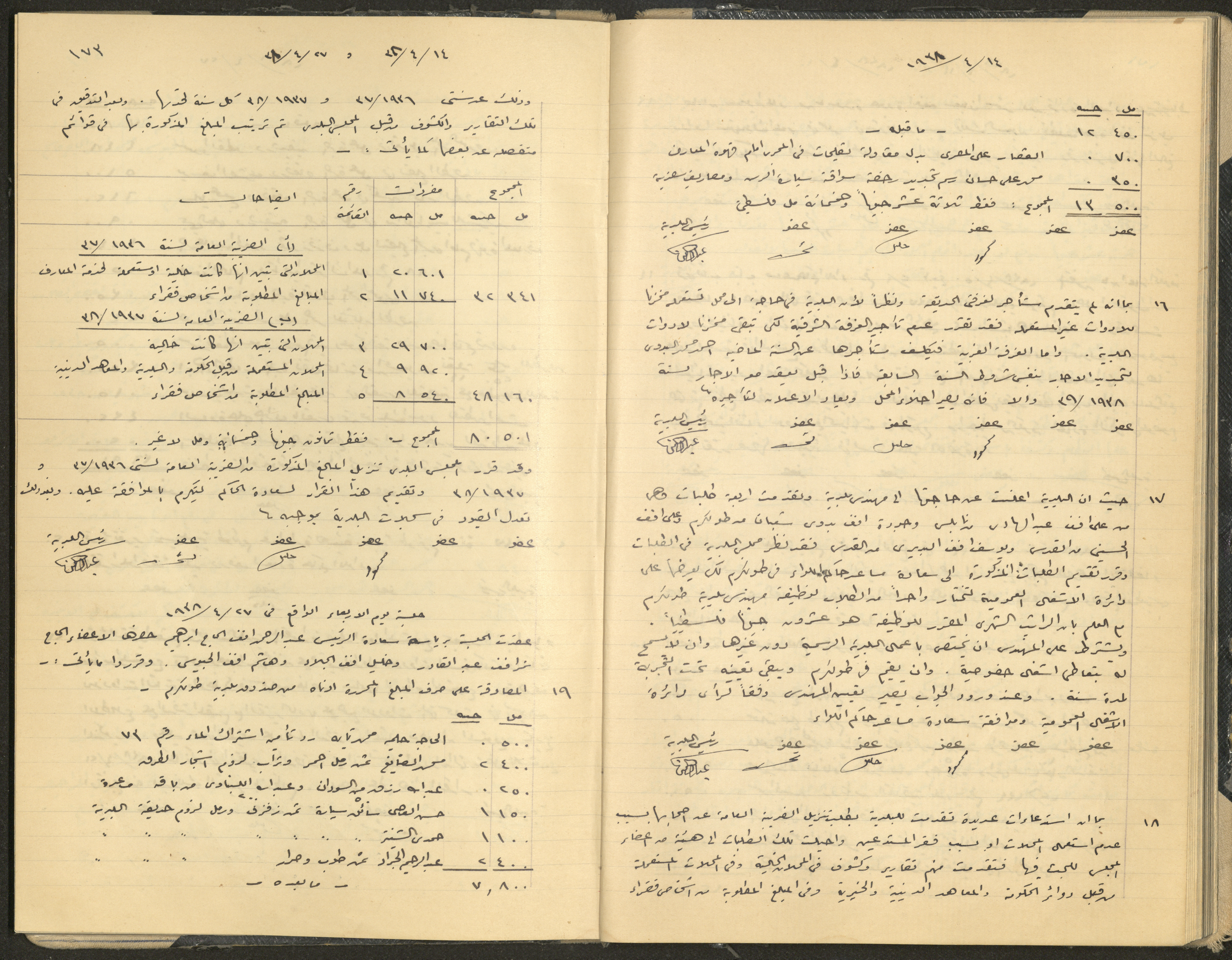 Hand-written minutes recording the proceedings of a meeting of the Tulkarem Municipal Council, including the decisions made thereby on the municipal services and population affairs.