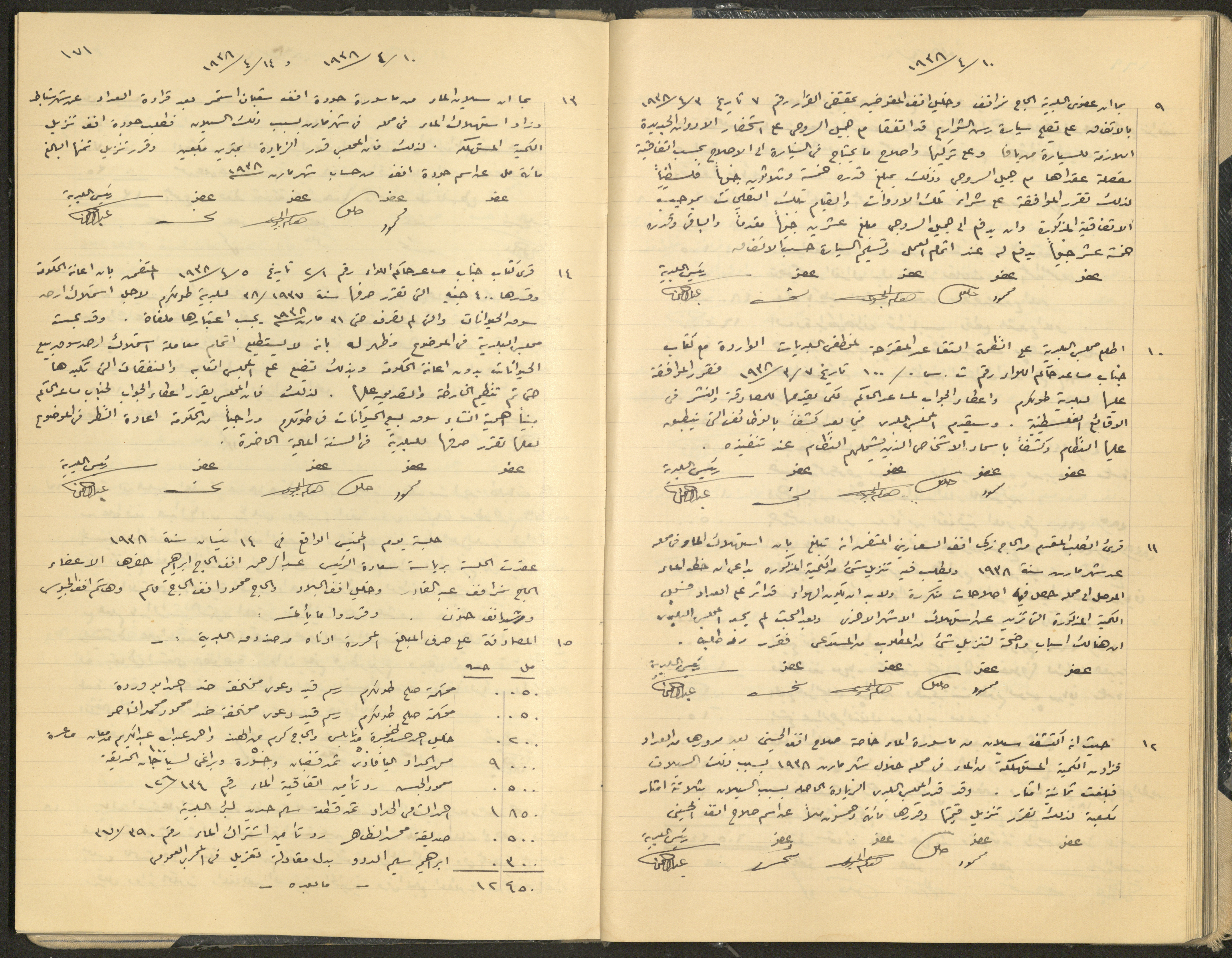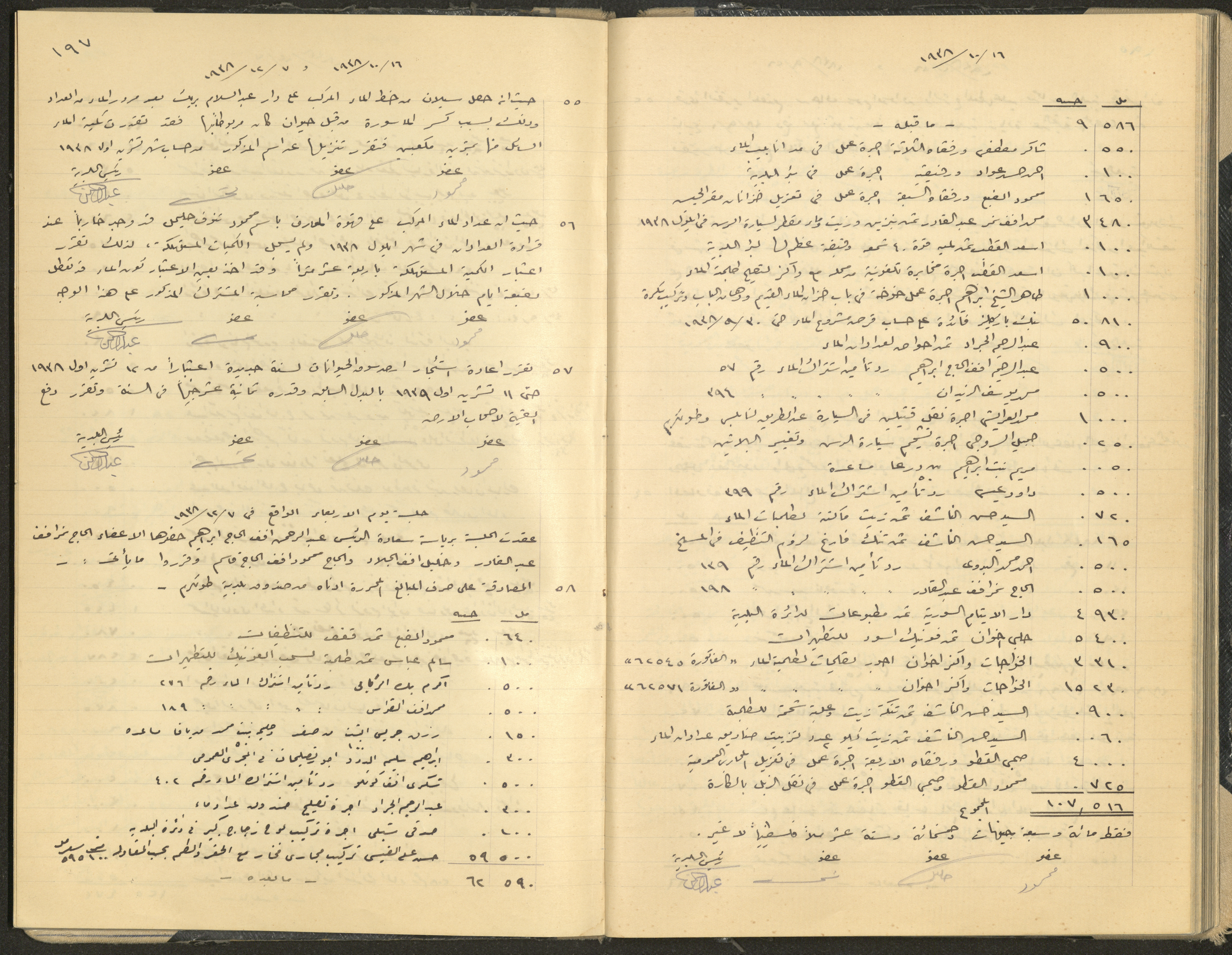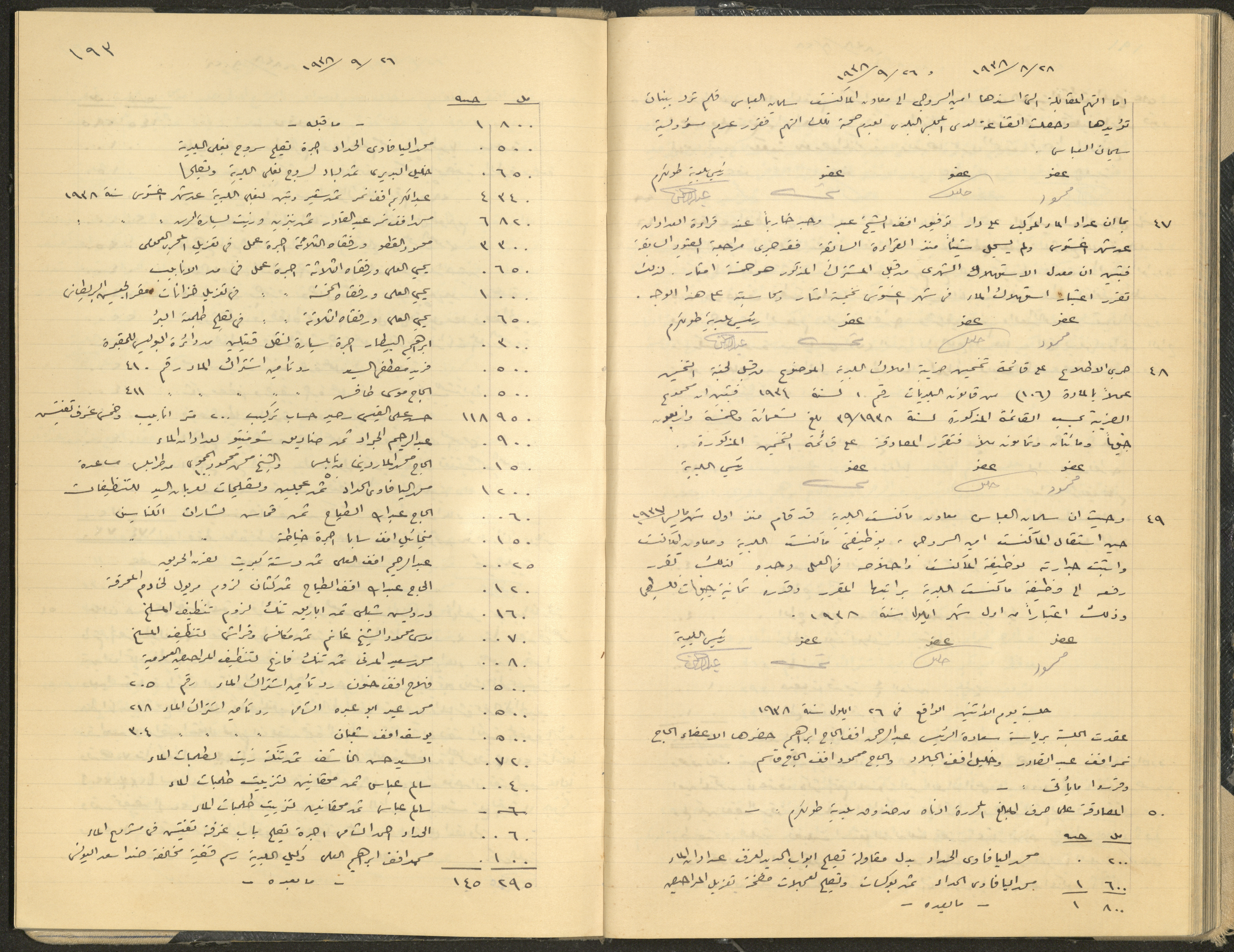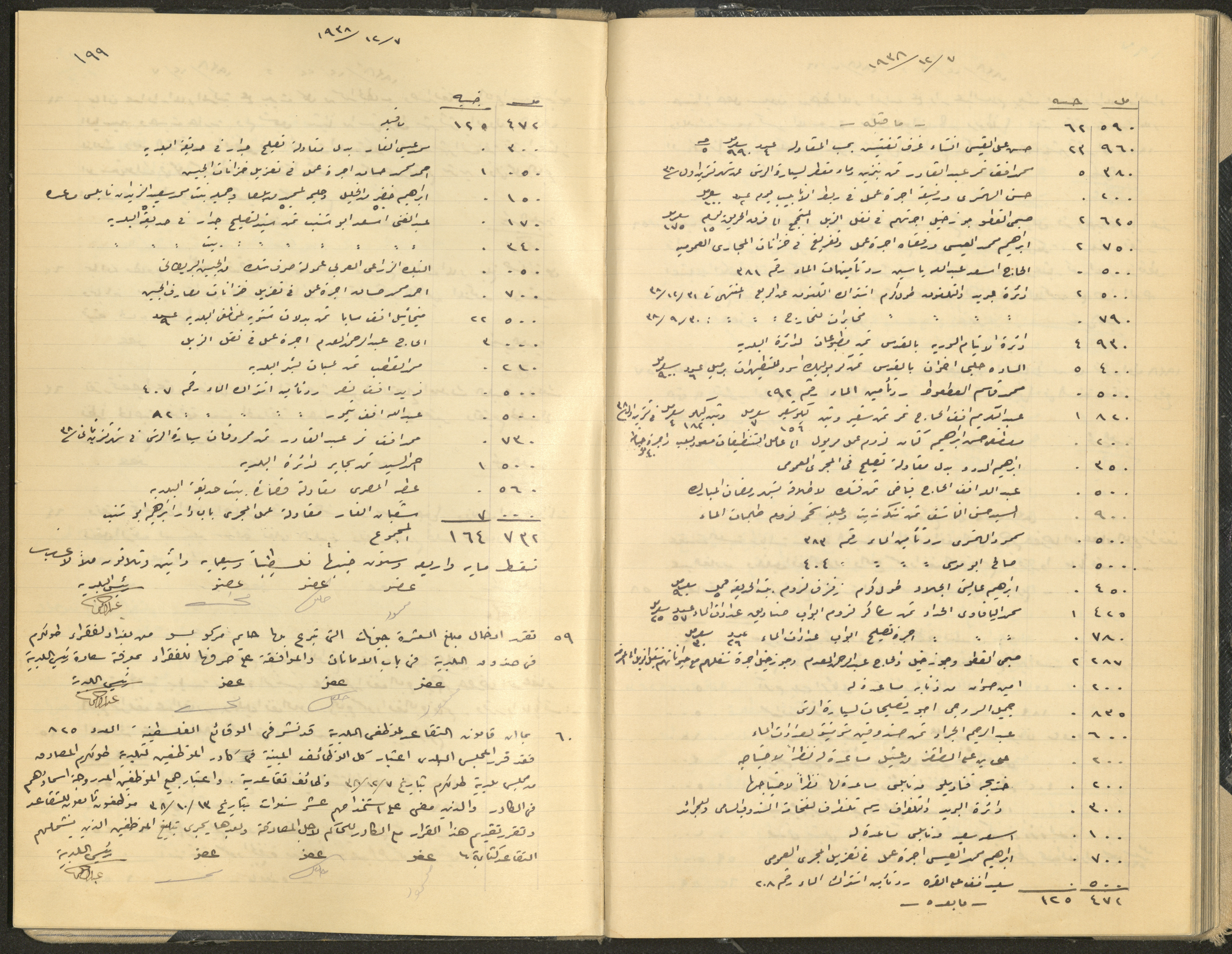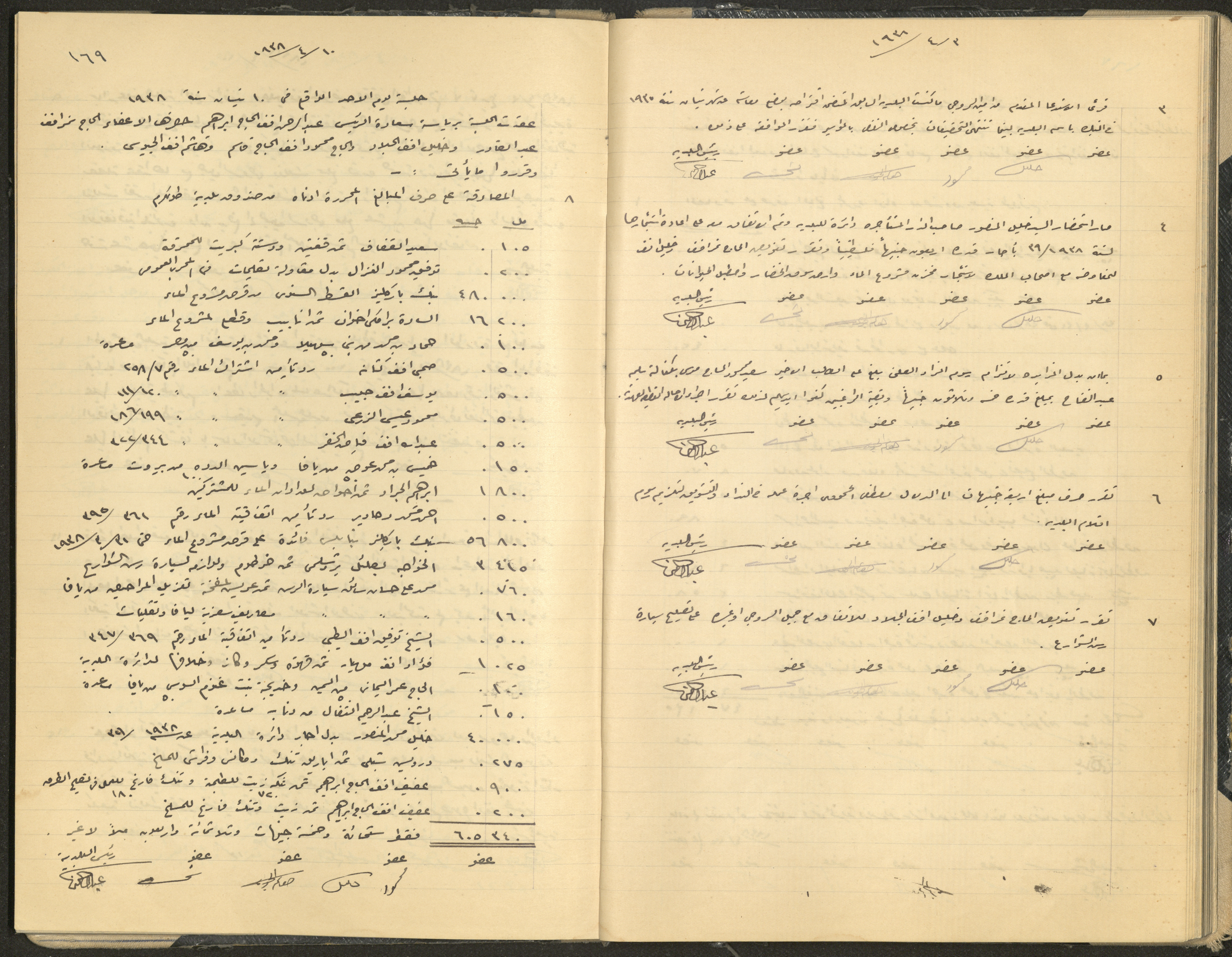 Hand-written minutes recording the proceedings of a meeting of the Tulkarem Municipal Council, including the decisions made thereby on the municipal services and population affairs.