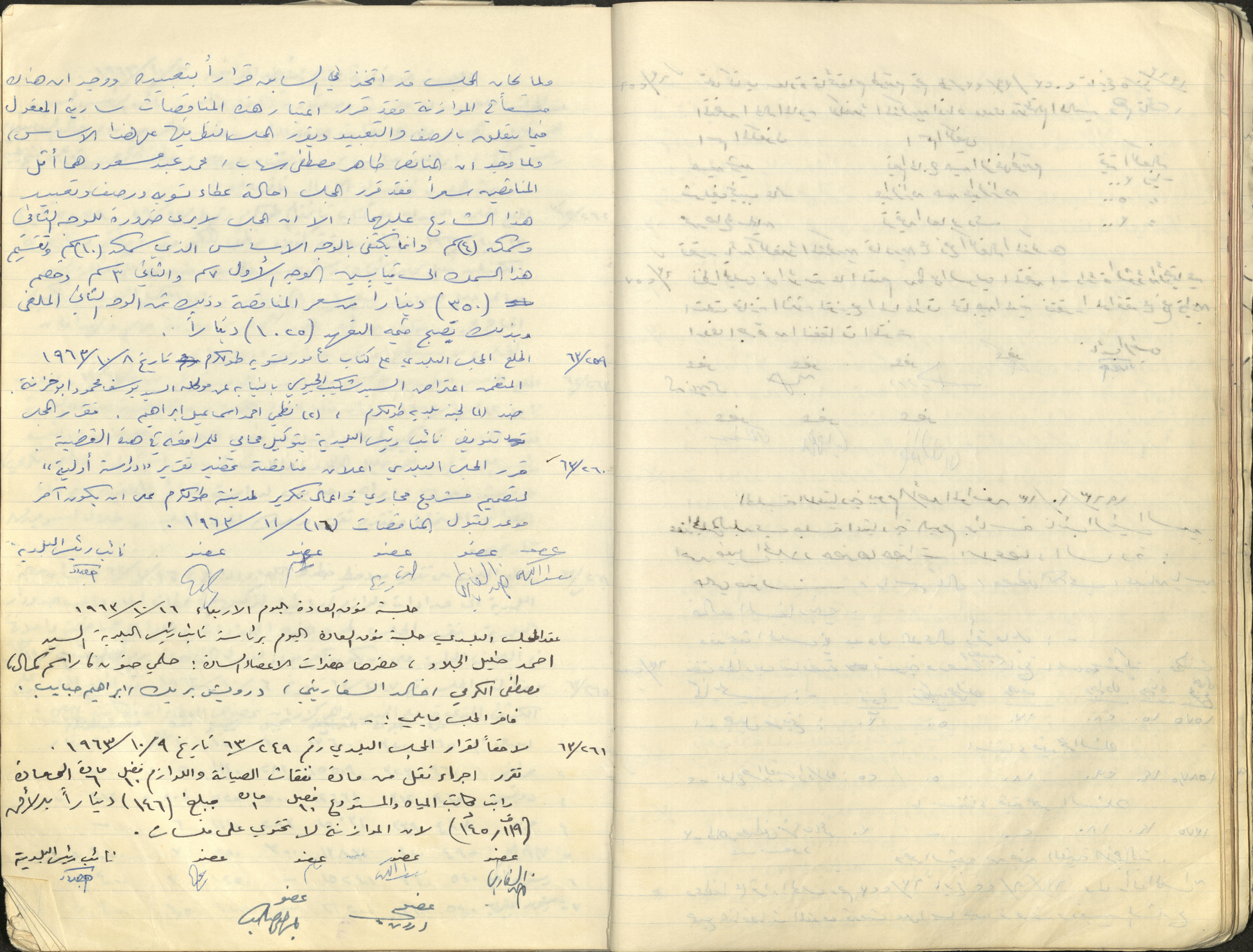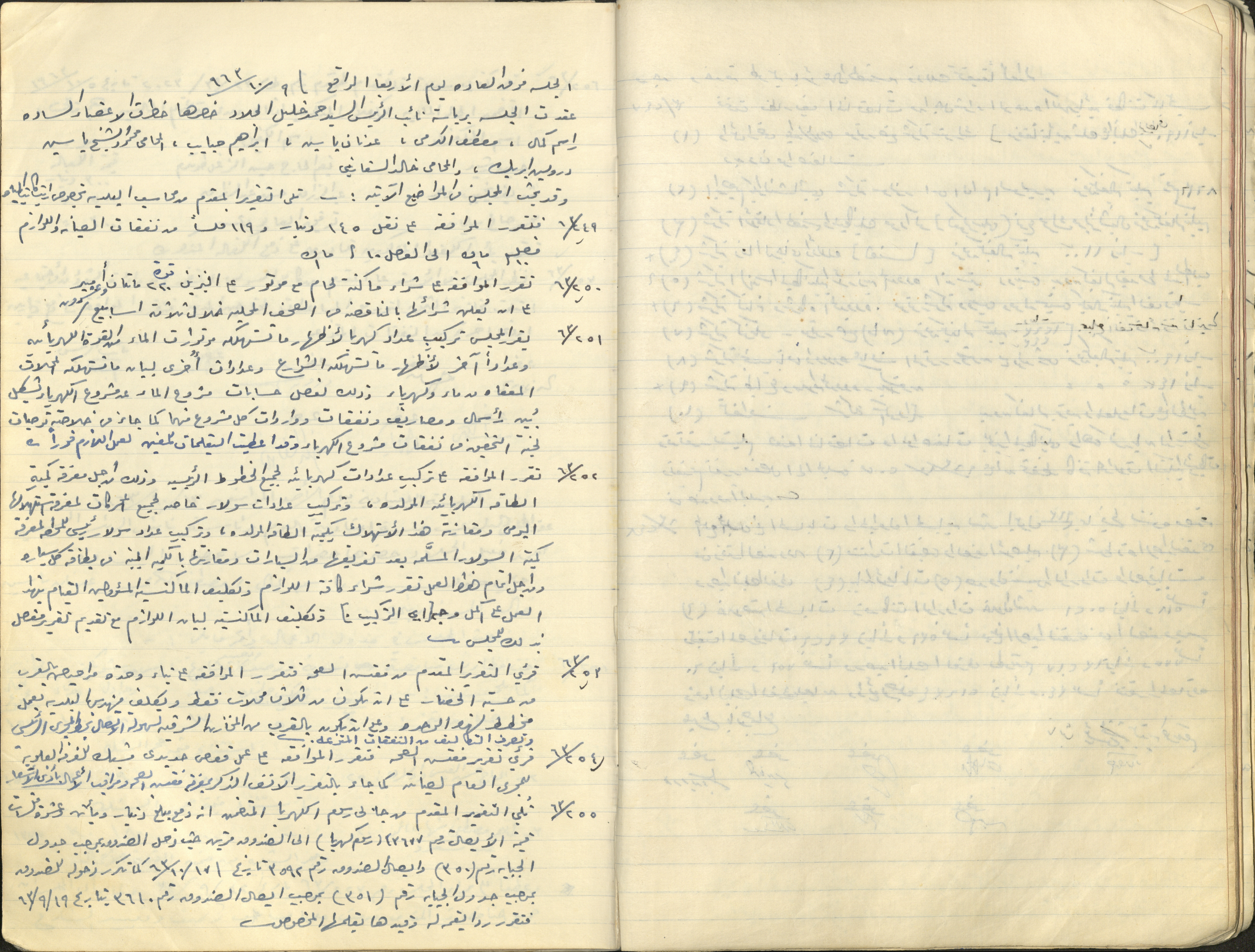 Found in the Tulkarm Municipality records, these are handwritten minutes of the municipal meetings. The notes record the proceedings and decisions made by the municipality on service provision and local population affairs.