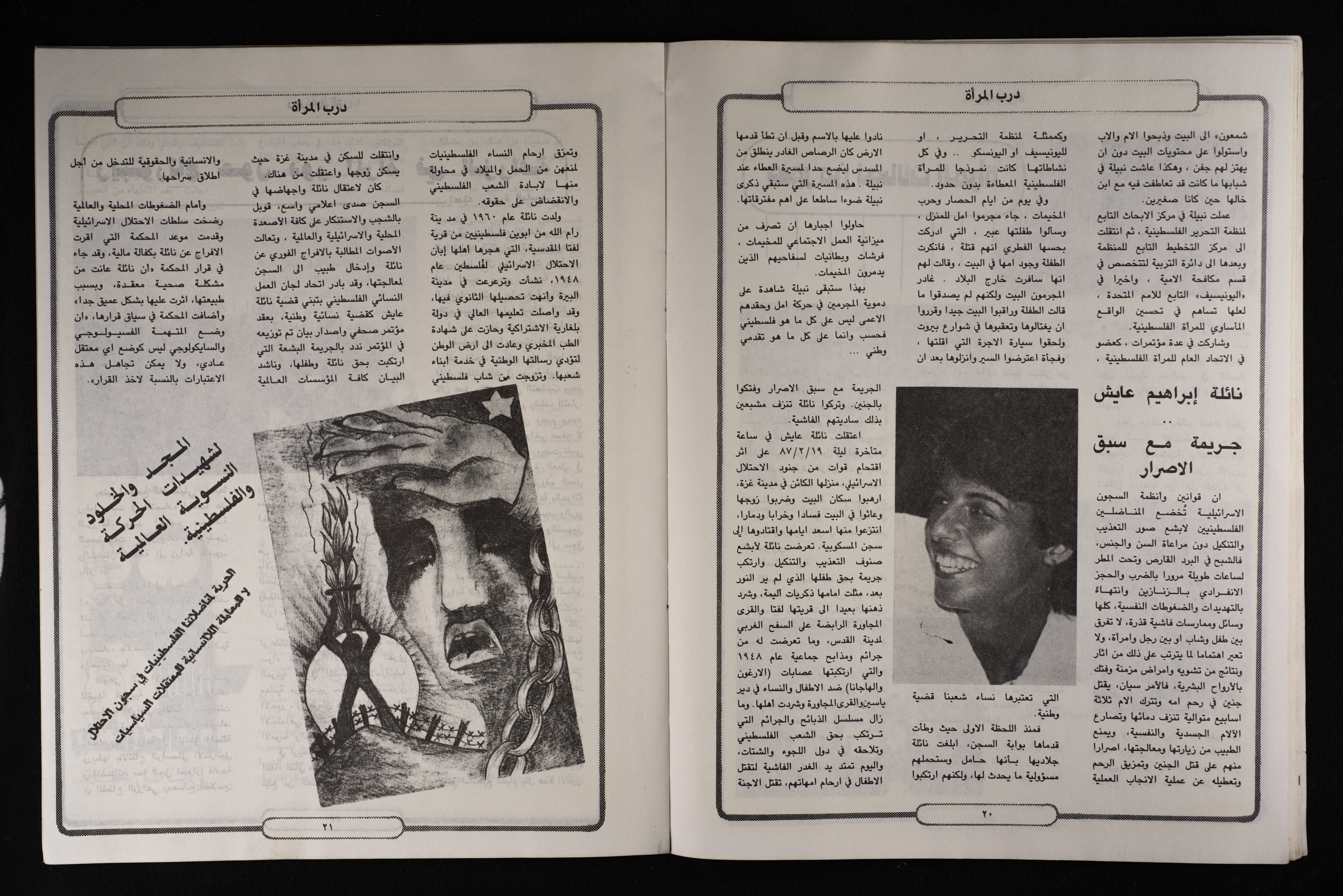 مادة مطبوعة باللغة العربي، وهي نشرة بعنوان "درب المرأة" صدرت لمرة واحد عن اتحاد لجان العمل النسائي، ناقشت تطور الحركة النسوية الفلسطينية.