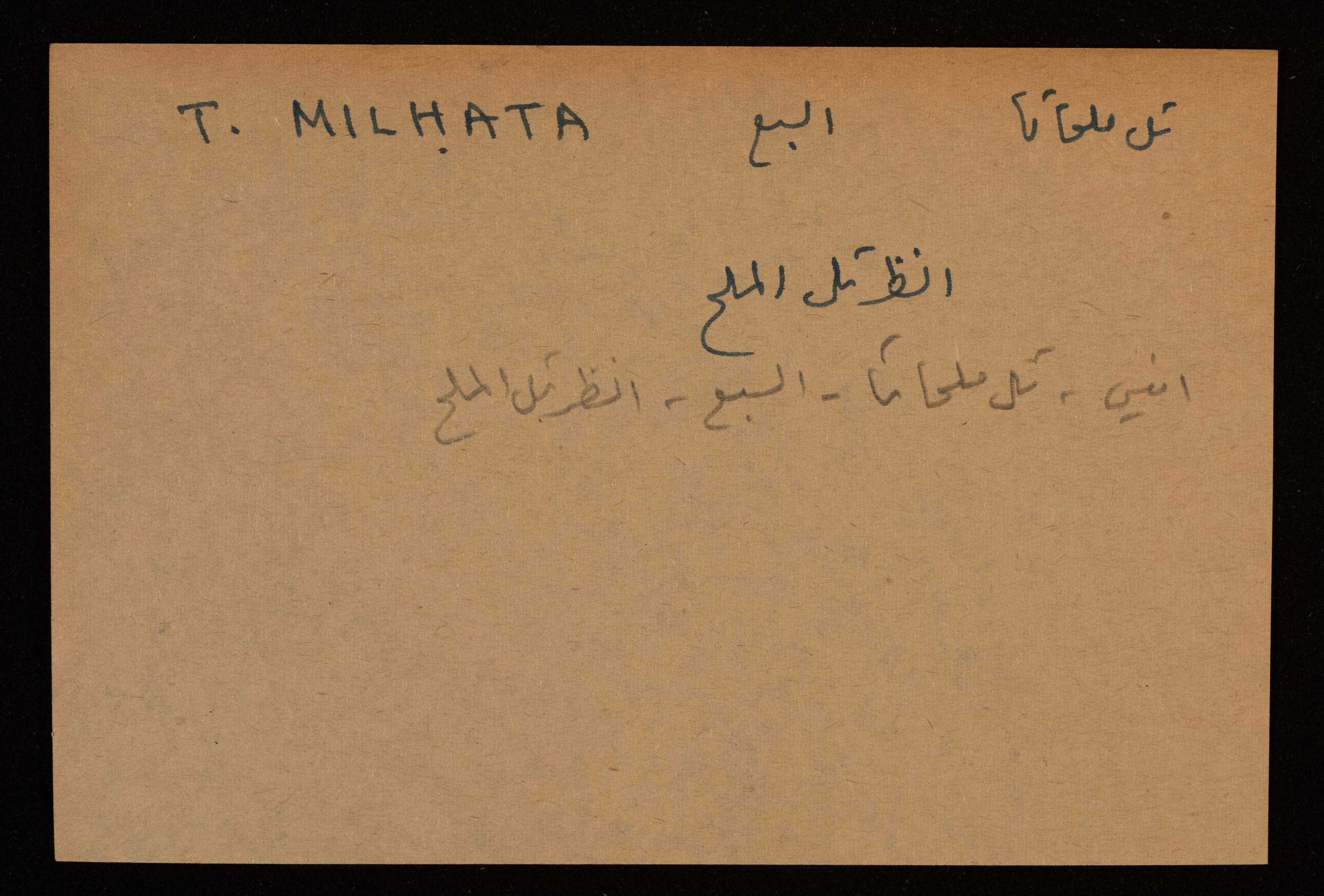 قصاصة توثق الإسم العربي والعبري لتل الملح في بئر السبع