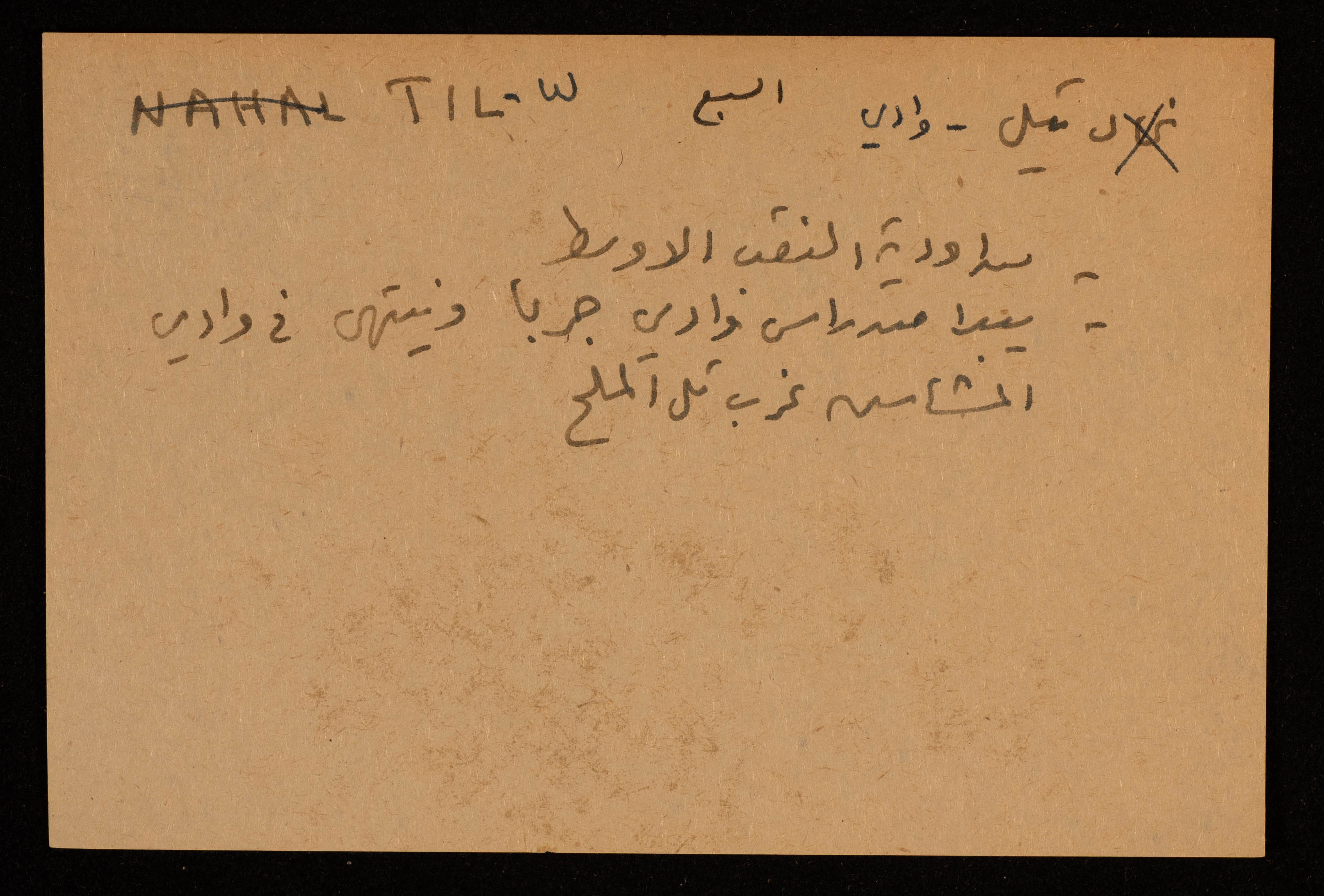 قصاصة توثق الإسم العربي لتل وادي في بئر السبع، وهو من أودية النقب الأوسط يبدأ من راس وادي جربا حتى ينتهي في وادي المشاش غرب تل الملح.