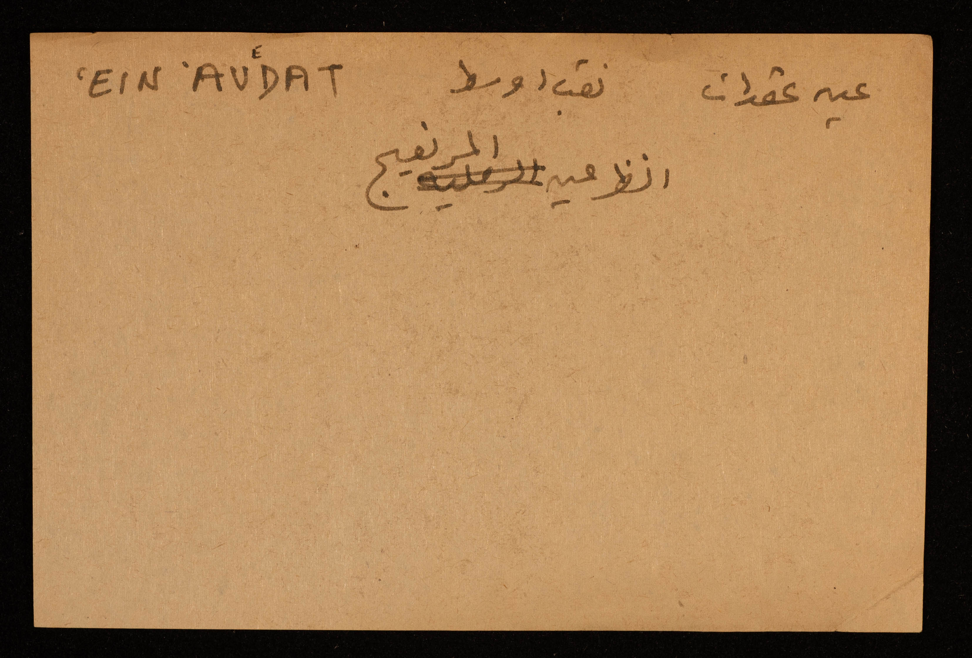 قصاصة توثق الإسم العربي والعبري لعين عفدات في النقب الأوسط