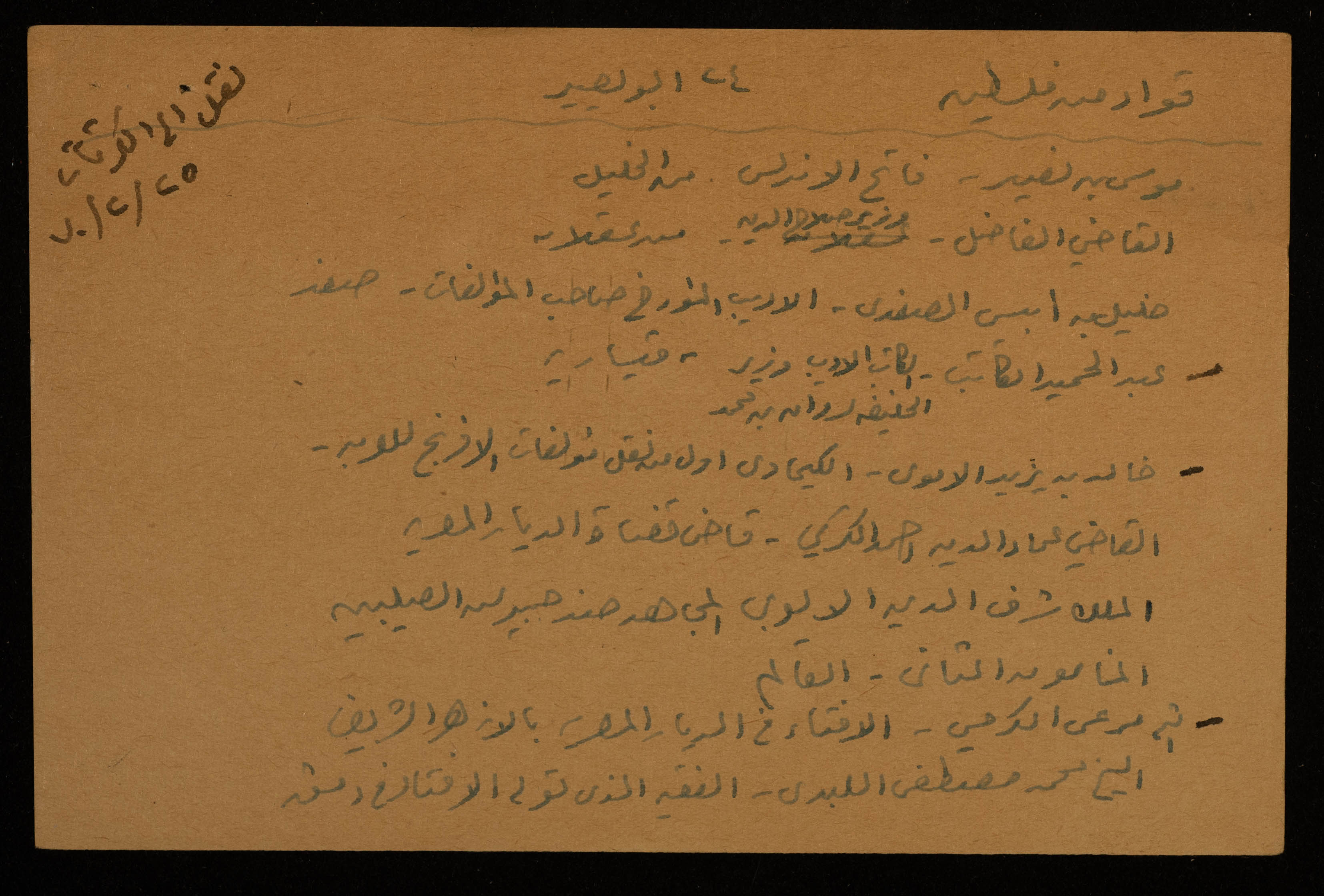 قصاصة توثق أسماء قادة تاريخيين من فلسطين
