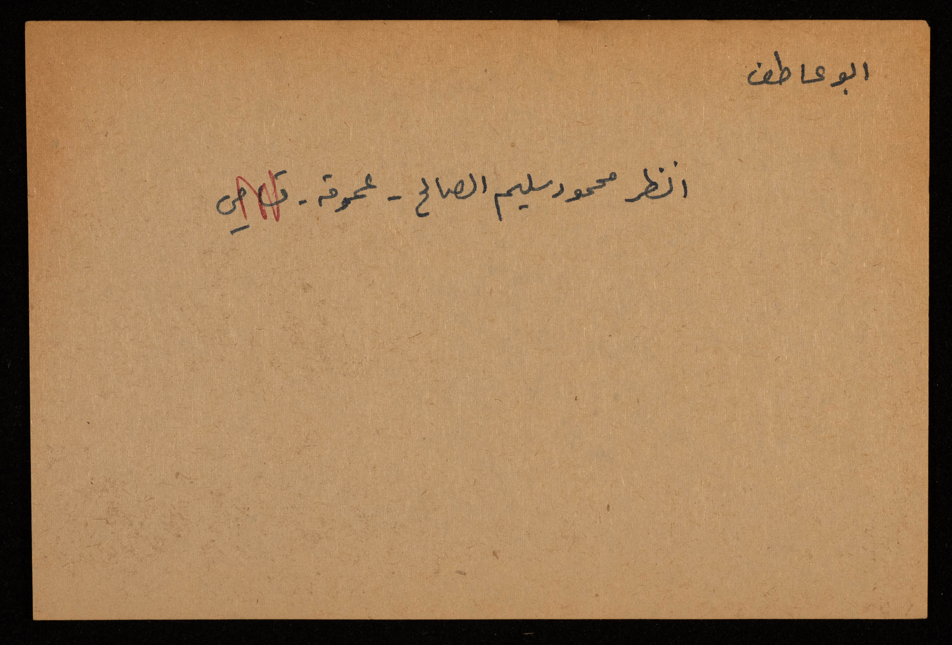 قصاصة توثق اسم محمود سليم الصالح أبو عاطف من قرية عموقة قضاء صفد.