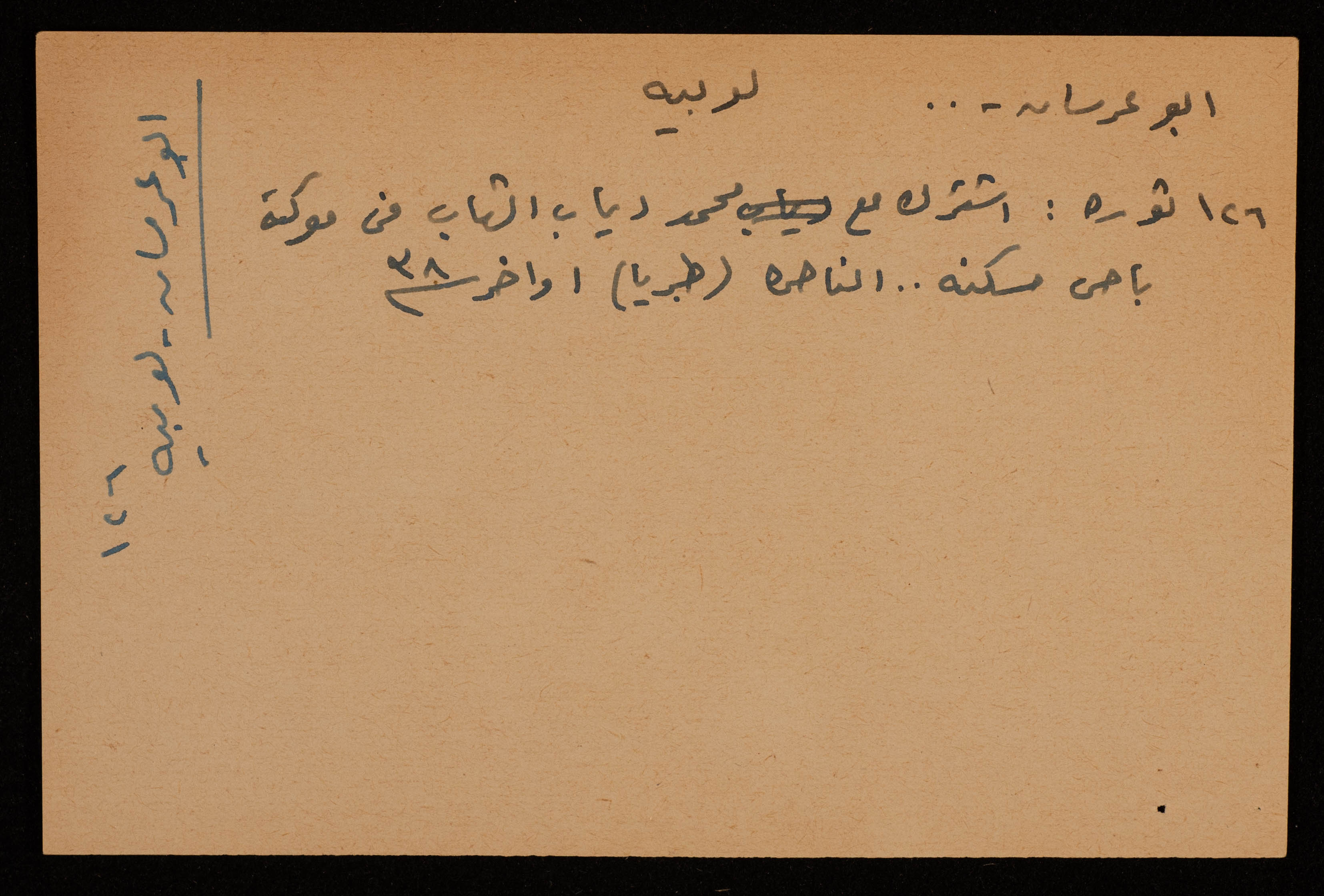 قصاصة توثق اسم أبو عرسان من قرية لوبية قرب طبريا
