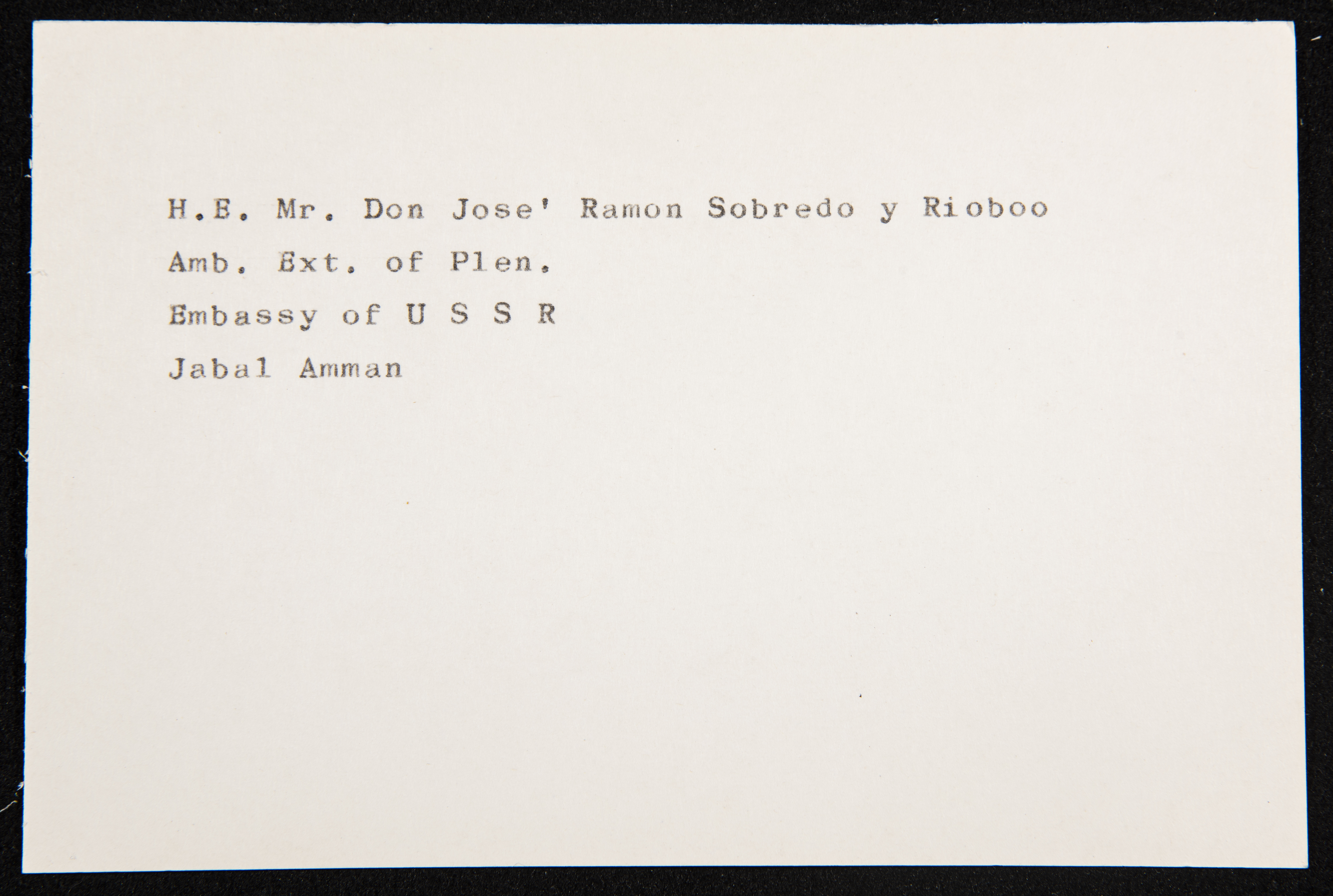 توثق هذه القصاصة، المطبوعة بالآلة الكاتبة، عنوان دون جوس رامون من سفارة روسيا الاتحادية الكائنة في جيل عمان، الأردن. من غير الواضح اذا ما كانت القصاصة عبارة عن رسالة بريدية أم قصاصة توثيقية بحثية.