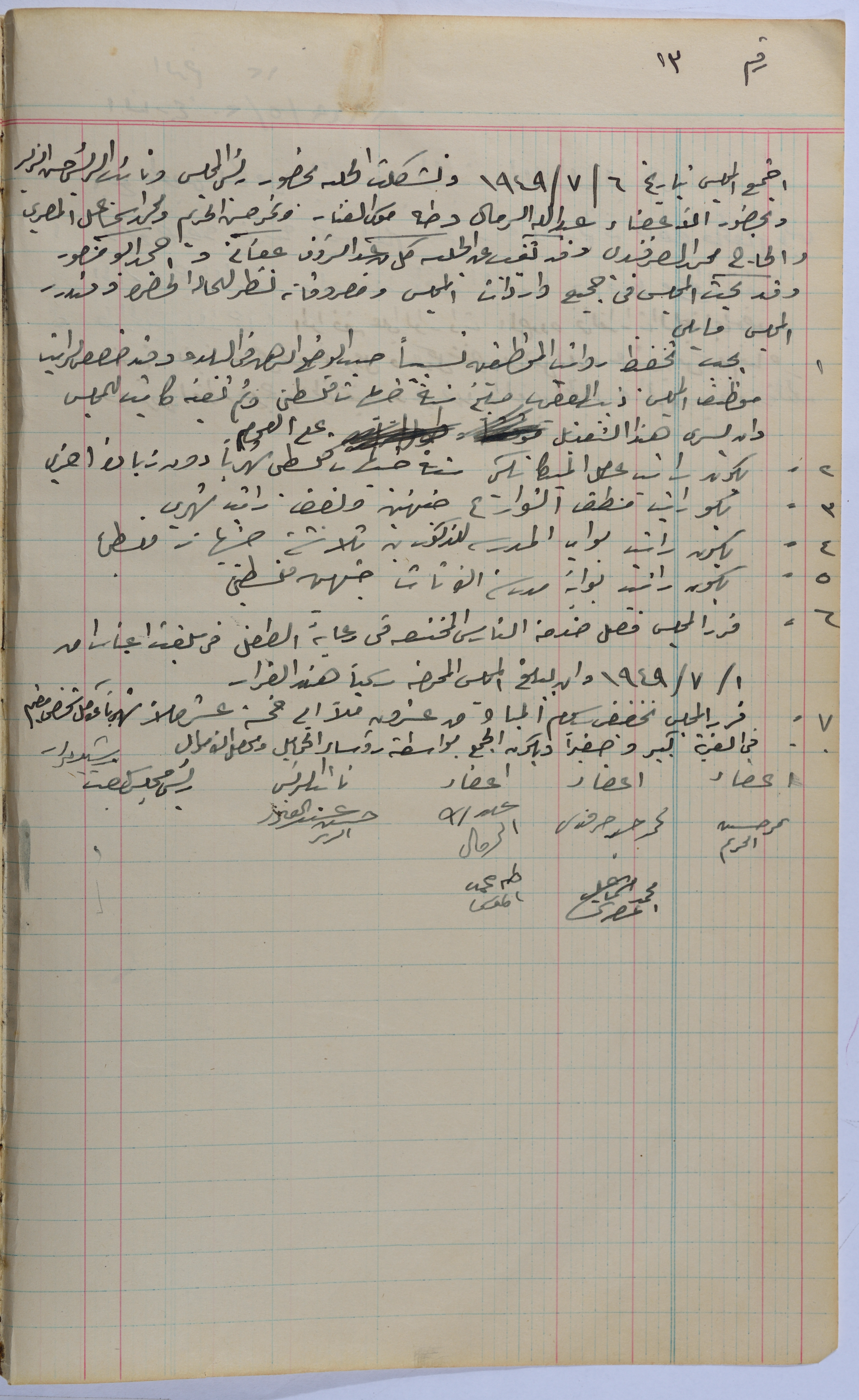 محضر جلسة مجلس قروي سلفيت رقم 12، 6 تموز 1949