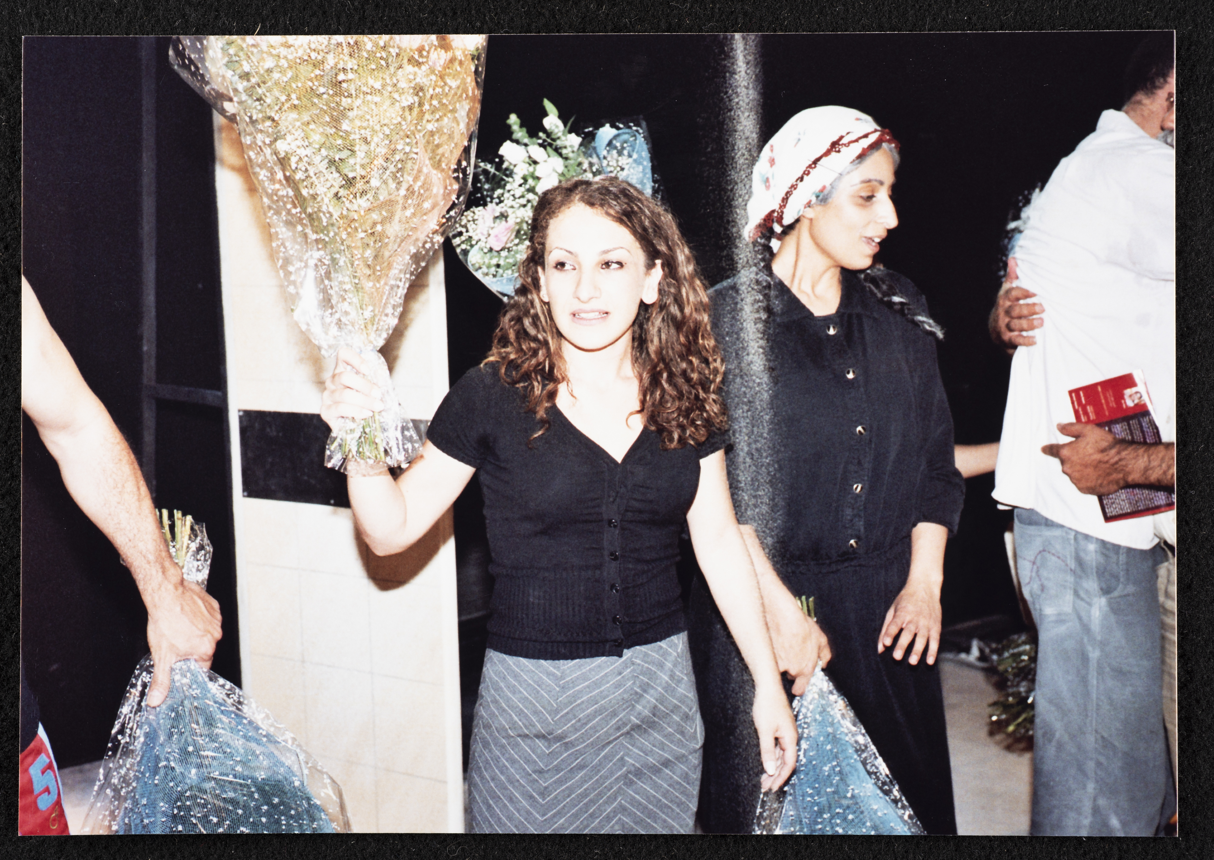 صورة ملونة تظهر فيها حنان حلو وعرين عابدي خلال تكريم فريق عمل مسرحية جنون بعد عرضها على خشبة المسرح أمام الجمهور. يذكر أن مسرحية جنون هي مسرحية فنية من انتاج مسرح الميدان في حيفا، وتاليف جليلة نكار واعداد تامر سليمان واخراج سامح حجازي، تدور أحداث المسرحية حول رحلة شاب في البحث عن الذات، الشاب يدعى نور مرهف الاحساس لكنه تعرض للكثير من الأزمات والصعاب.