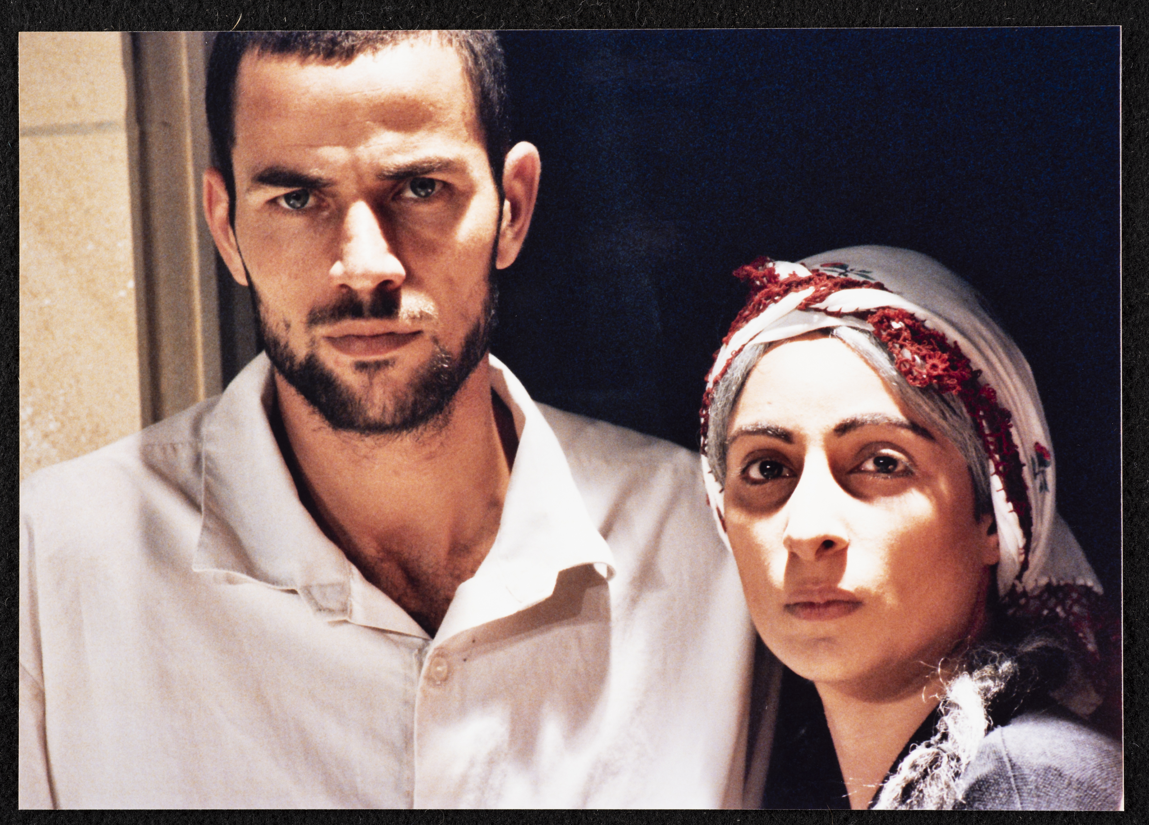 عرين عابدي وصالح بكري أثناء أدائهما لأحد مشاهد مسرحية جنون خلال عرضها أمام الجمهور