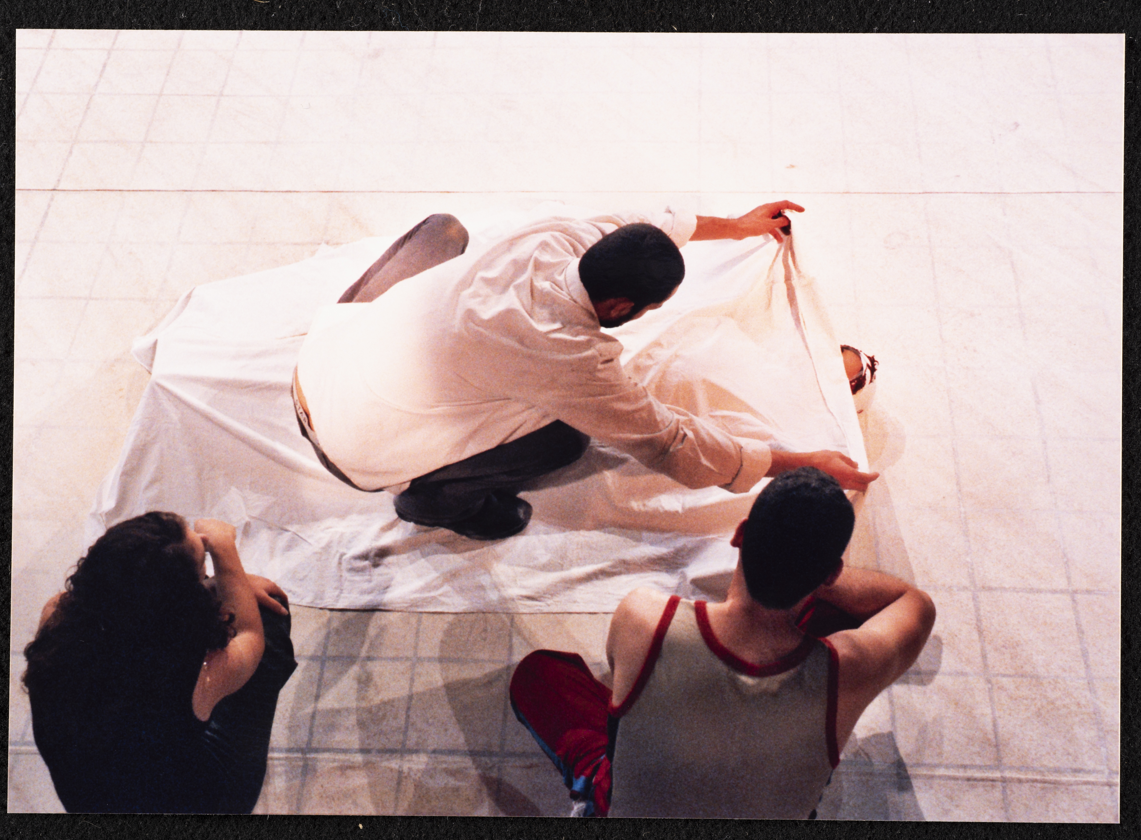 صورة ملونة يظهر فيها جواد عبد الغني وحنان حلو وصالح بكري الذي يقوم بتغطية عرين عابدي في مشهد يجسد وفاة أمه التي تلعب دورها عرين عابدي، أما صالح بكري فلعب دور"نور، الشاب الذي يعاني من أزمات وضغوطات نفسية" وجواد عبد الغني لعب دور "الأخ الأكبر لنور، وكان يعمل في تجارة المخدرات" في حين جسدت حنان حلو دور "الطبيبة النفسية المعالجة للشاب نور" . يذكر أن مسرحية جنون هي مسرحية فنية من انتاج مسرح الميدان في حيفا، وتاليف جليلة نكار واعداد تامر سليمان واخراج سامح حجازي، تدور أحداث المسرحية حول رحلة شاب في البحث عن الذات، الشاب يدعى نور مرهف الاحساس لكنه تعرض للكثير من الأزمات والصعاب.
