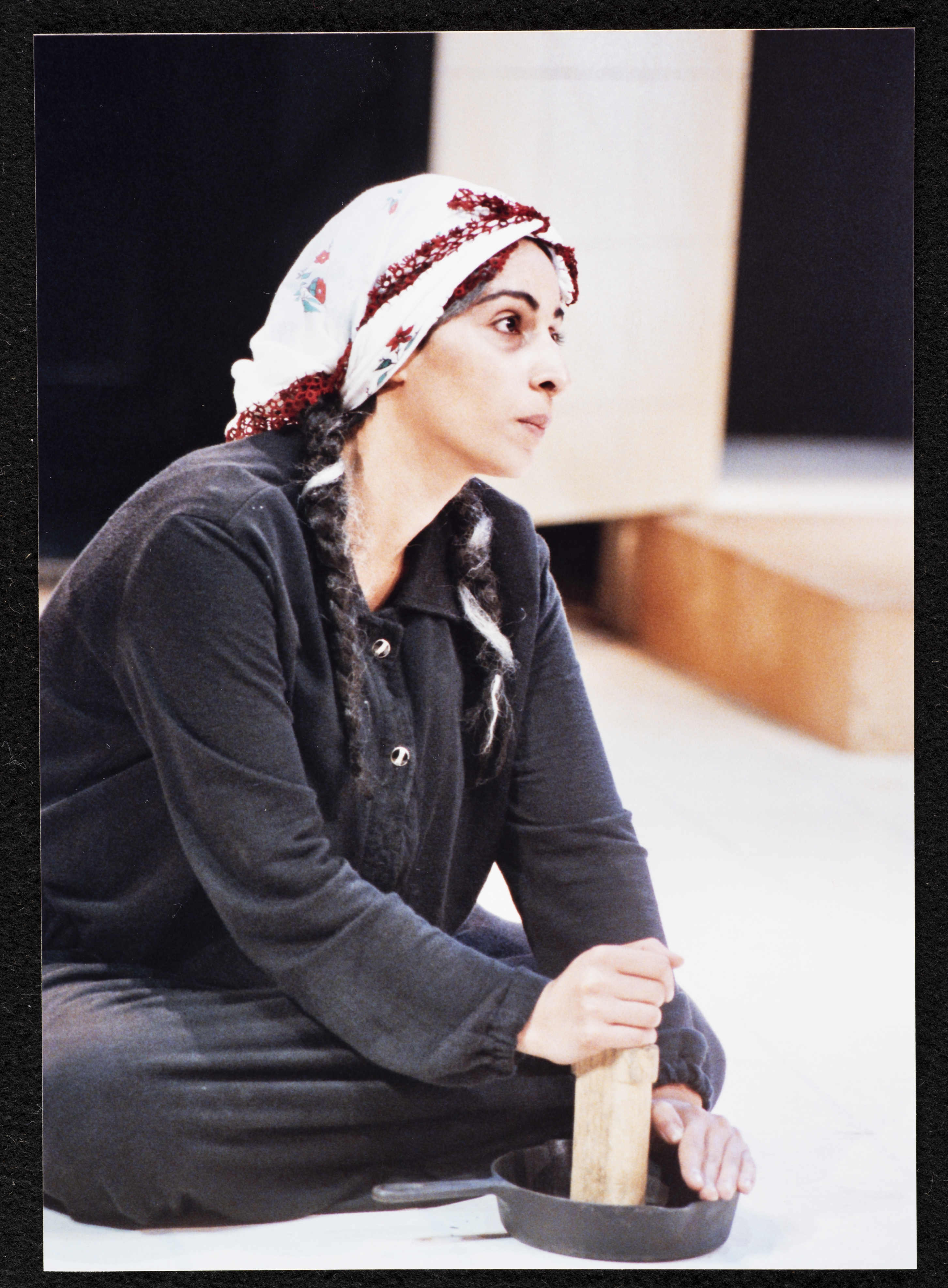 صورة ملونة تظهر فيها عرين عابدي، خلال تأديتها أحد مشاهد مسرحية جنون أمام الجمهور، لعبت عابدي دور "أم نور الشاب الذي تدور حوله أحداث المسرحية". يذكر أن مسرحية جنون هي مسرحية فنية من انتاج مسرح الميدان في حيفا، وتاليف جليلة نكار واعداد تامر سليمان واخراج سامح حجازي، تدور أحداث المسرحية حول رحلة شاب في البحث عن الذات، الشاب يدعى نور مرهف الاحساس لكنه تعرض للكثير من الأزمات والصعاب.