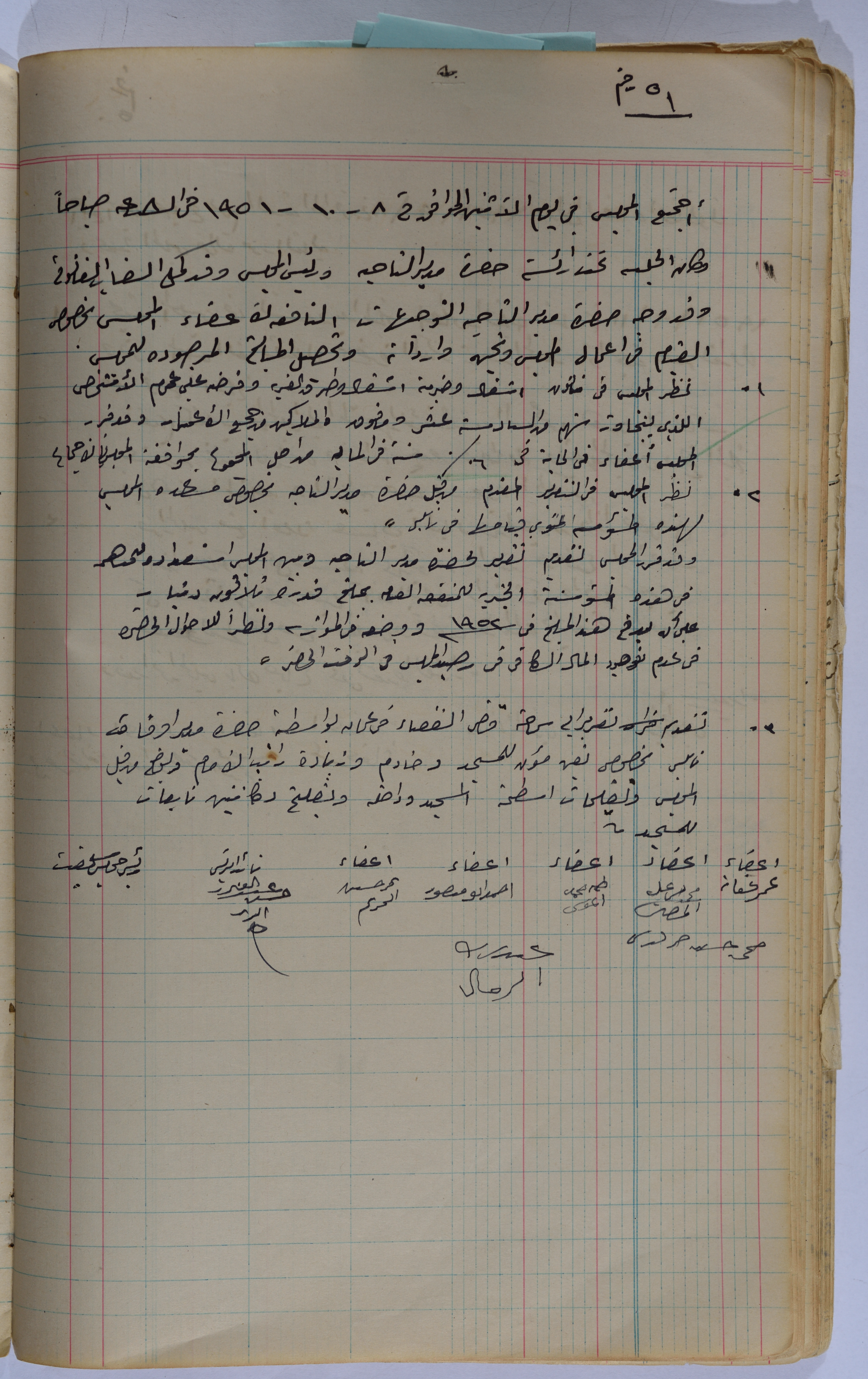 Salfit Village Council, Minutes of Meeting no. 51, 8 October 1951