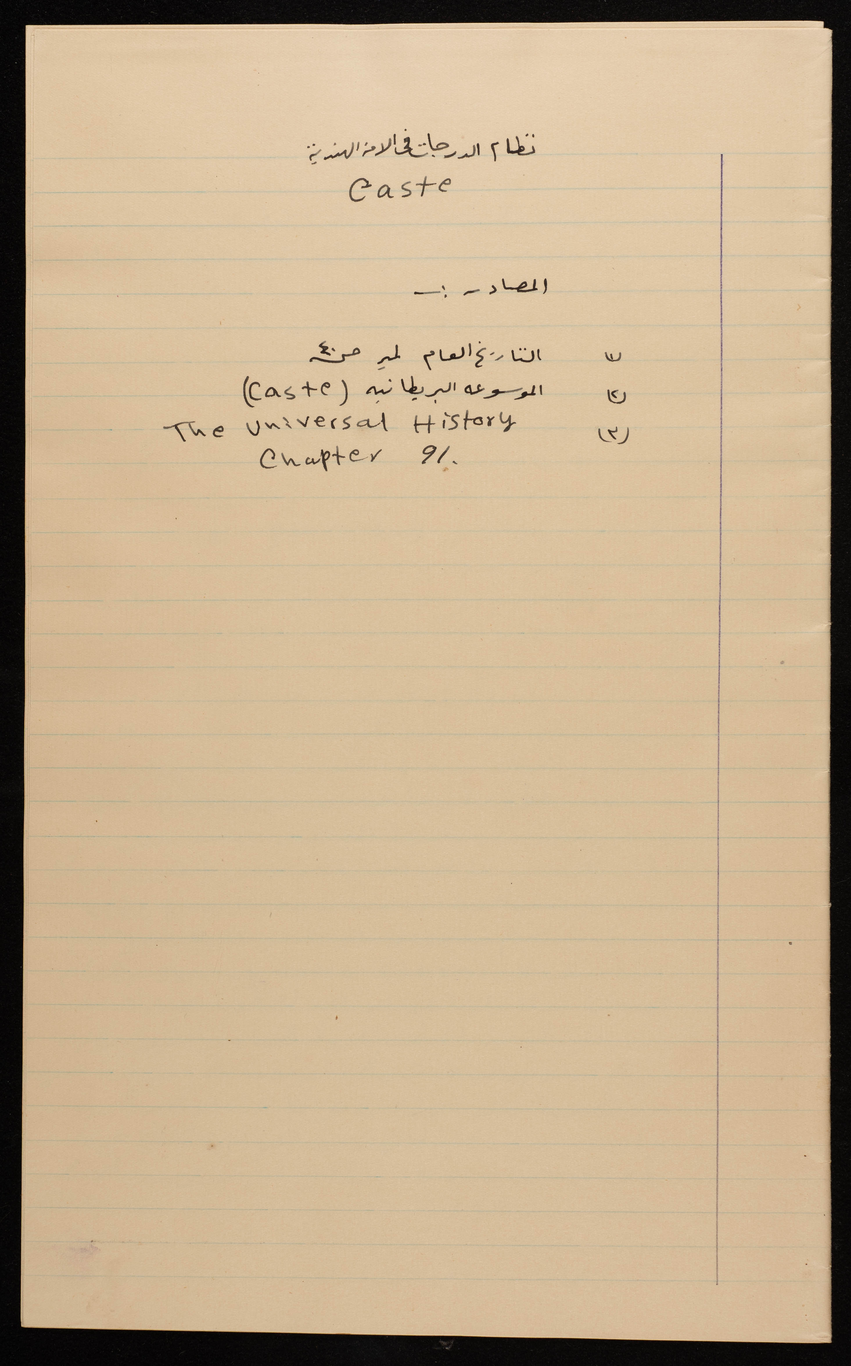 Summary Notes by a Student at the Arab College in al-Quds, 1920-30