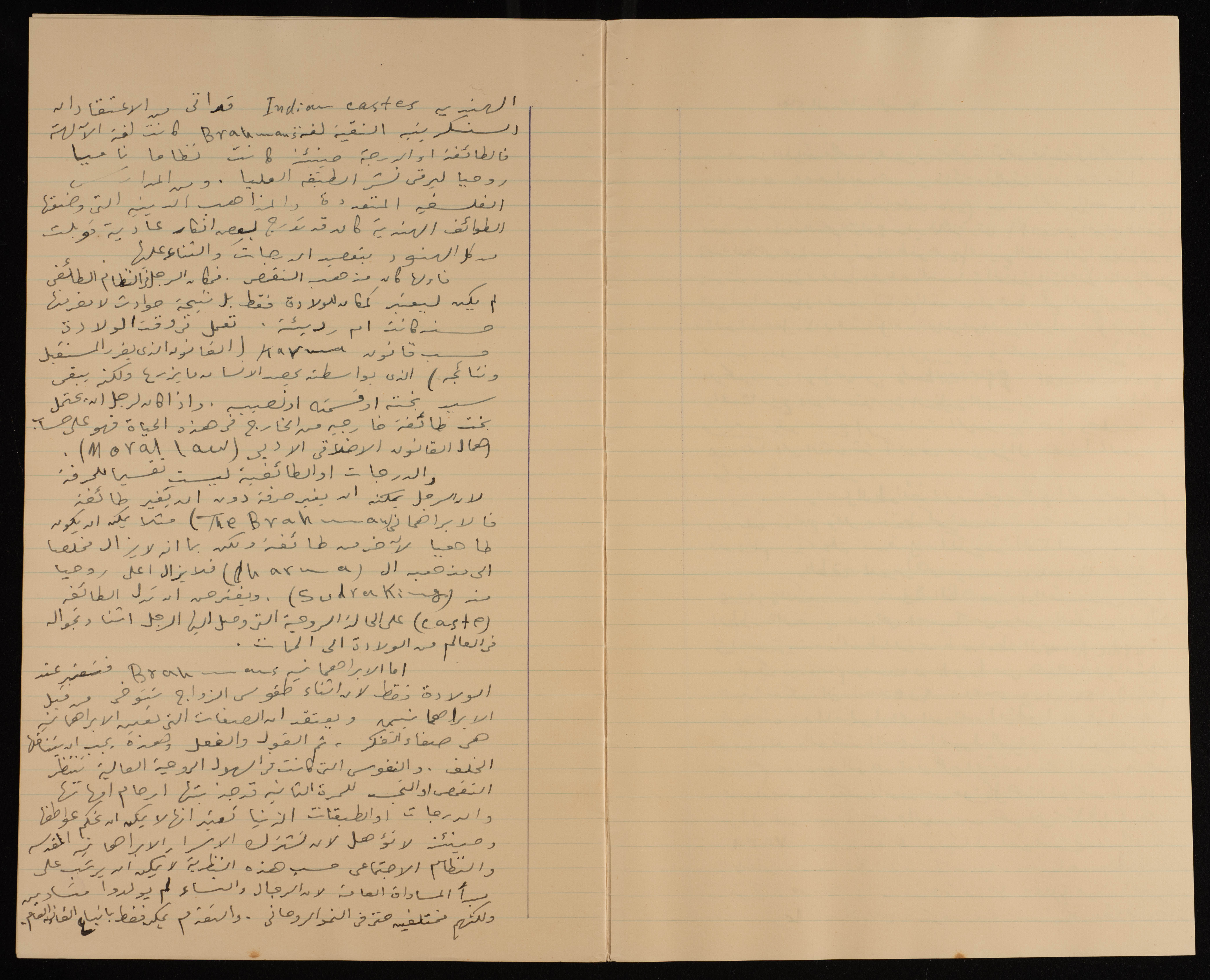 Found in the Sakher Khatib collection, these are summary notes that were hand-penned by a student belong to the Khatib family during his study at the Arab College in al-Quds (Jerusalem) between 1920-30.