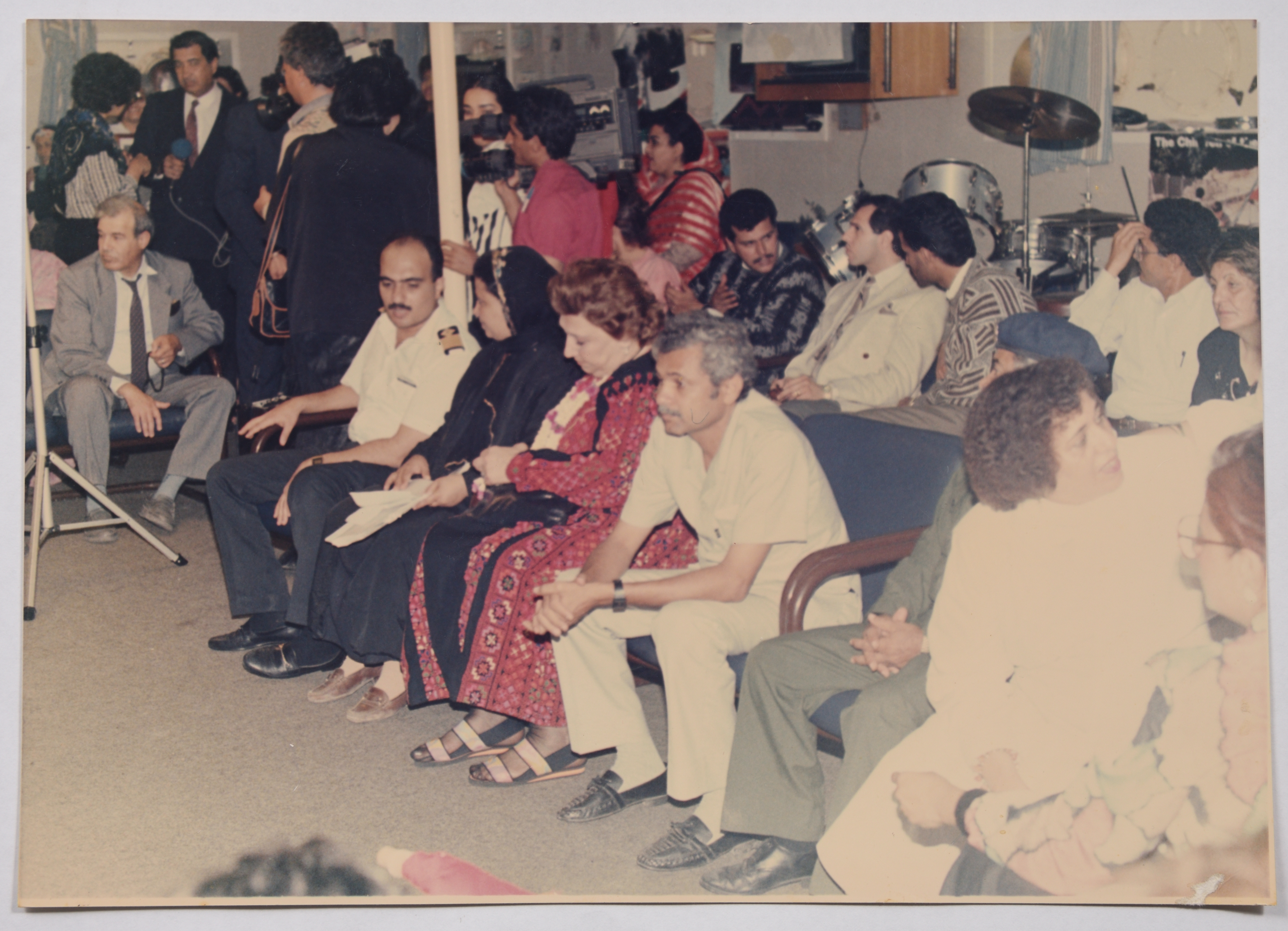 A colour photograph features a mass activity for the Palestine Liberation Organization (PLO) showing Ms. Najla Yassin.