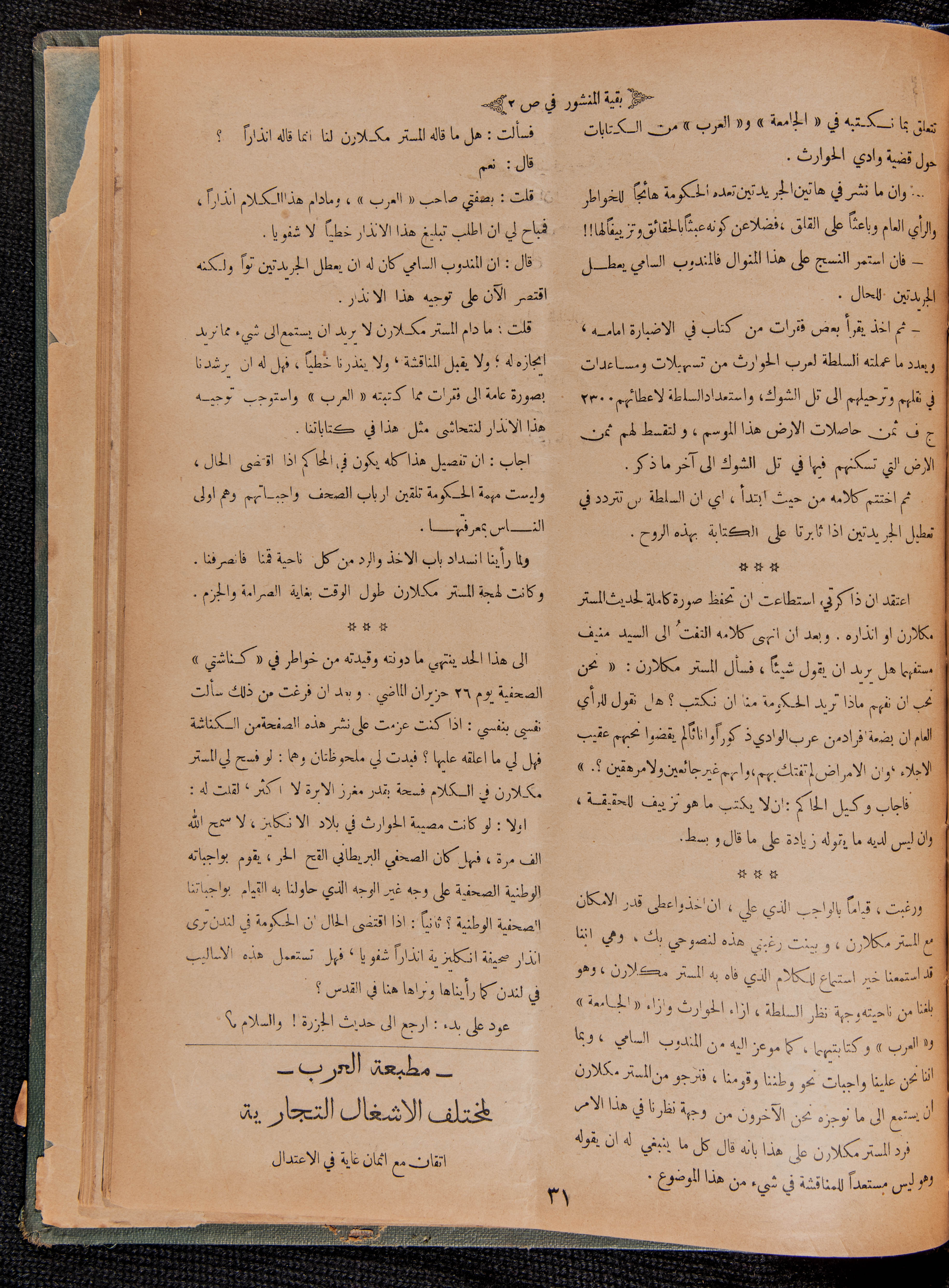 العدد 42 و 43 من مجلة العرب، 15 تموز 1933