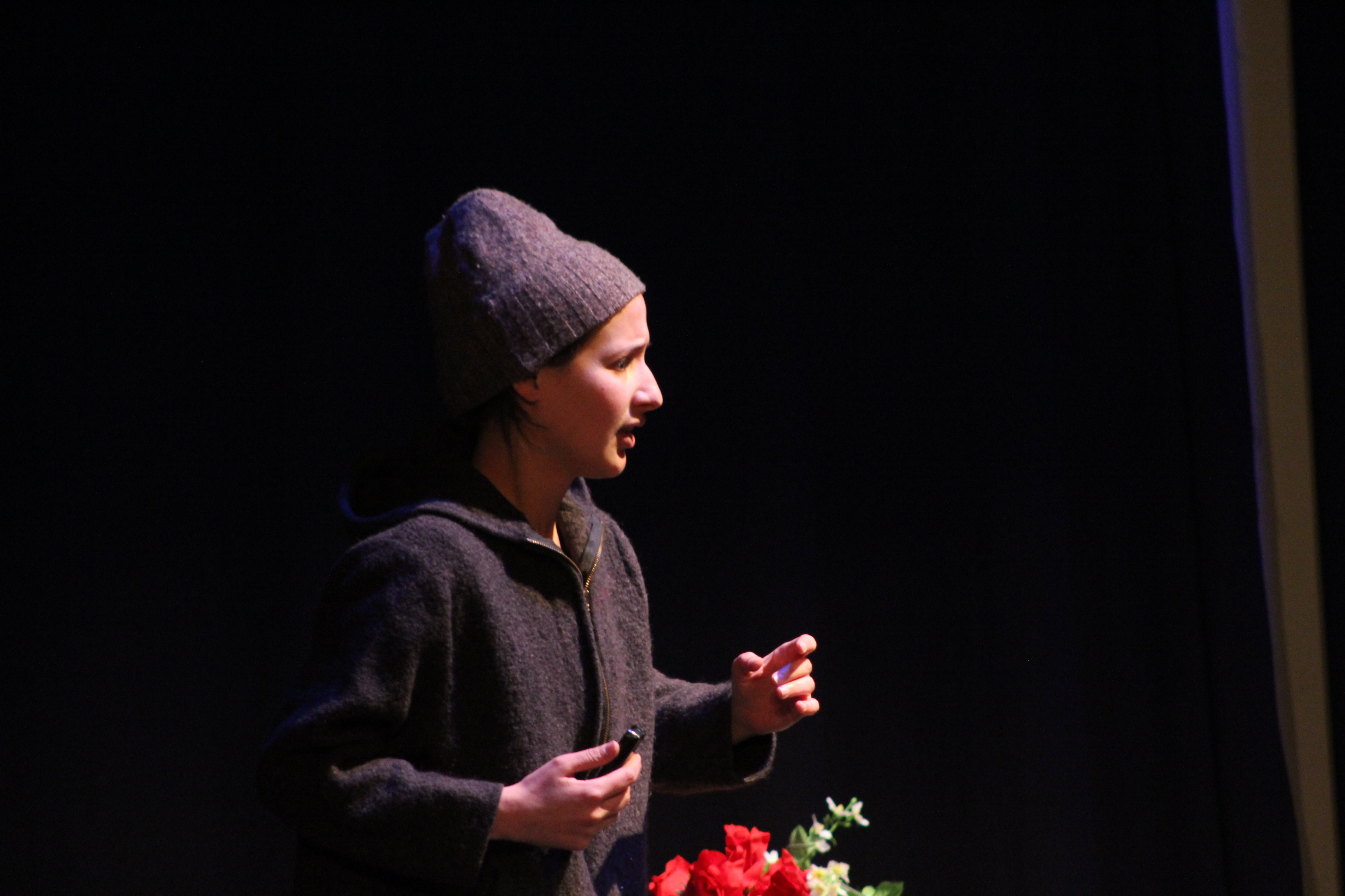 صورة ملونة من عرض مسرحية لفرقة المسرح الشعبي في يوم المسرح العالمي سنة 2015.