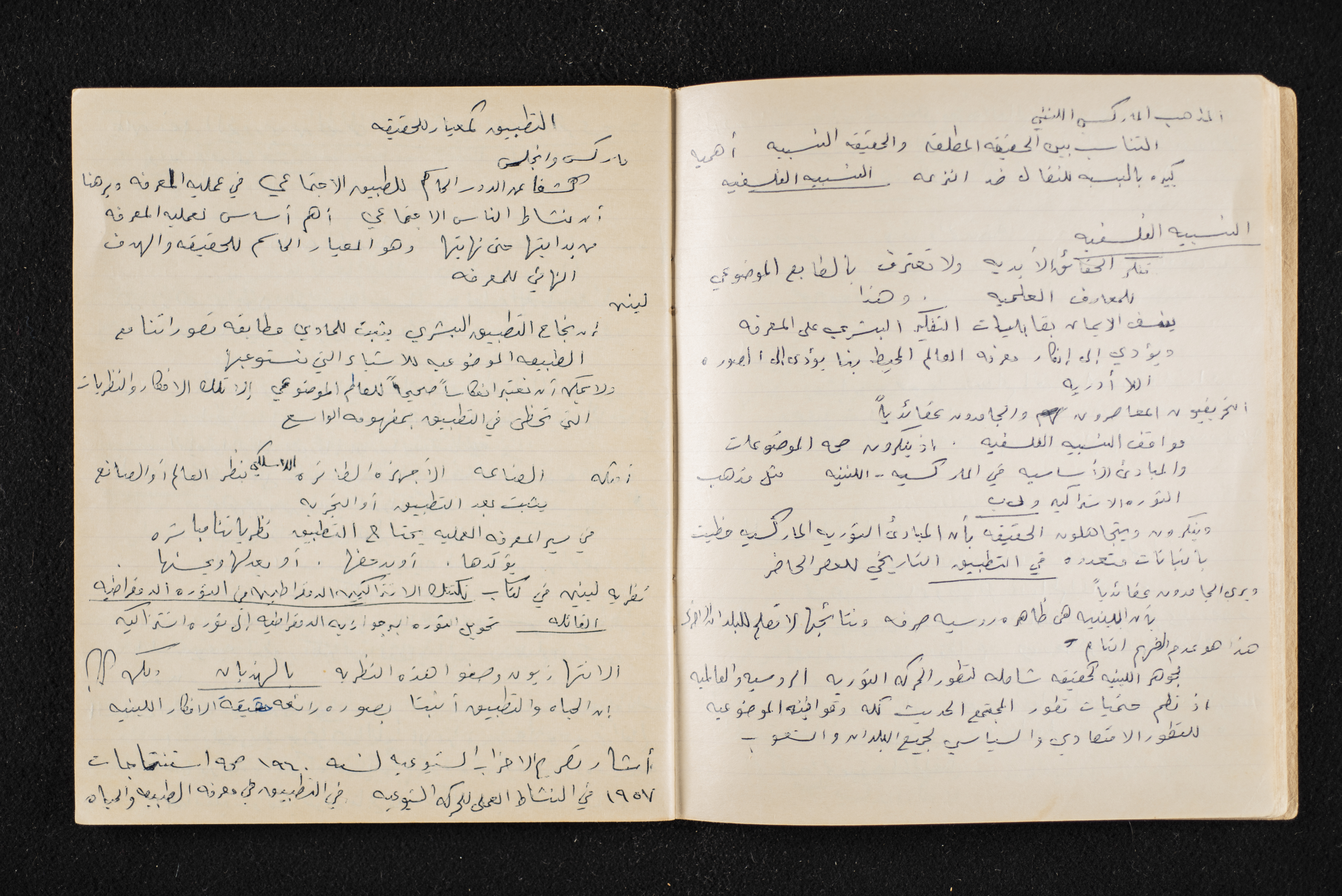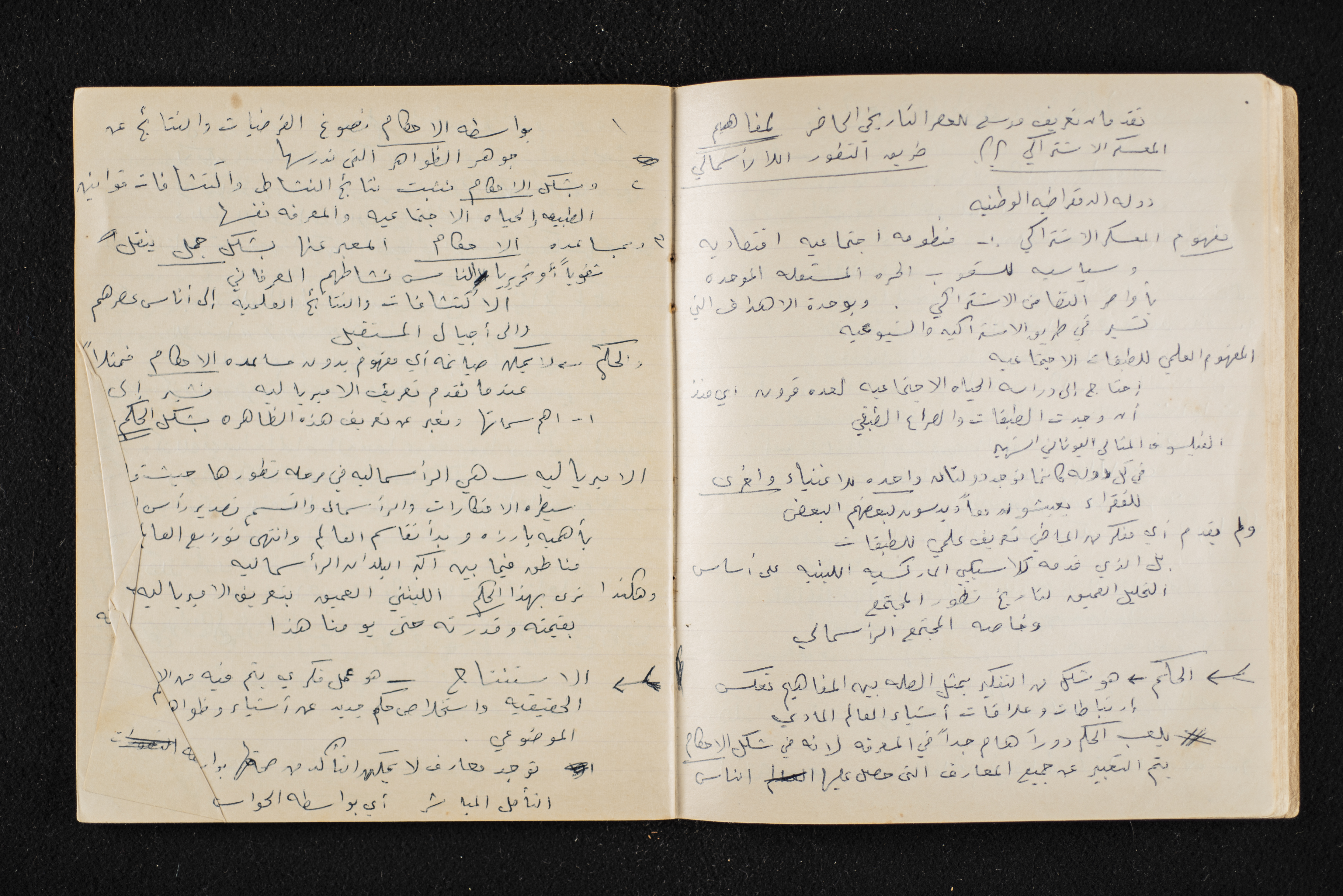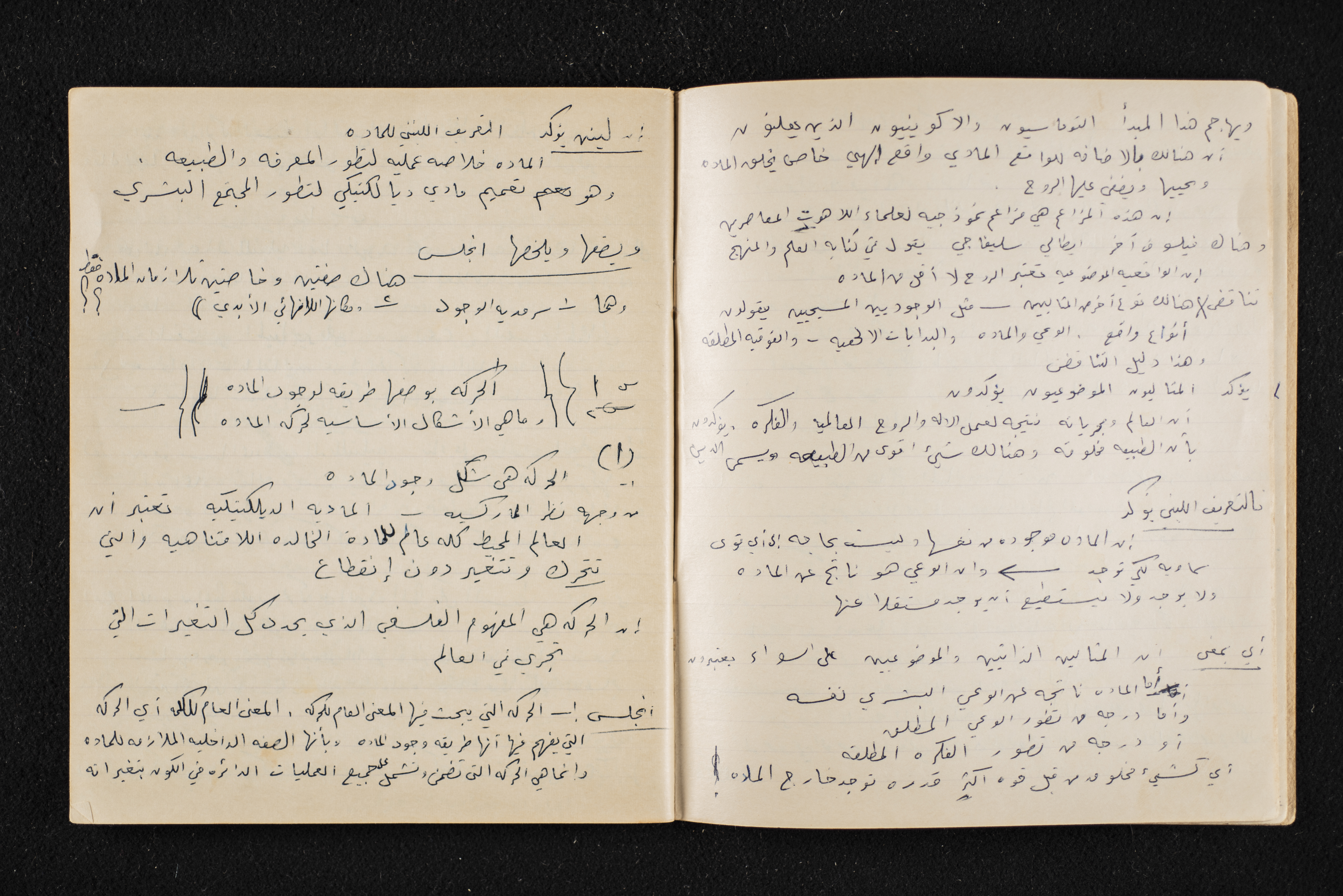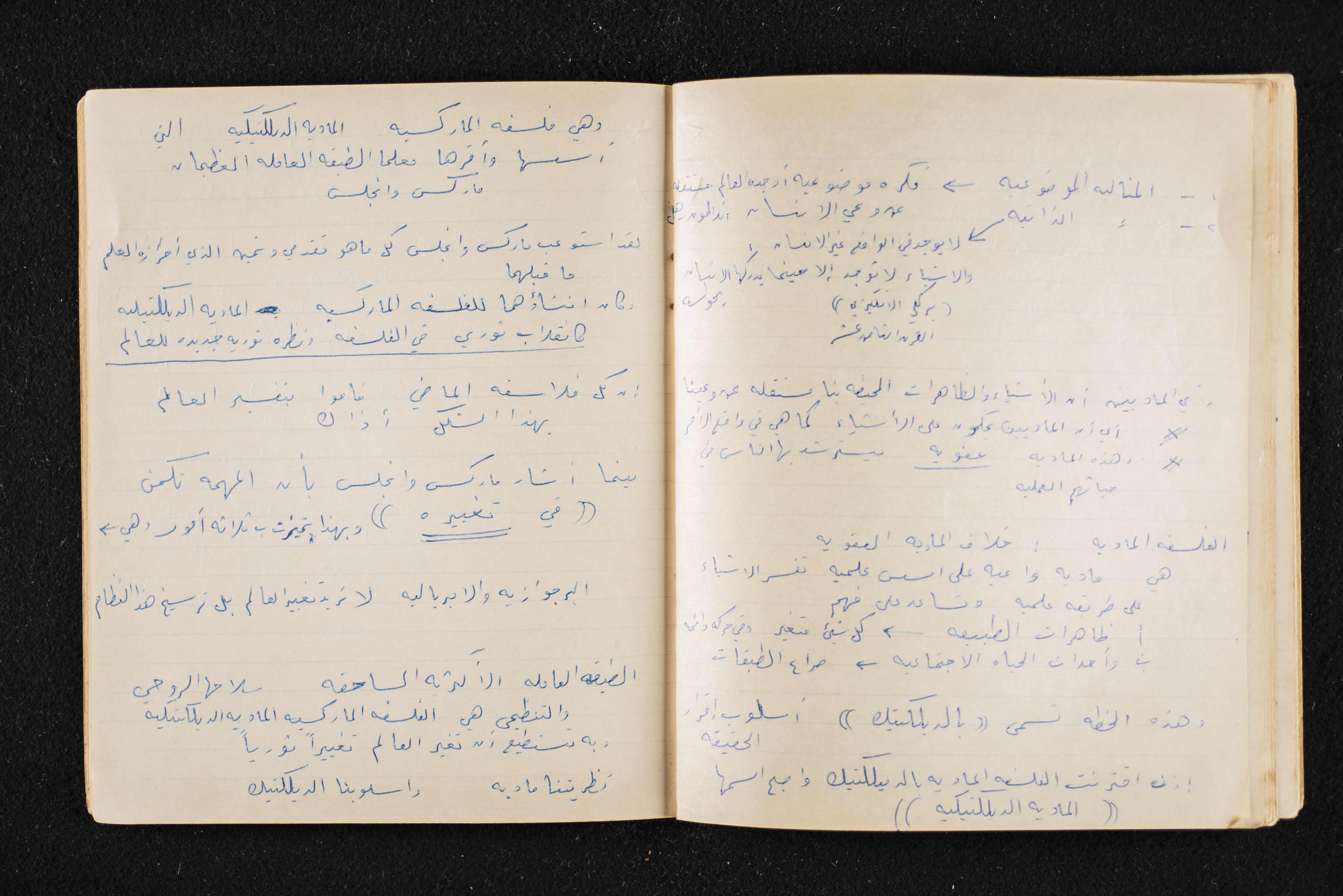 Written in Arabic, this document features a booklet on the First Great Philosophy among the history and its the Marxism–Leninism Philosophy, also known as a Political ideology.