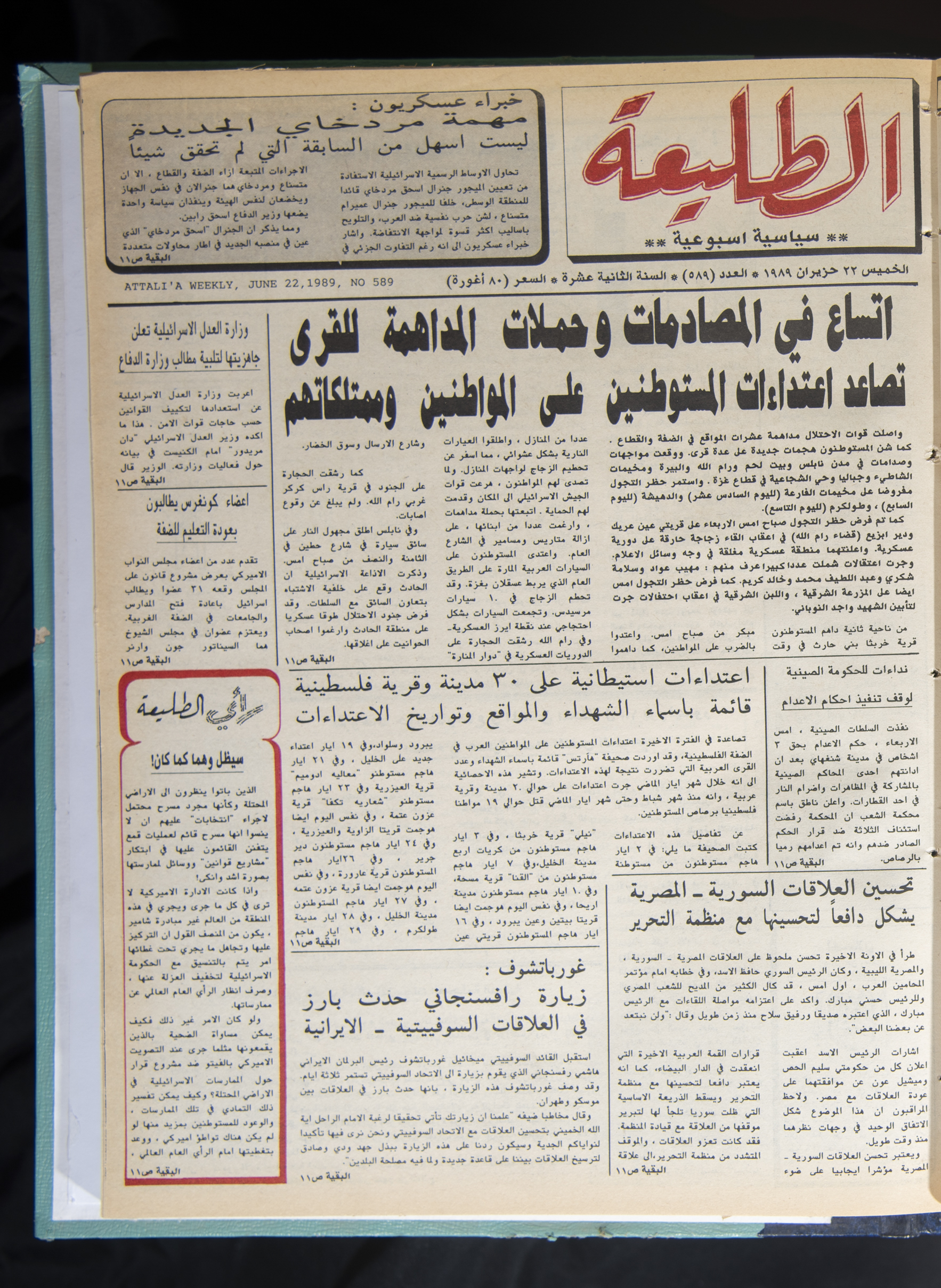 العدد 589 من جريدة الطليعة، 22 حزيران 1989