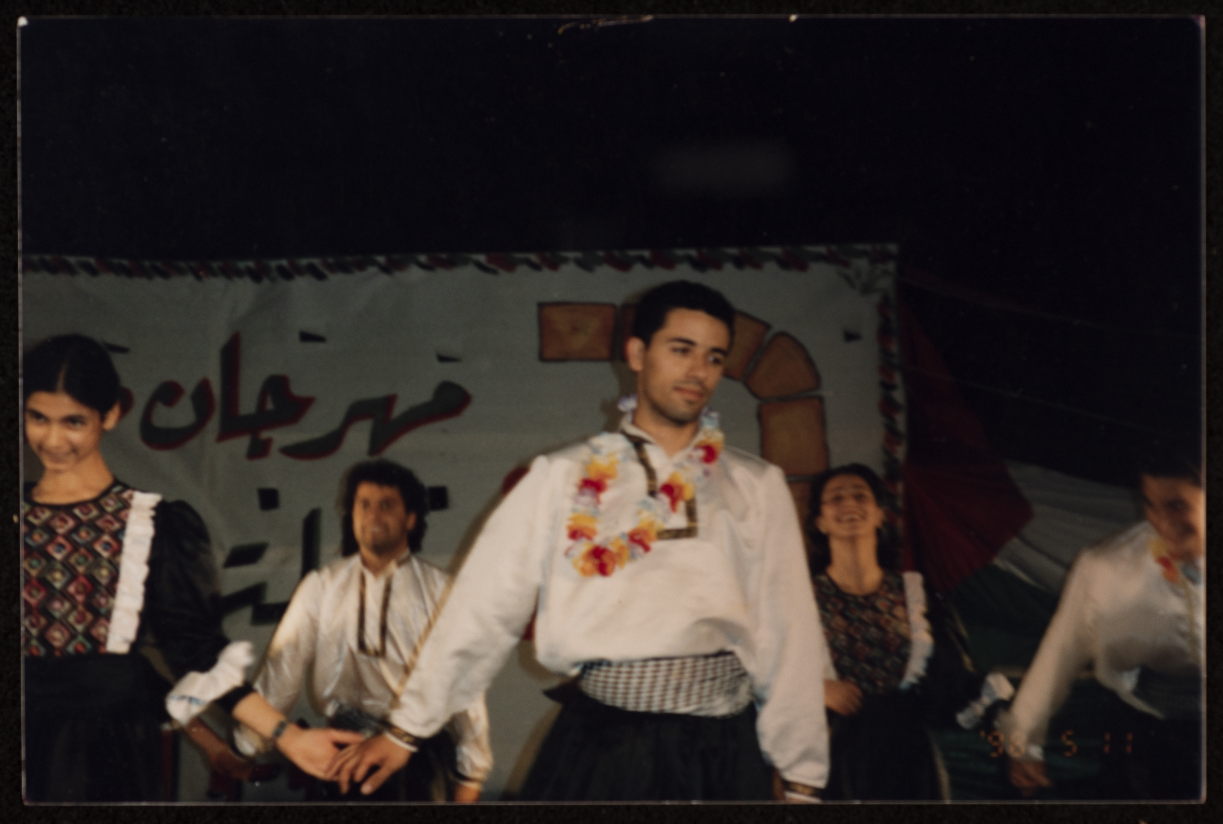 Taken in 1998, this photograph captures a Dabkeh group at the five-day Saffa Heritage, Culture, and Art Festival held by Handalah Cultural Center at the Saffa School for Girls.