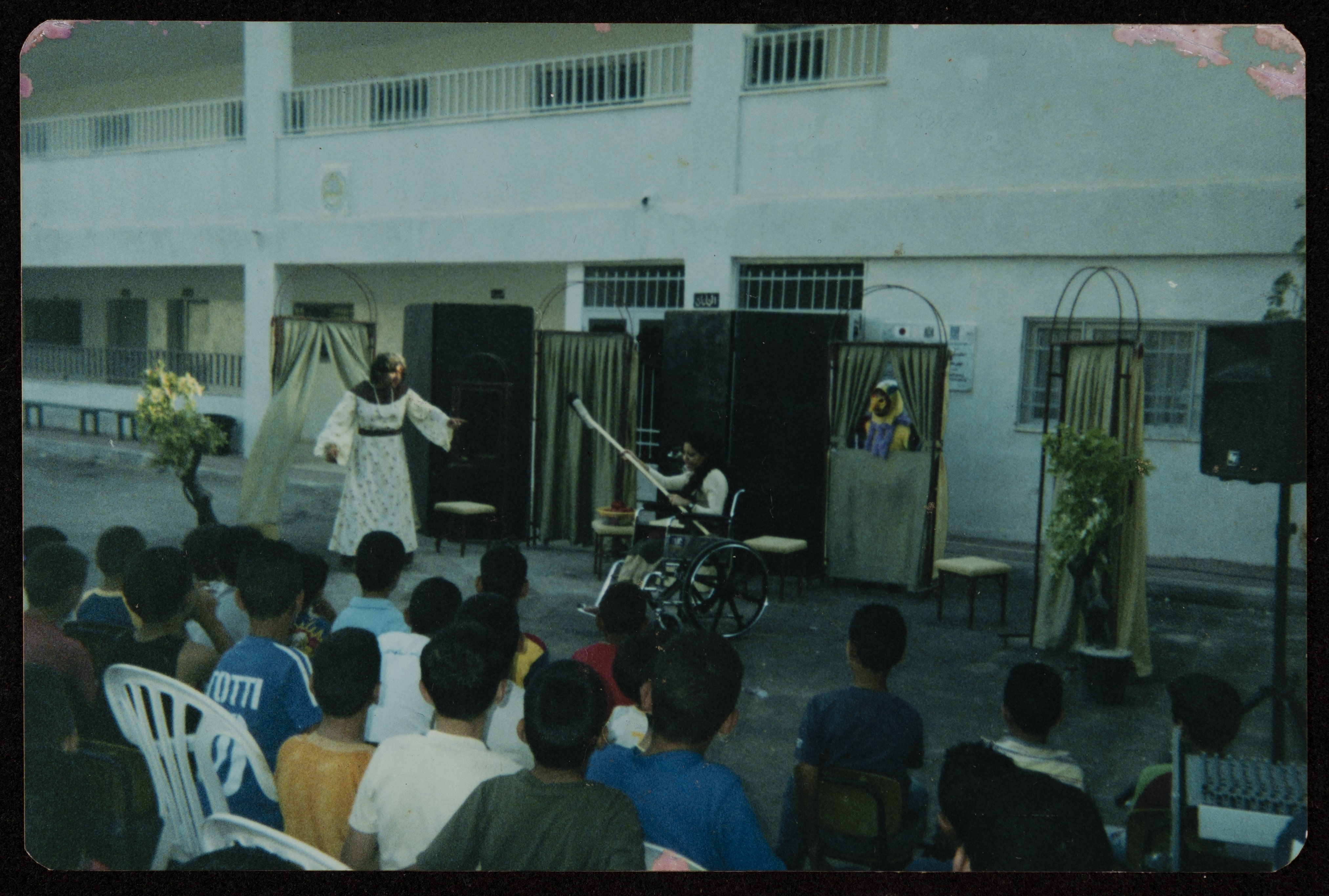 Taken in 2015, this photograph shows a performance by the Palestinian Circus School (PCS) at Saffa Boys School held by Handalah Cultural Center.