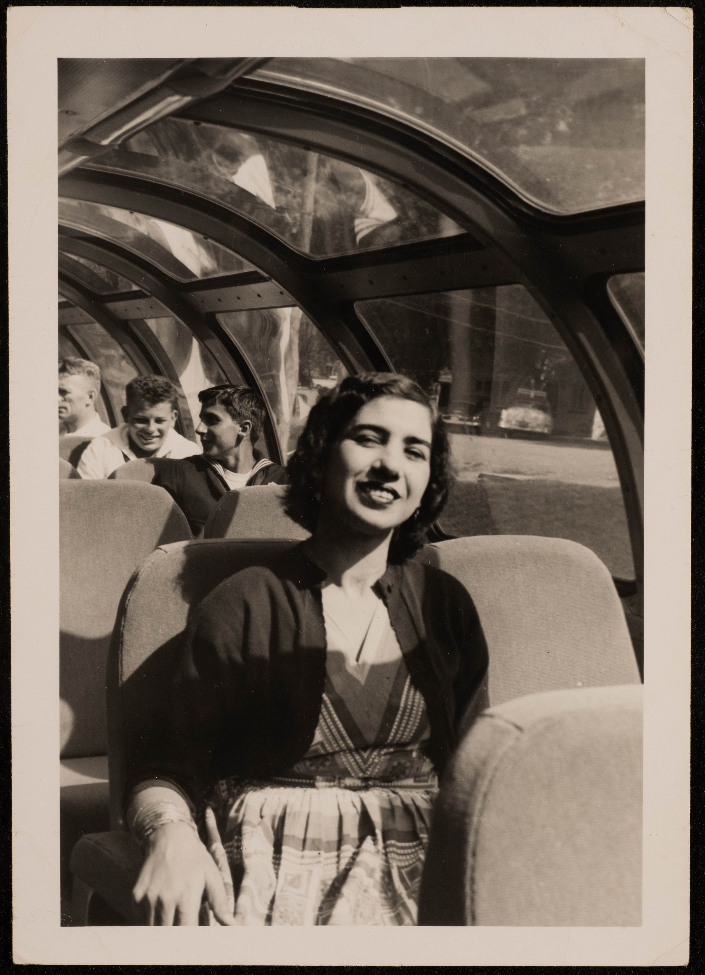 صورة شخصية لفاطمة المحب، التُقطت في باخرة في إحدى دول أوروبا، وذلك في فترة مشاركتها في المسابقة الدولية للفنون الجميلة.