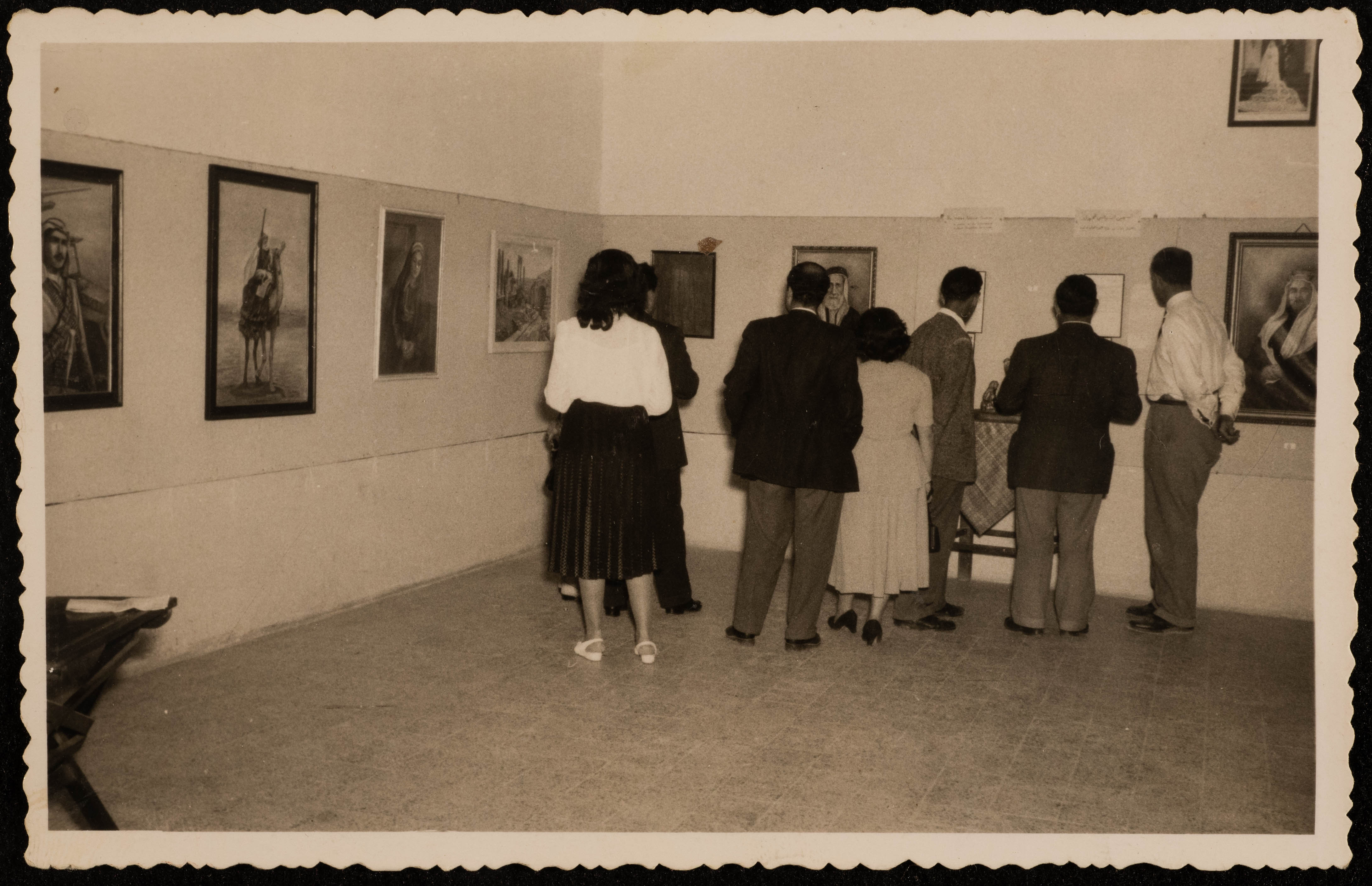 صورة غير مؤرخة، تظهر جانبًا من زوار معرض أقامته فاطمة المحب.