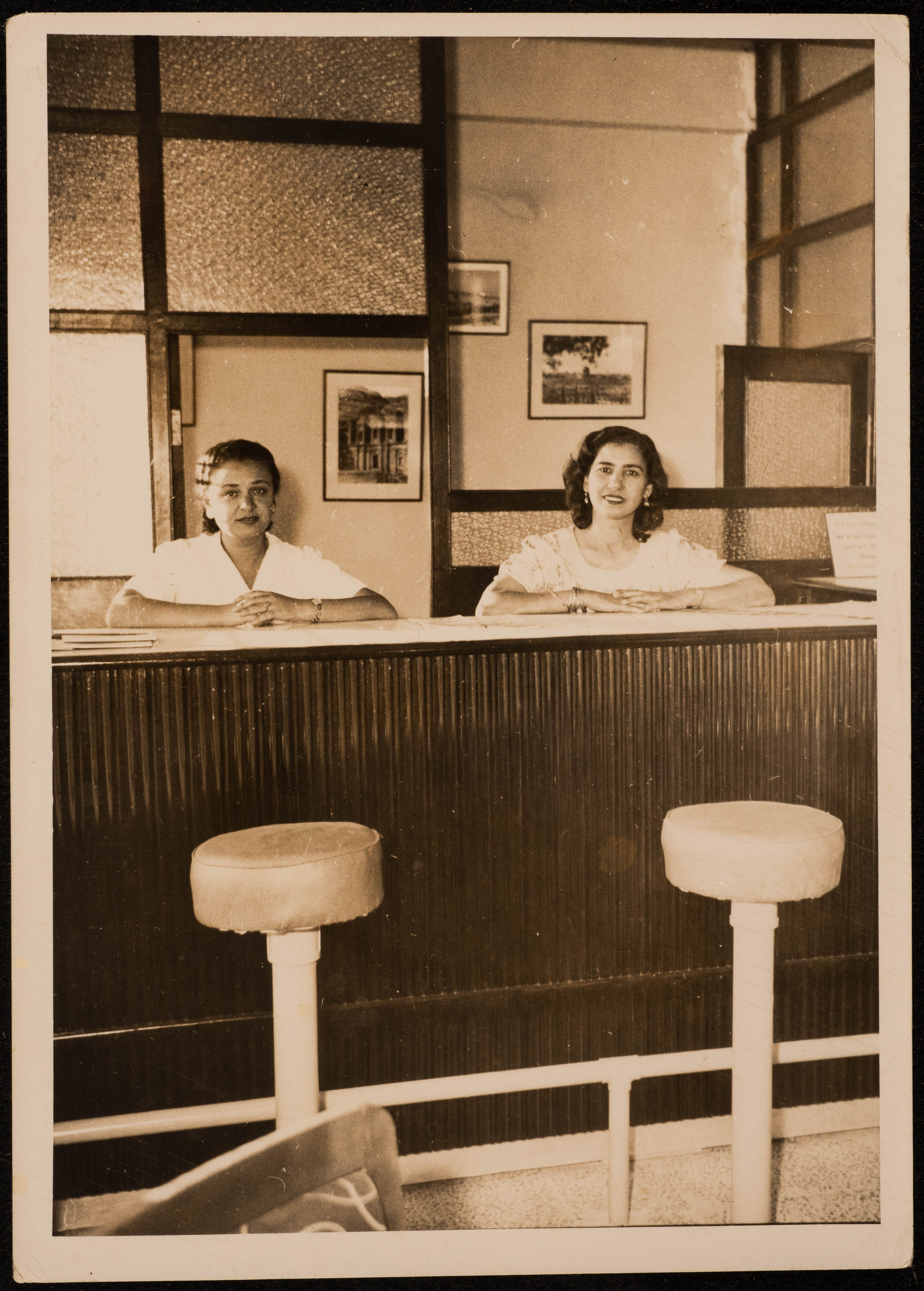 صورة جماعية غير مؤرخة، تظهر فاطمة المحب برفقة فتاة أخرى في مكان غير معروف.