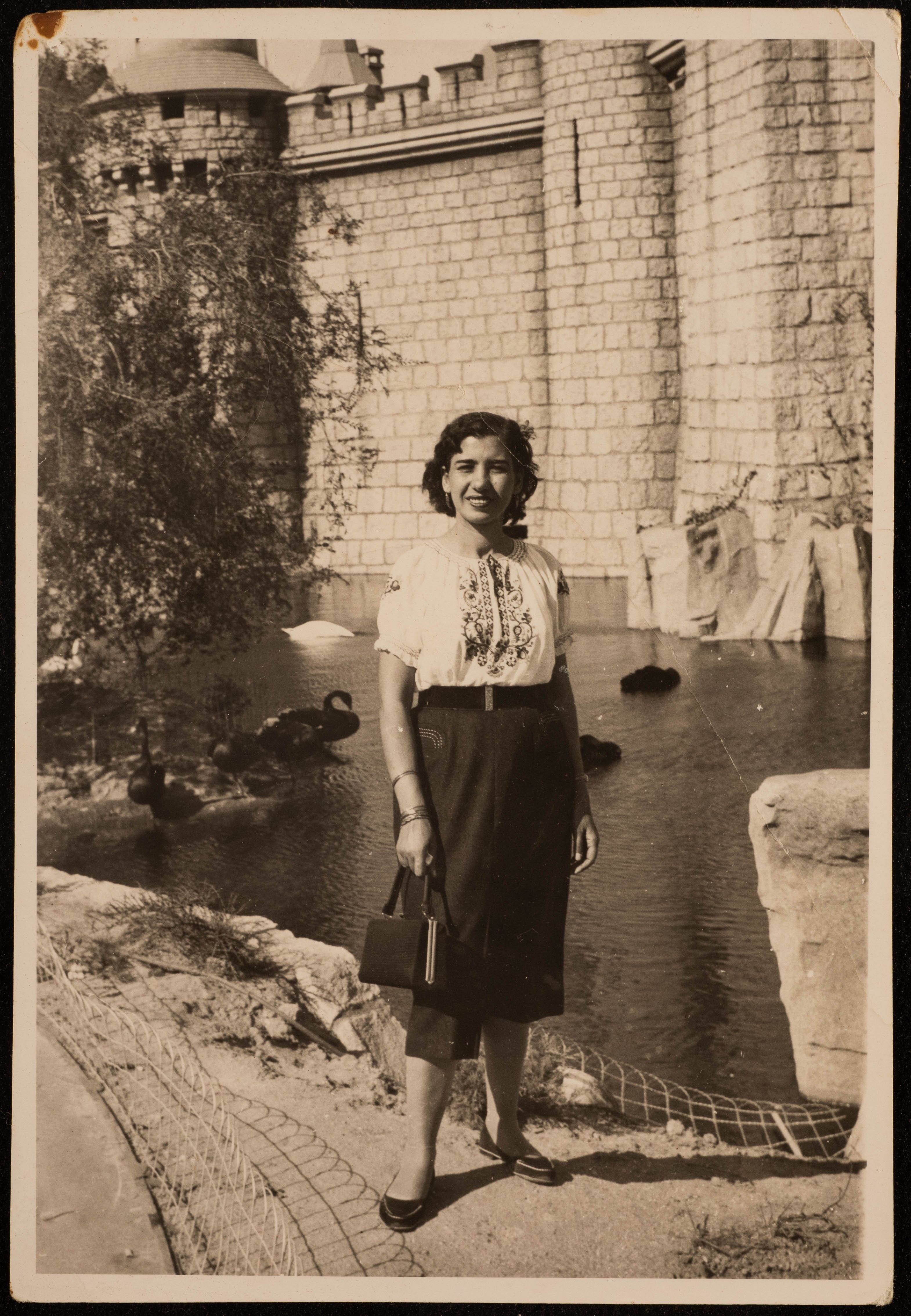 صورة شخصية غير مؤرخة، تظهر فاطمة المحب واقفة بجانب نهر في بلد أوروبي.