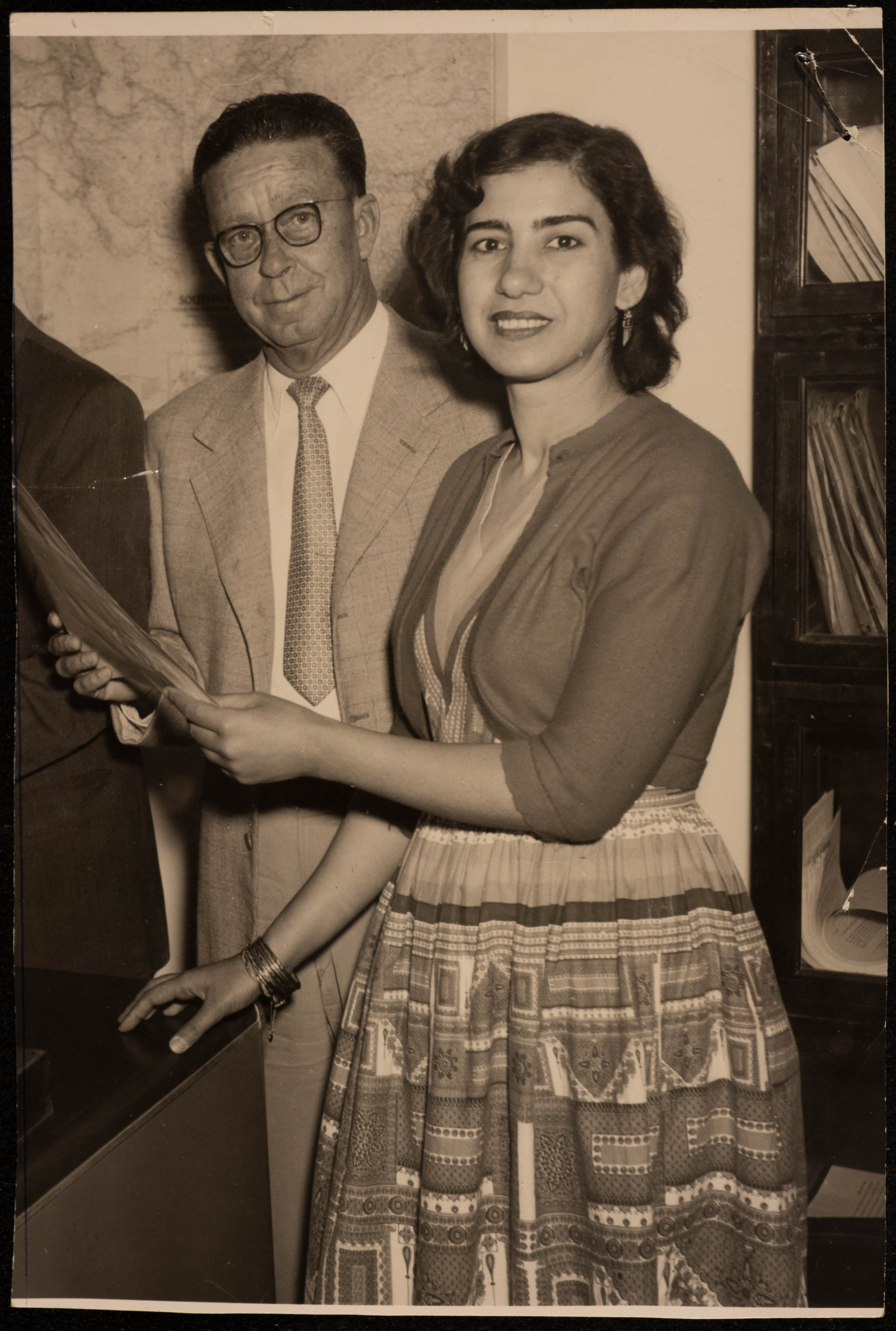 صورة جماعية غير مؤرخة، تظهر فاطمة المحب برفقة شخص غير معروف الهوية.