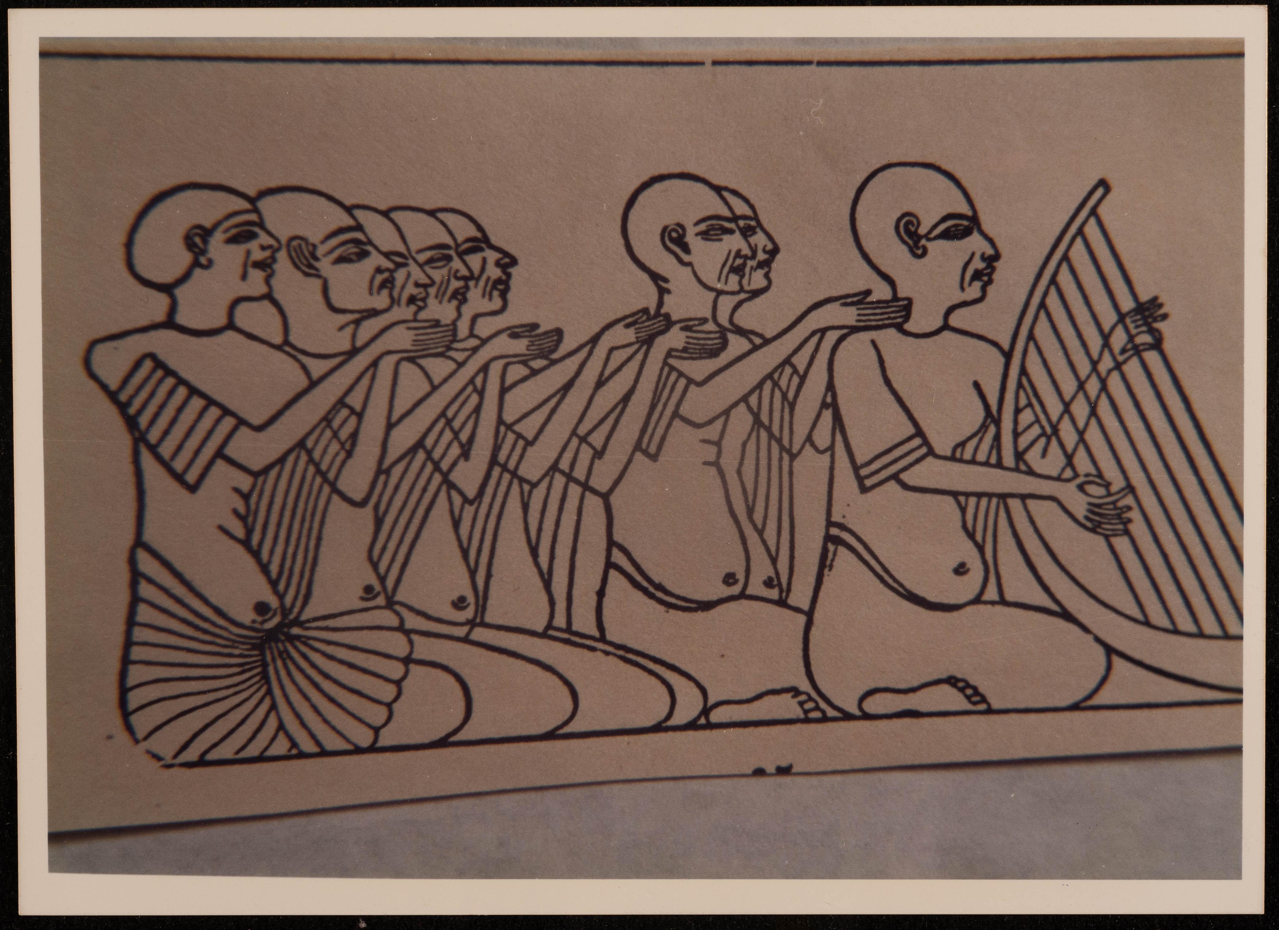 صورة غير مؤرخة، تظهر رسومات فرعونية كانت فاطمة المحب تصورها لضرورات الدراسة، وذلك أثناء دراستها في المعهد العالي للفنون الجميلة في القاهرة.