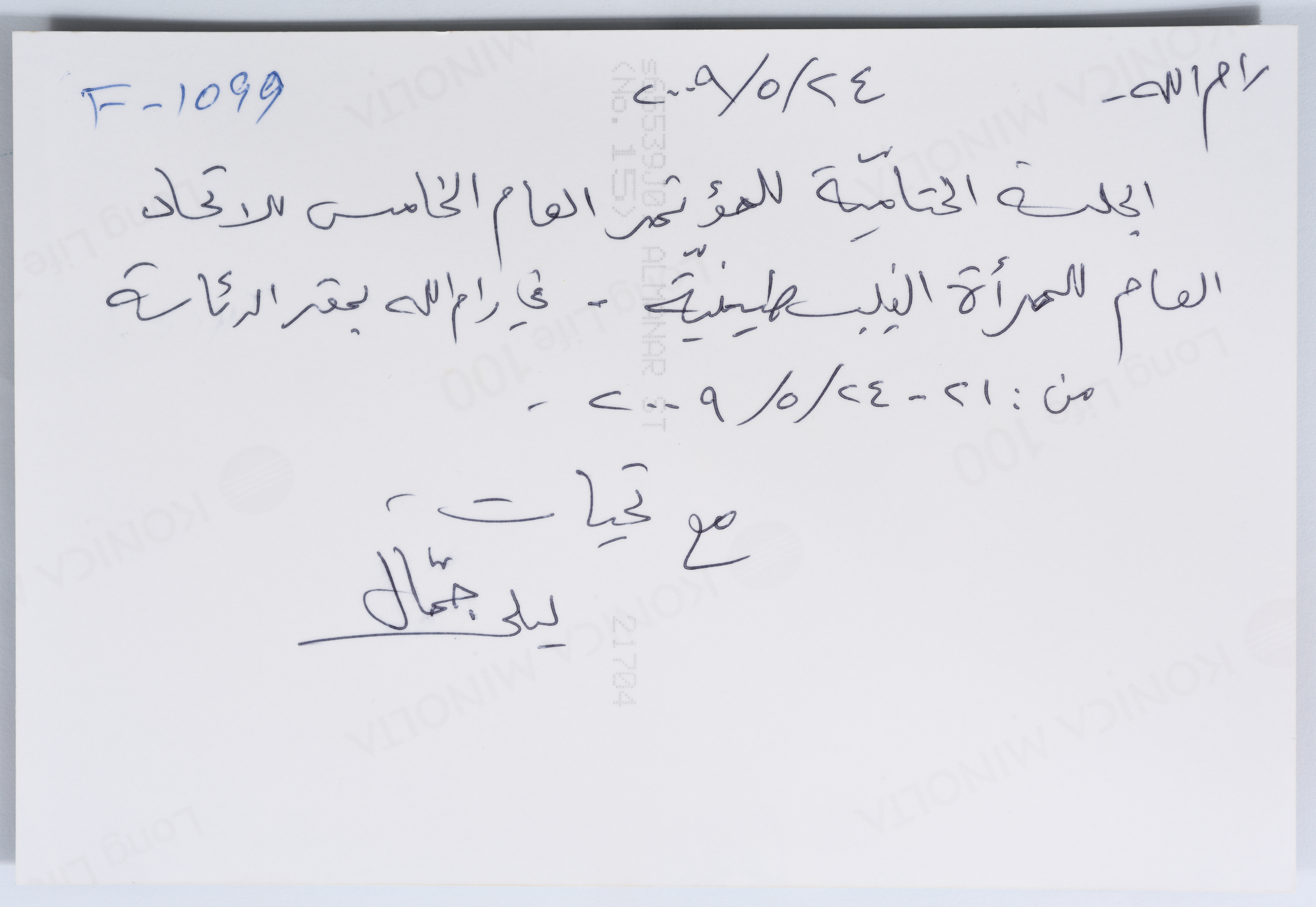 Muna al-Khalili (GPUW Sec. General), interview with PMDA researcher Lama Ghosheh, June - August 2018, non-transcript, the Palestinian Museum Digital Archive.