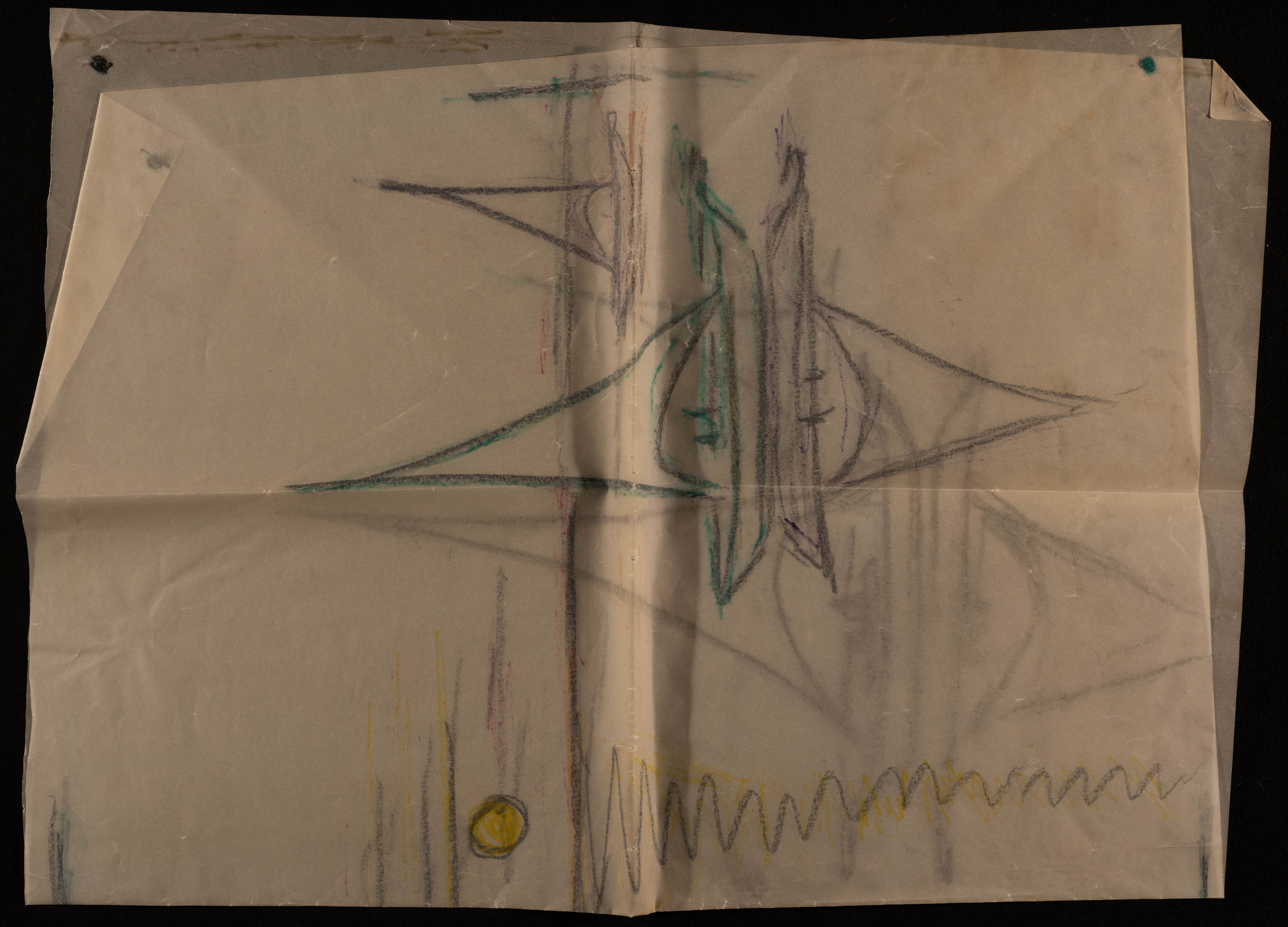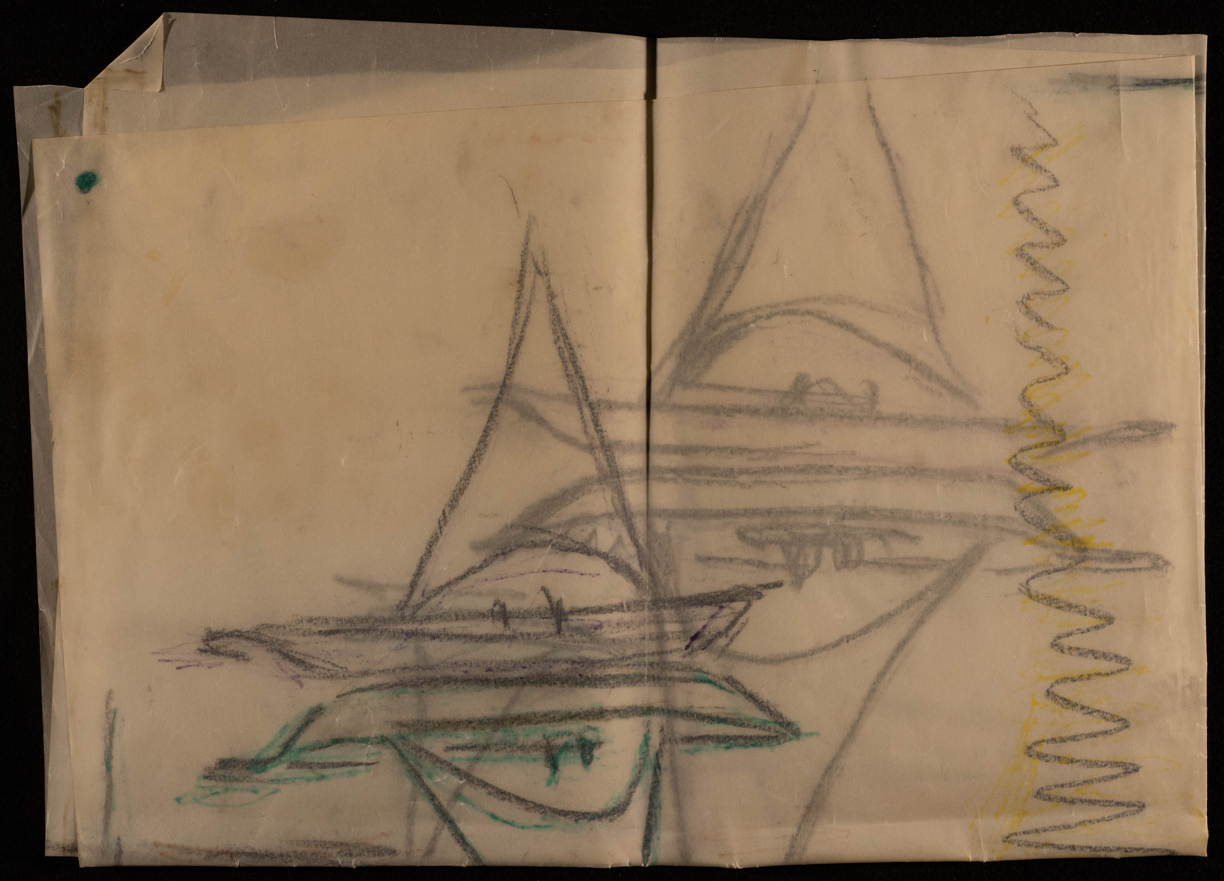 Undated, this photograph shows a painting by Fatima al-Muhib.