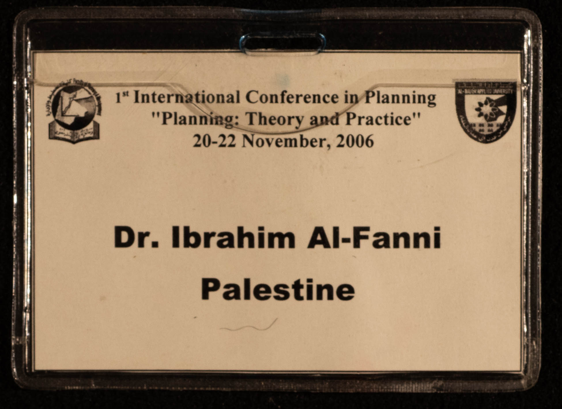 بطاقة مشاركة إبراهيم الفنّي، في المؤتمر الدولي الأول للتخطيط؛ التخطيط: النظرية والتطبيق، 20-22 تشرين الثاني 2006.