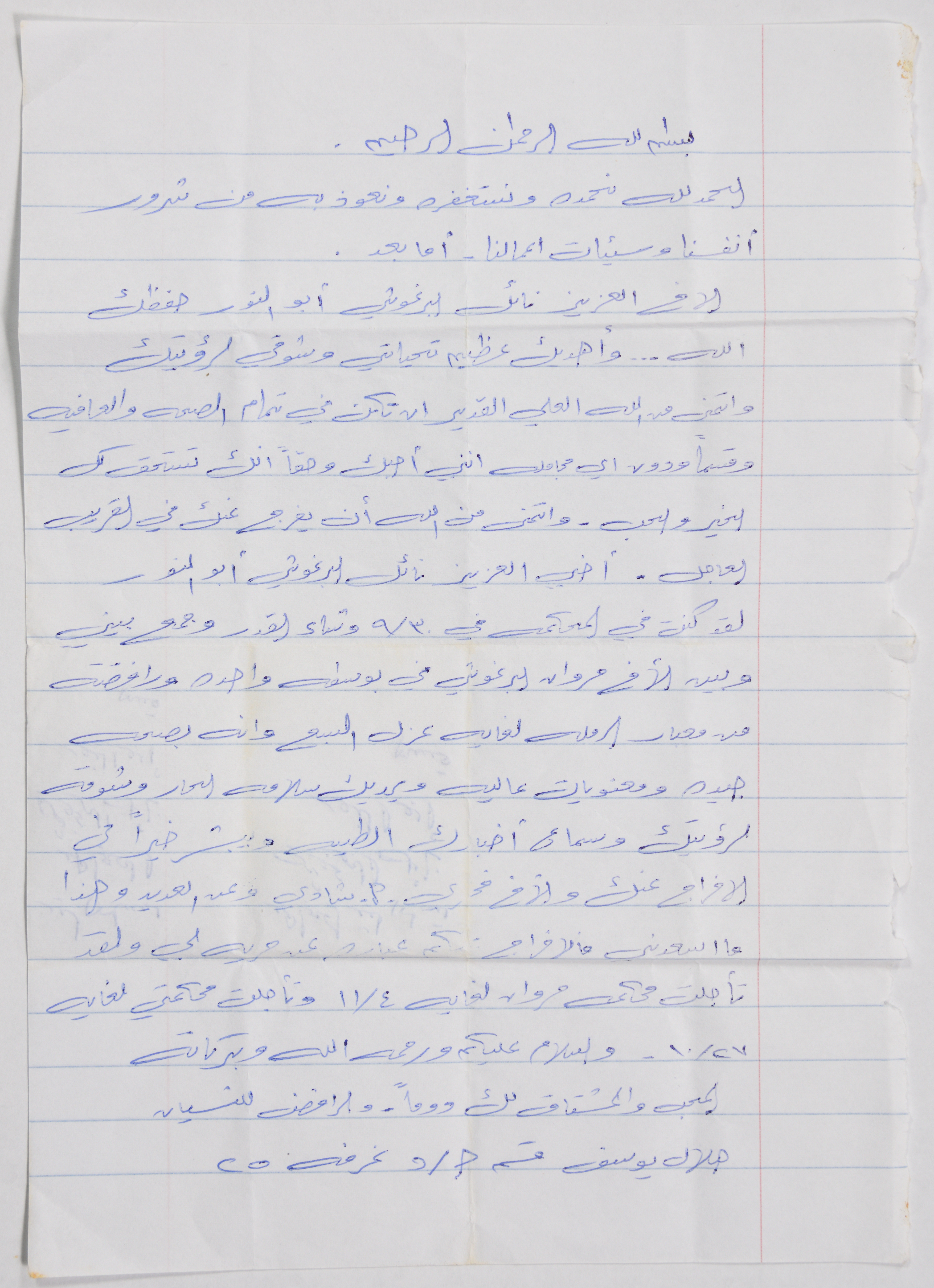 A letter from Hilal Yousef to Nael Al Barghouthi in prison
