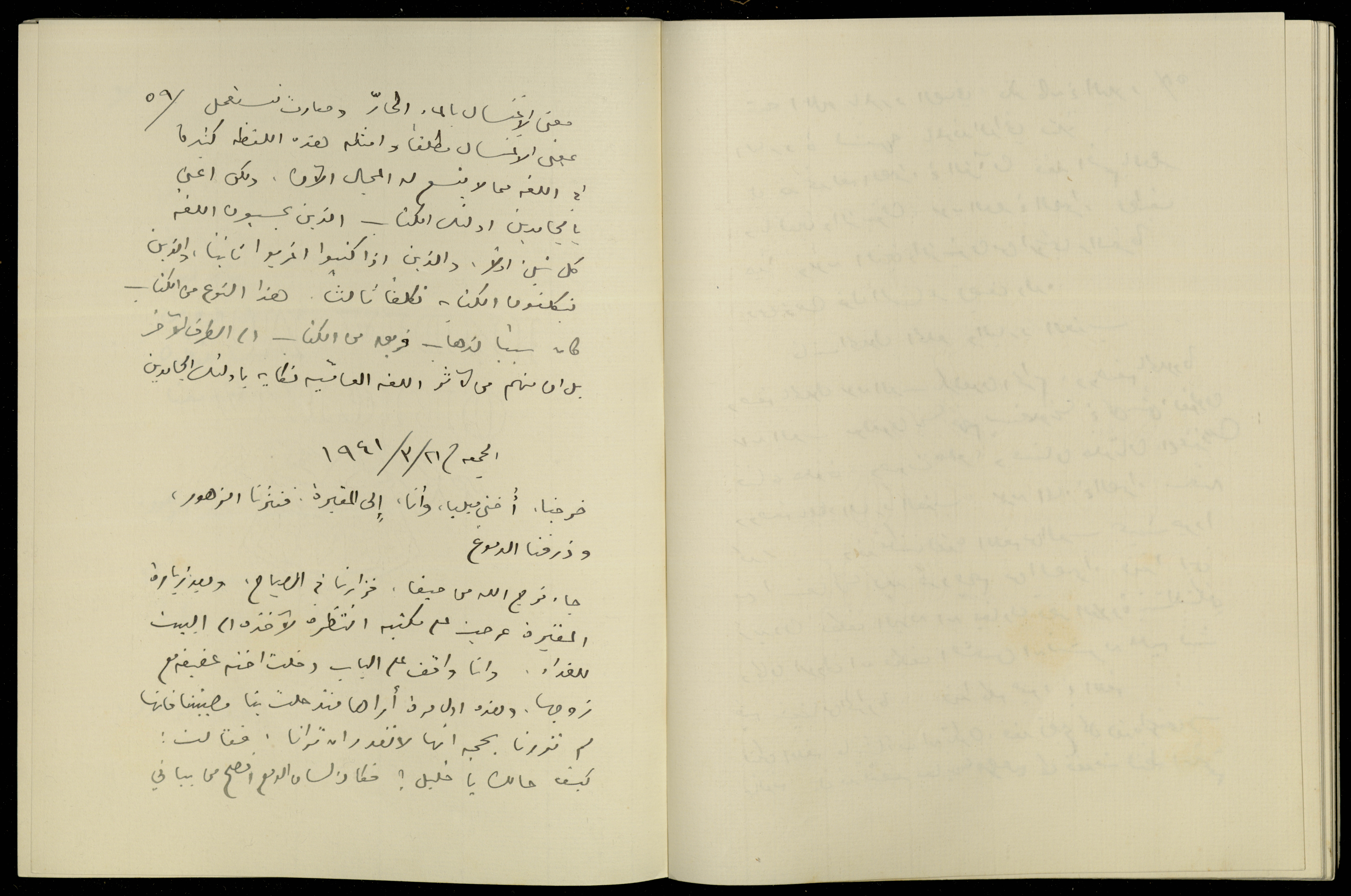 توثق هذه المادة الأرشيفية، المكتوبة بخط يد خليل السكاكيني، تكملة يوميته المؤرخة في يوم الخميس الموافق 20 آذار 1941؛ آخذا على الكُتّاب الجامدين جمودهم في التعامل مع اللغة، الأمر الذي دفع فريقاً مقابلاً ليكون في أقصى الطرف الآخر مفضلين العامية من باب النكاية. وفي نفس الصفحة سجل السكاكيني يوميته المؤرخة في يوم الجمعة الموافق 21 آذار 1941، وقد افتتحها بذكر خروجه وأخته ميليا إلى المقبرة ونثرهم الزهور عليها، ومما جاء فيها أيضاً زيارة فرج الله له في الصباح ثم عروجه فيما بعد على مكتبه لأخذه للغداء.